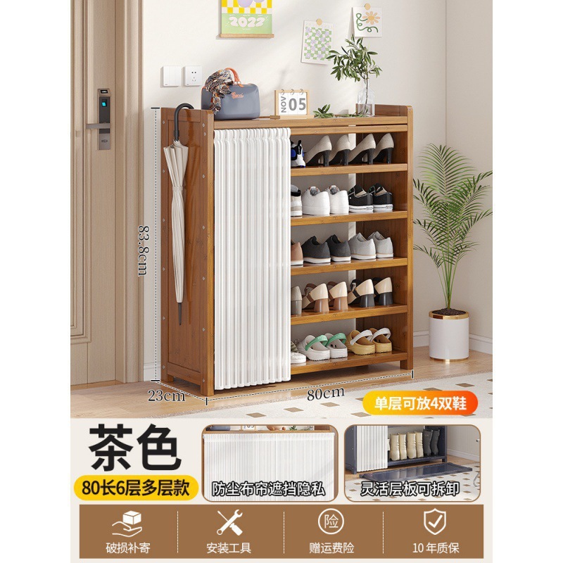 • 브라운 80장 6단 다층 신발장 [문화이트 거즈커튼]
