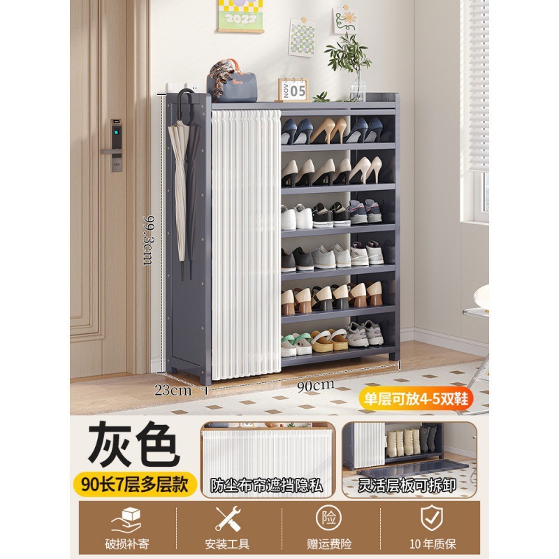 • 그레이 90 롱 7단 다층 신발장 [문화이트 거즈커튼]