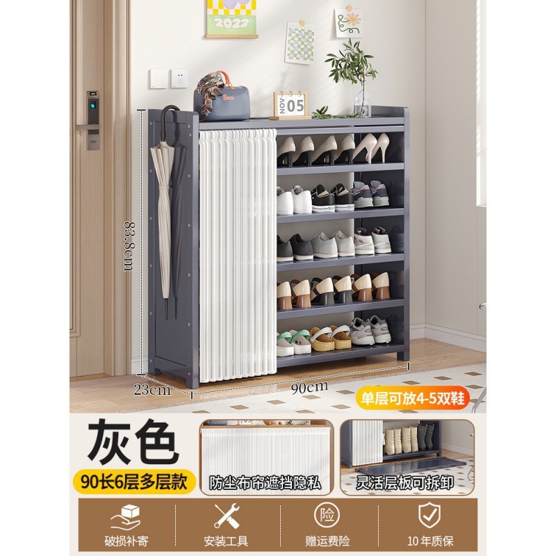 • 그레이 80장 6단 다층 신발장 [문화이트 거즈커튼]