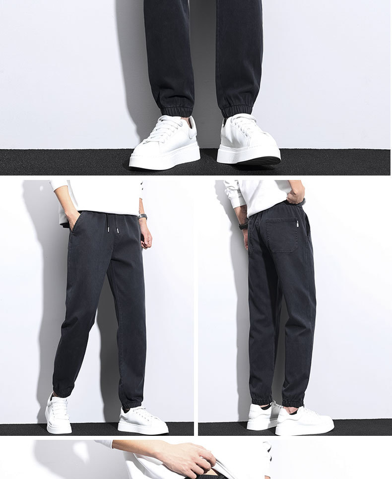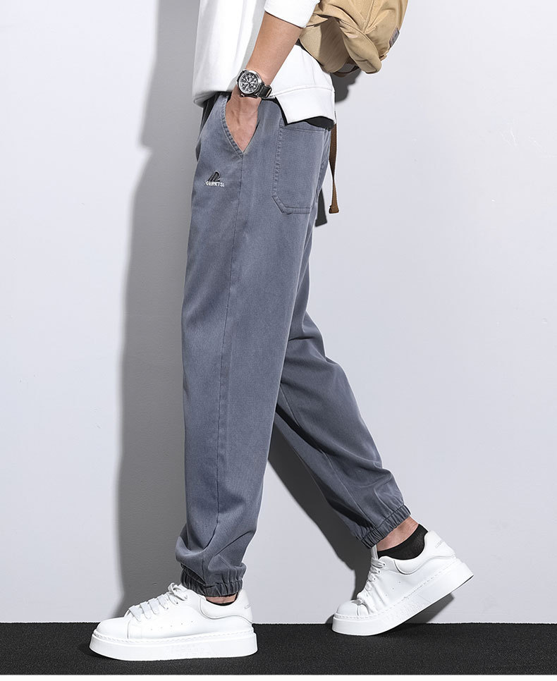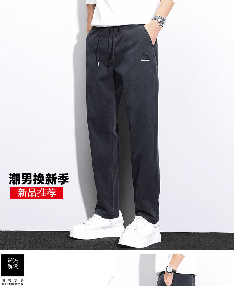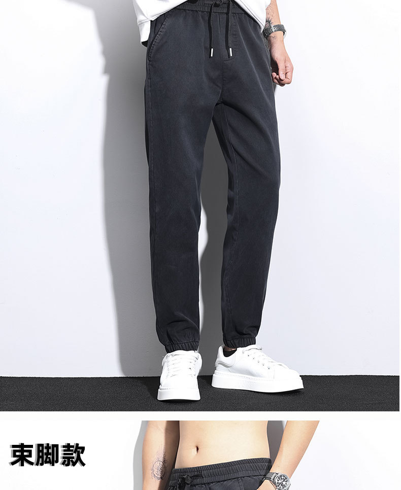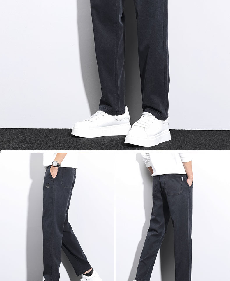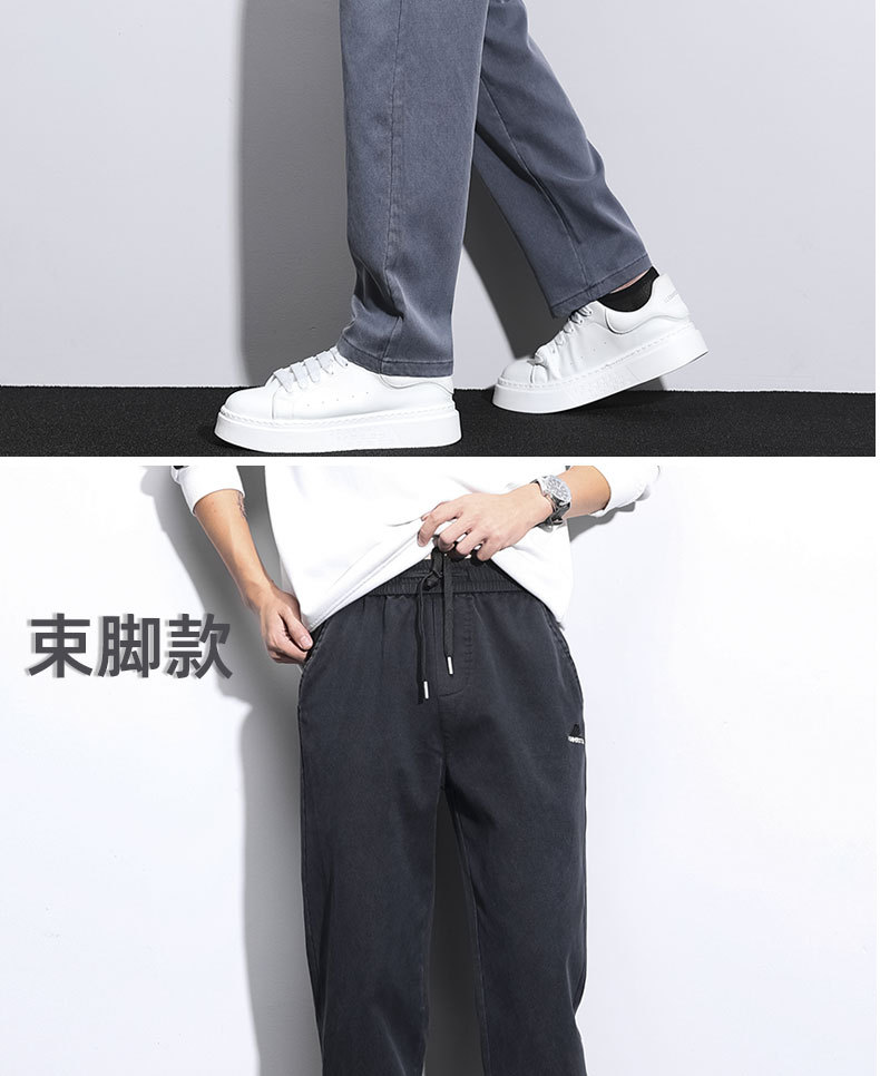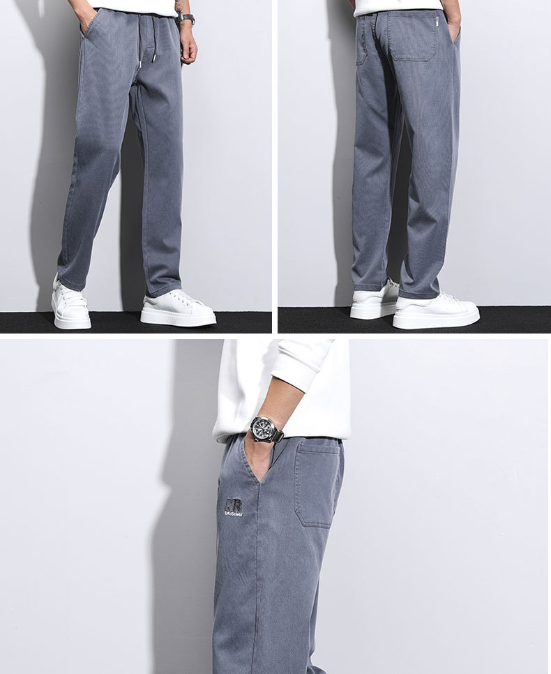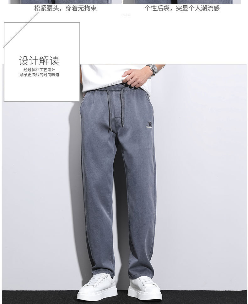 남성용 가을 신상 캐주얼 팬츠, 텐셀 드레이프, 두툼한 루즈 스트레이트 레귤러 남성용 모조 데님 롱 팬츠스토어 가기