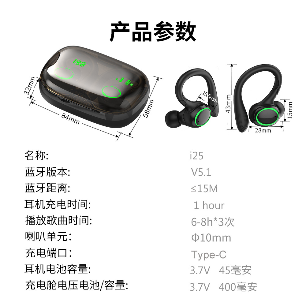 국경을 넘는 인기 i25 스포츠 블루투스 헤드셋 tws 오버이어 진정한 무선 헤드셋 디지털 디스플레이 소음 감소 스마트 터치 컨트롤