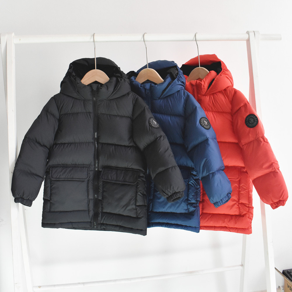 어린이 다운 재킷 중간 길이 두꺼운 소년과 소녀 Extreme Cold 90 White Duck Down 소형, 중형 및 대형 어린이 겨울 코트로 따뜻하게 유지스토어 가기