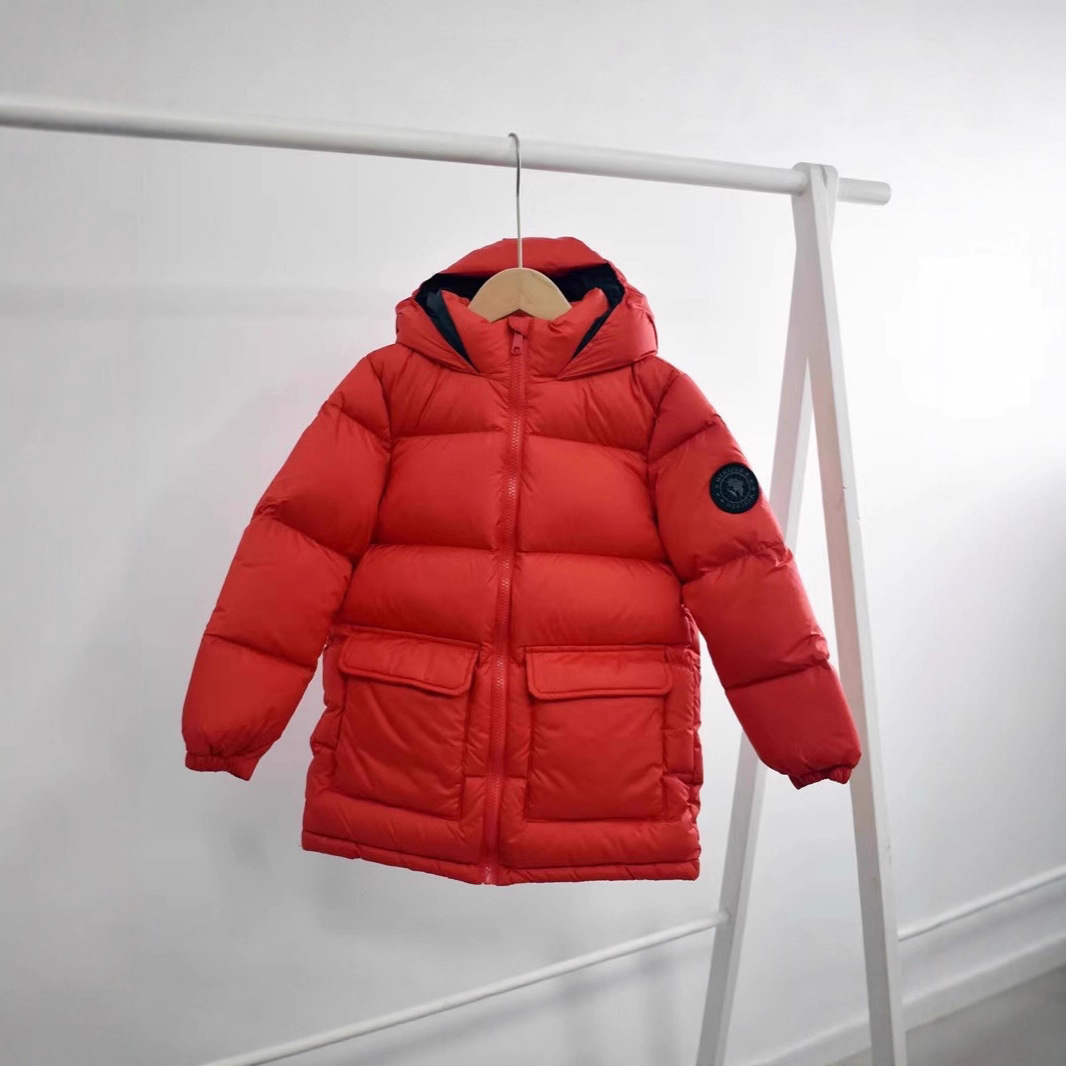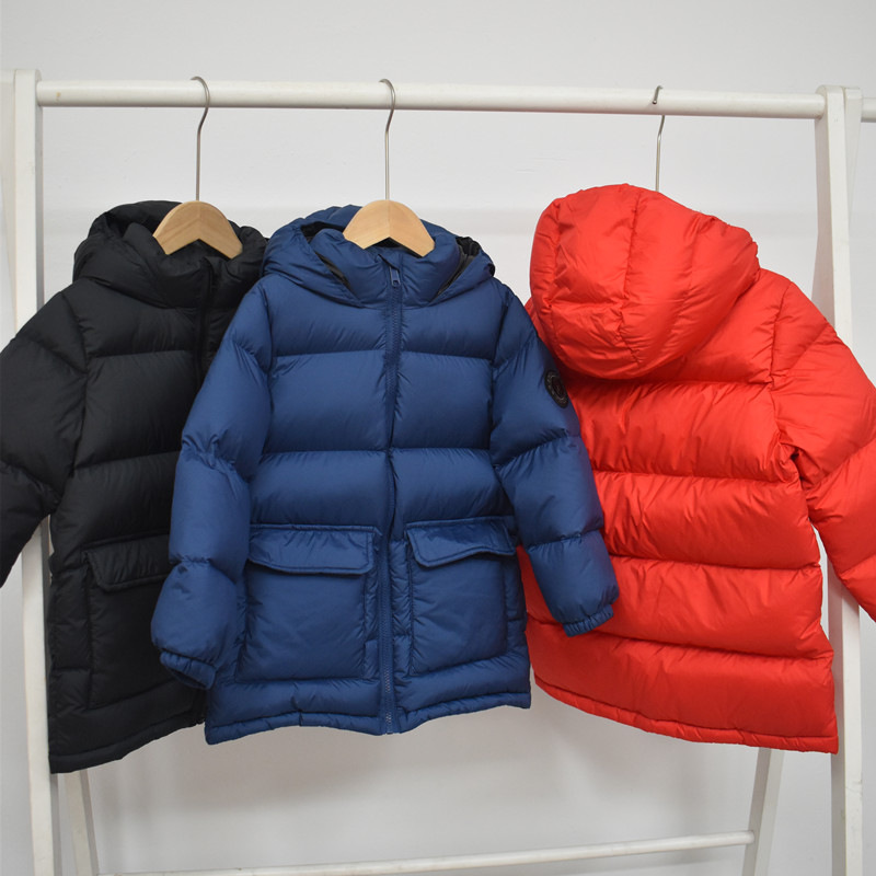 어린이 다운 재킷 중간 길이 두꺼운 소년과 소녀 Extreme Cold 90 White Duck Down 소형, 중형 및 대형 어린이 겨울 코트로 따뜻하게 유지