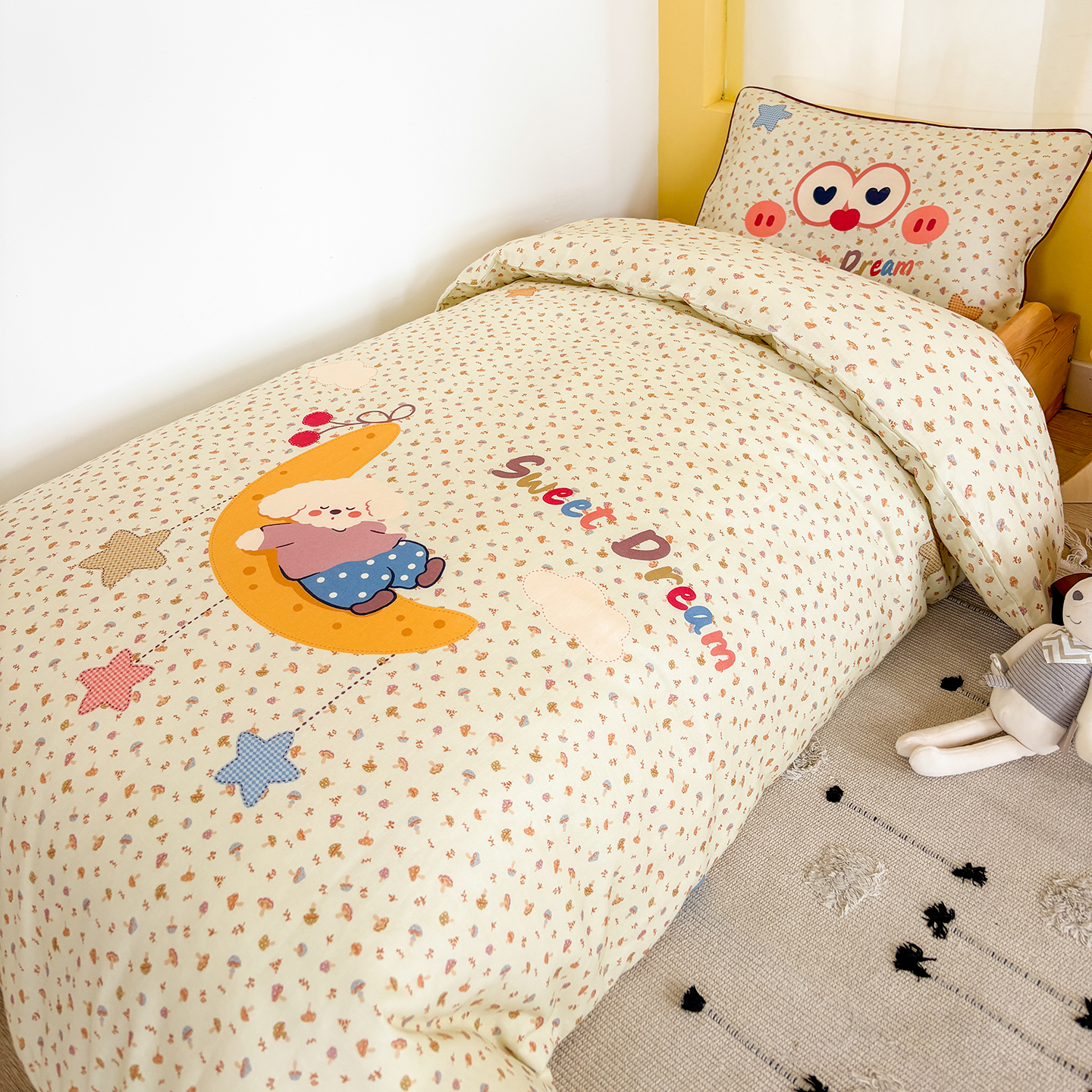 순면 2겹 원사 유치원 이불 3점 세트 어린이 유치원 낮잠 특수 면 이불 6점 침구 세트스토어 가기