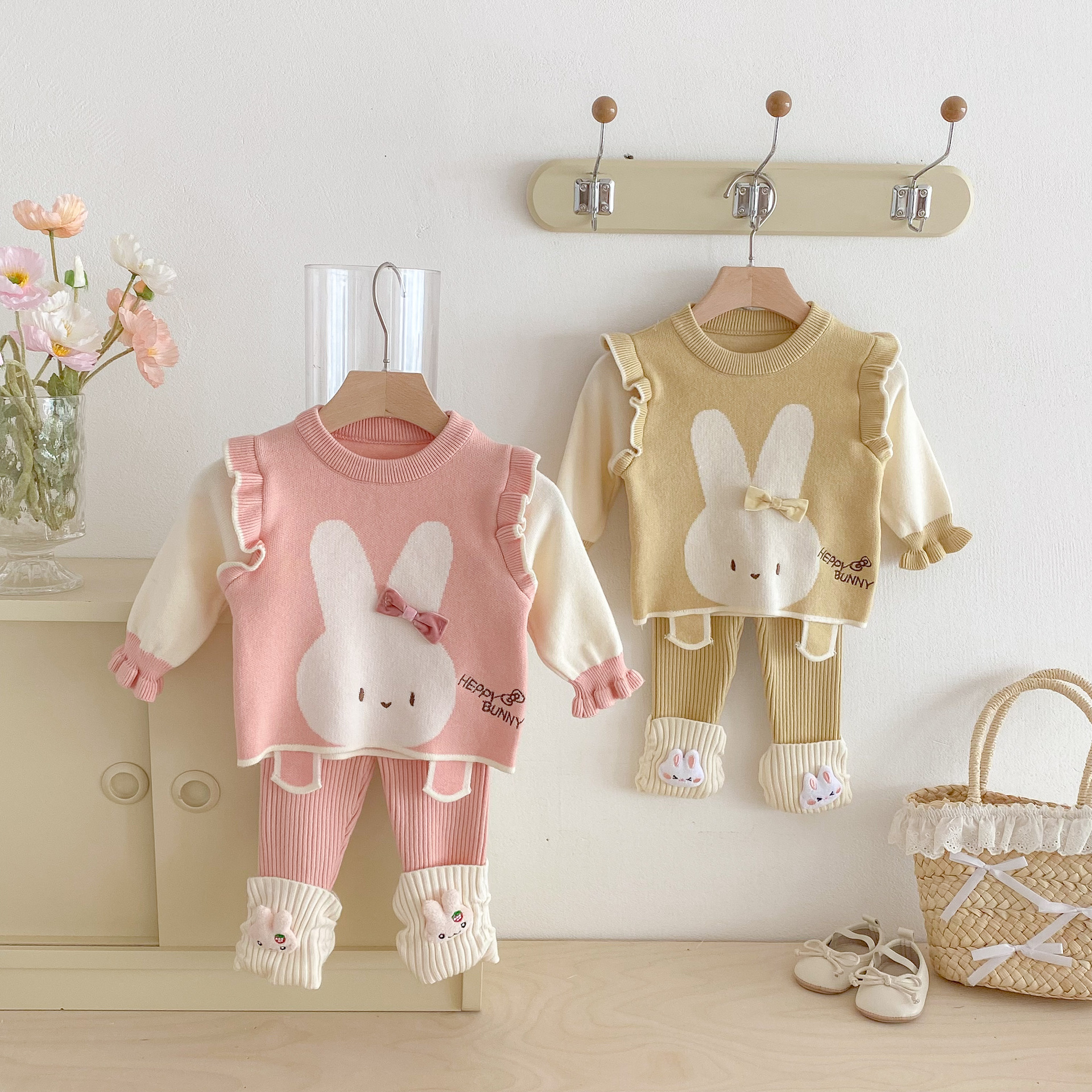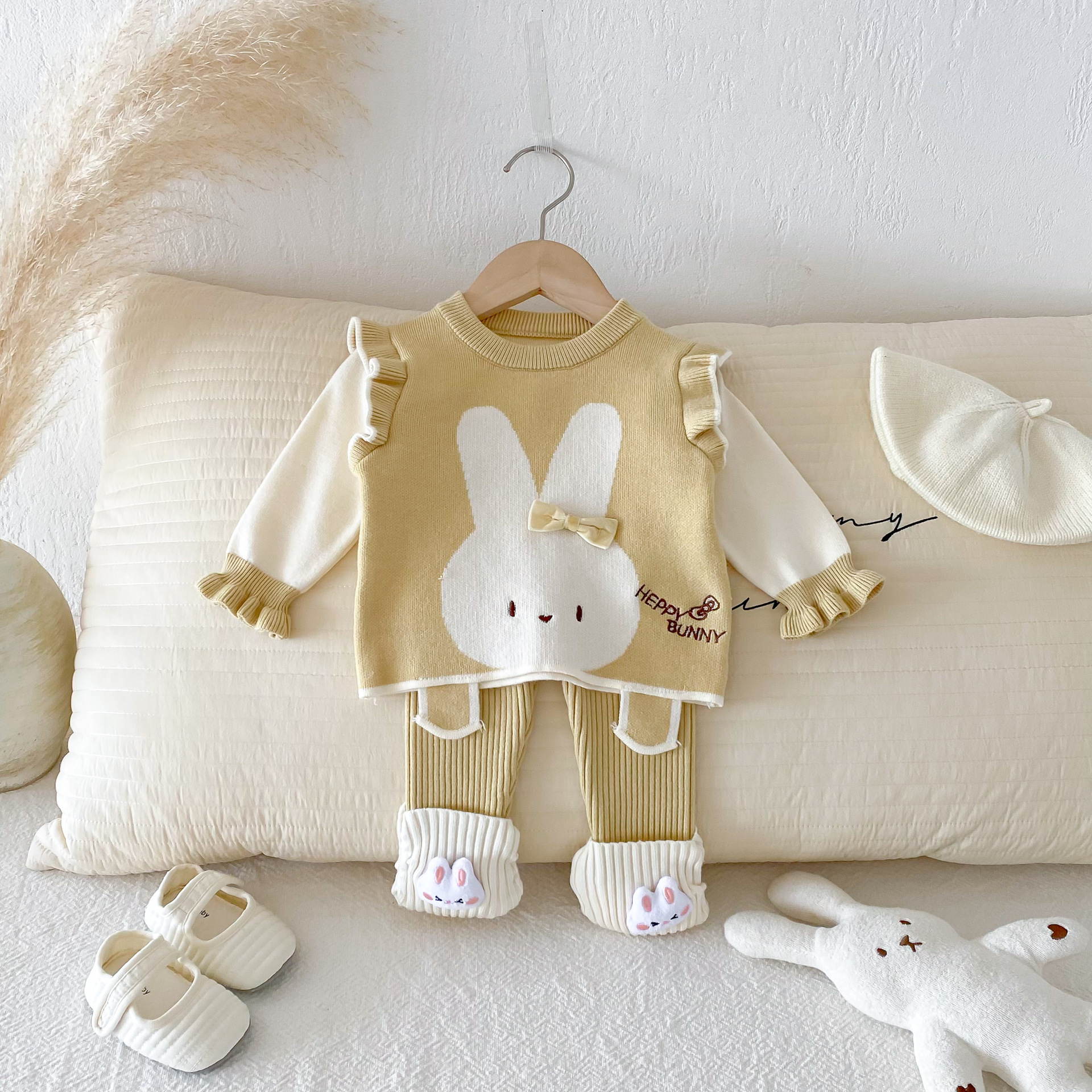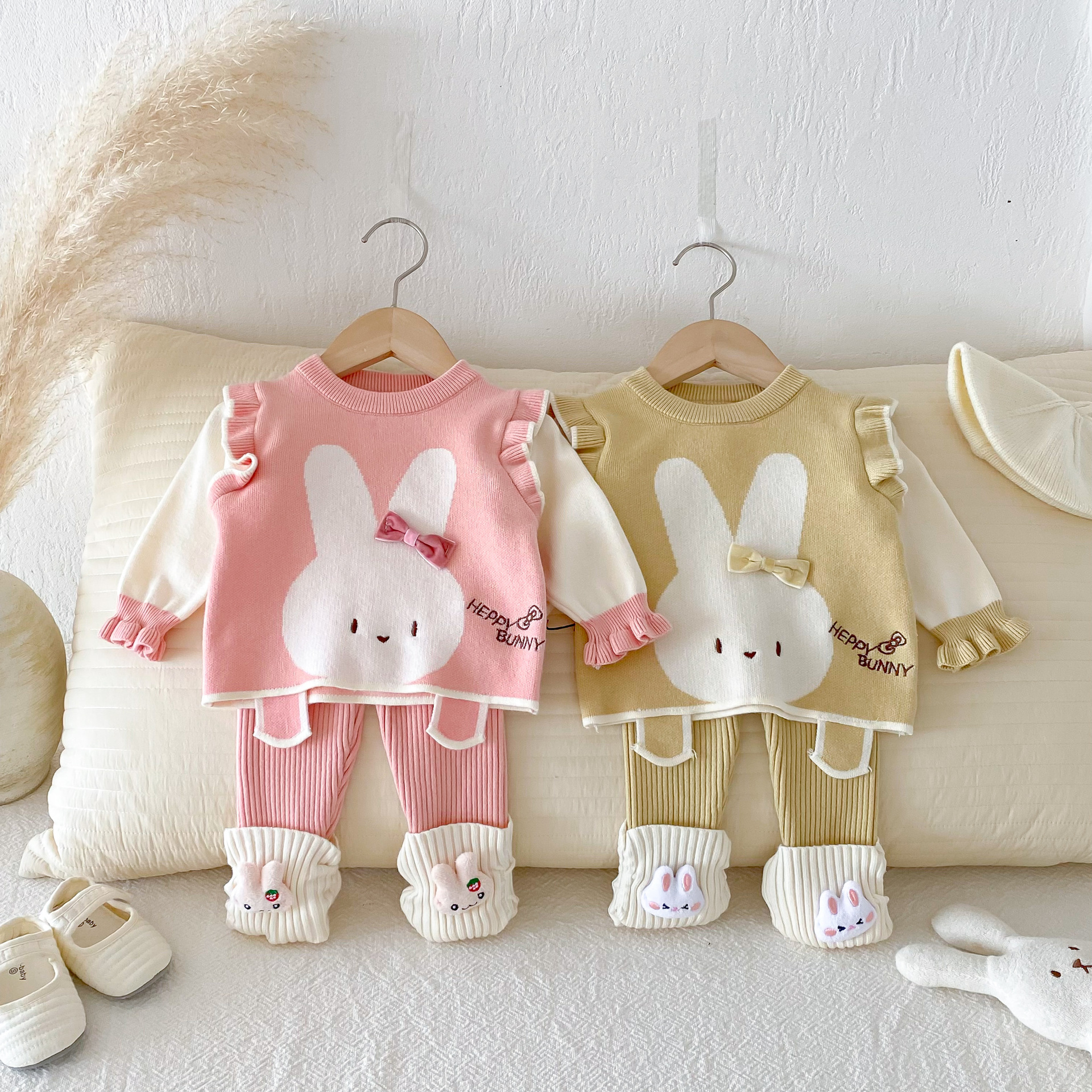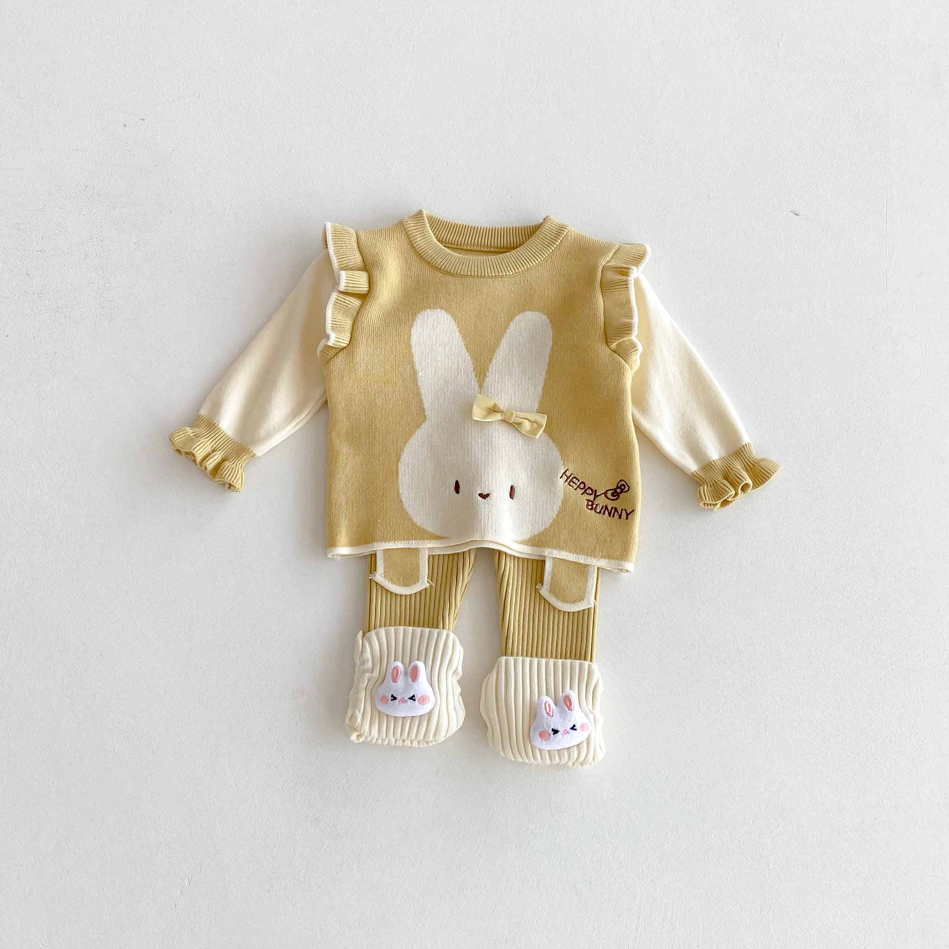 2025 베이비 스웨터 정장 조끼 기본 셔츠 가을, 겨울 새로운 스타일 베이비 탑 귀여운 바지 2 피스 세트