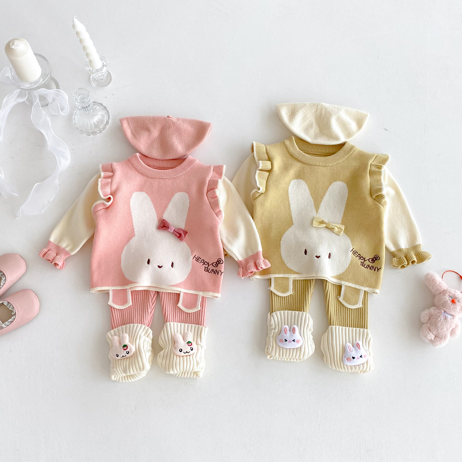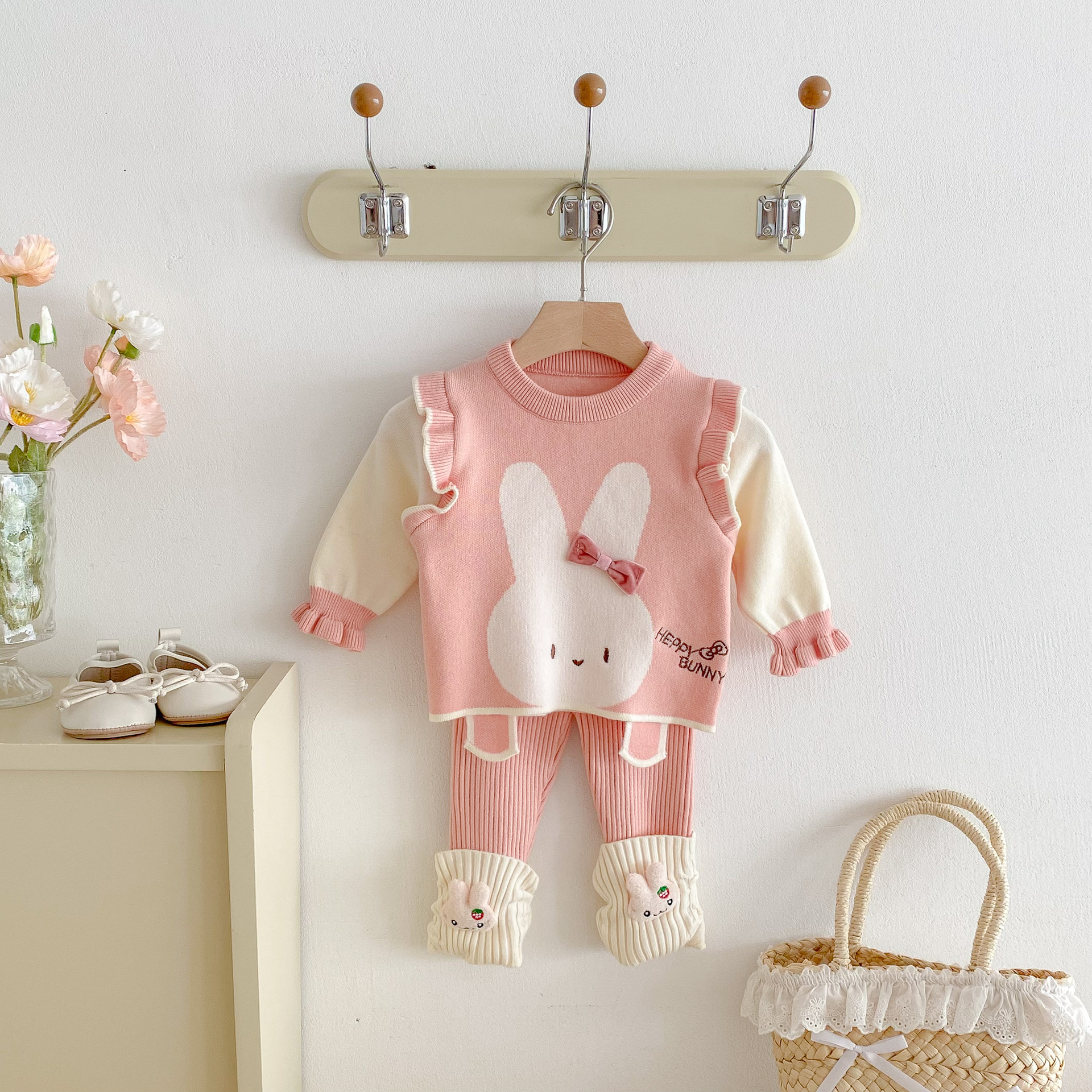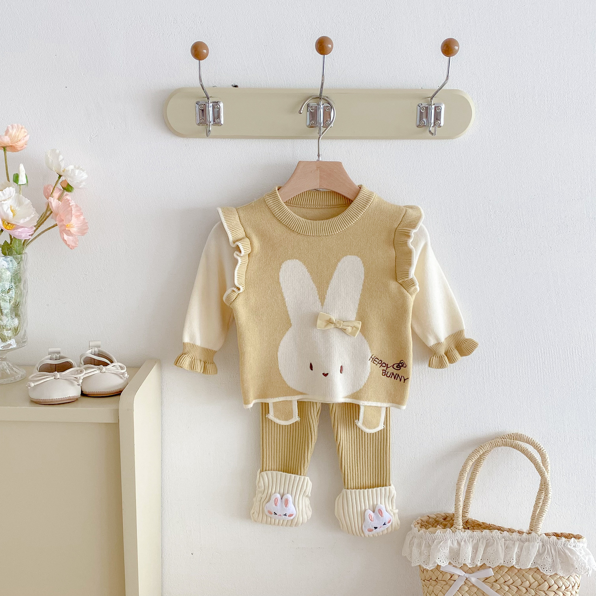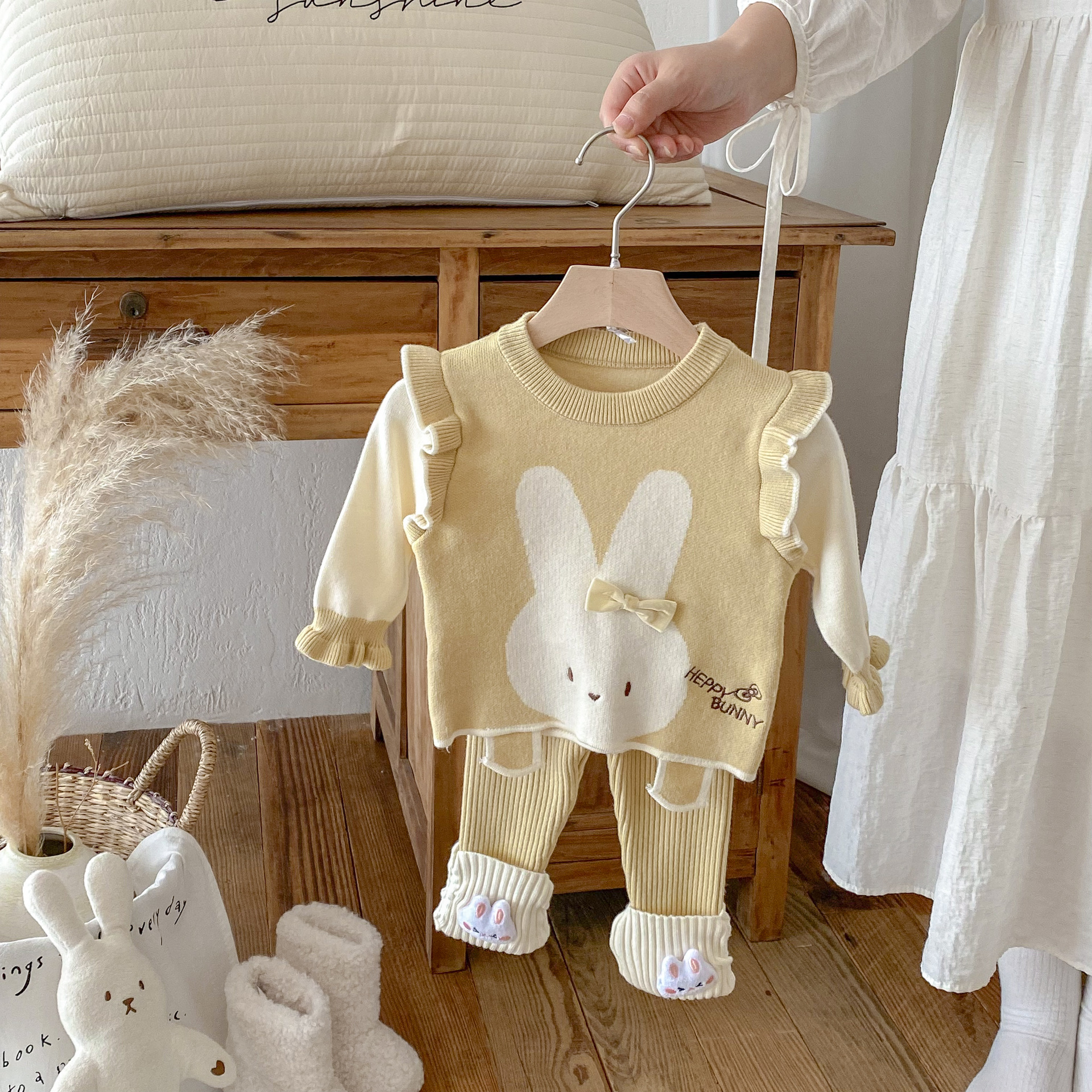 2025 베이비 스웨터 정장 조끼 기본 셔츠 가을, 겨울 새로운 스타일 베이비 탑 귀여운 바지 2 피스 세트
