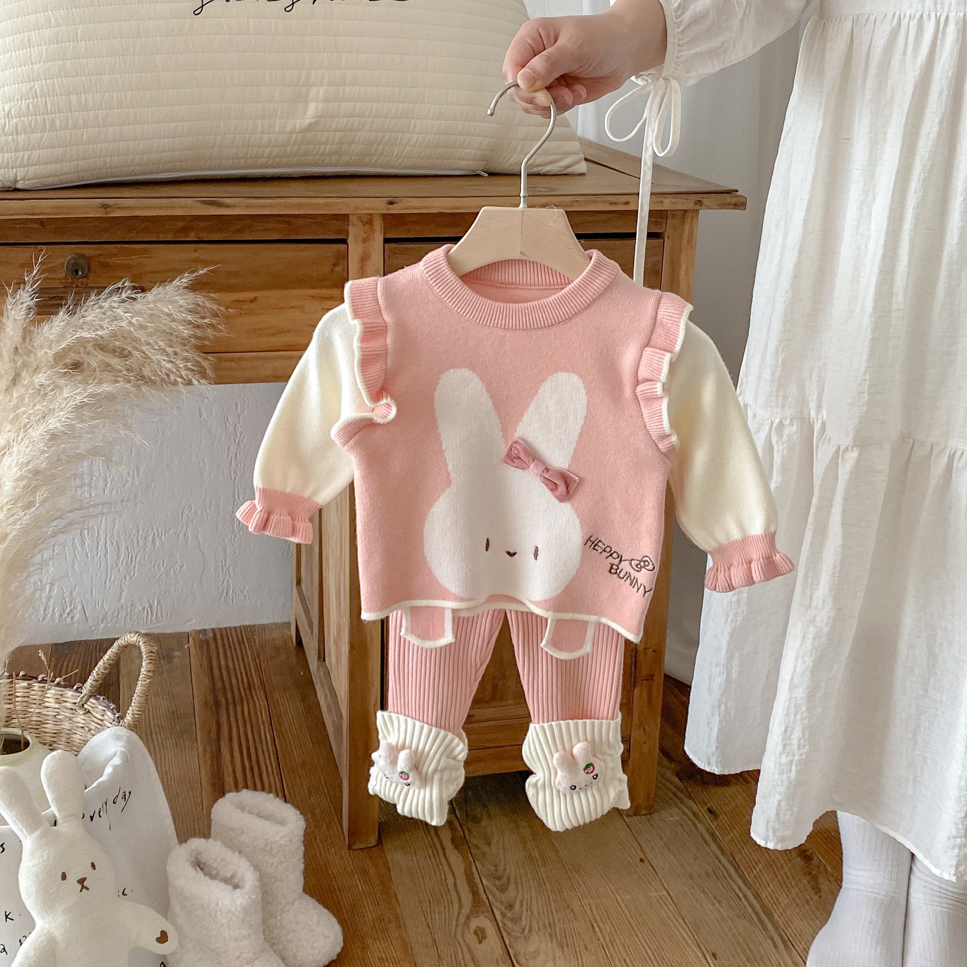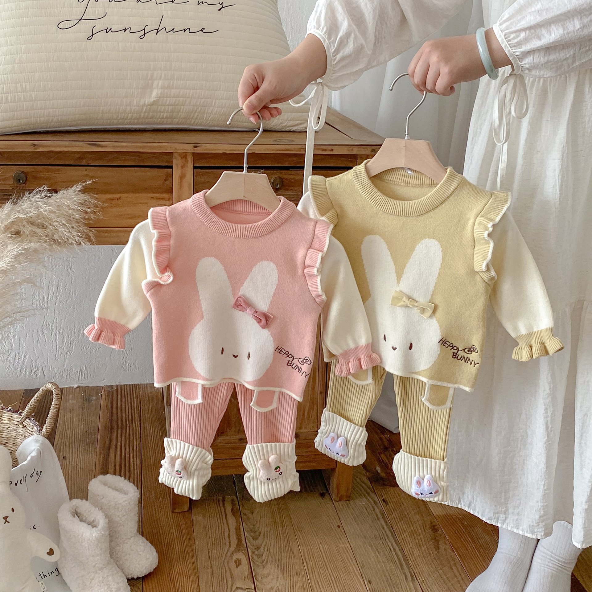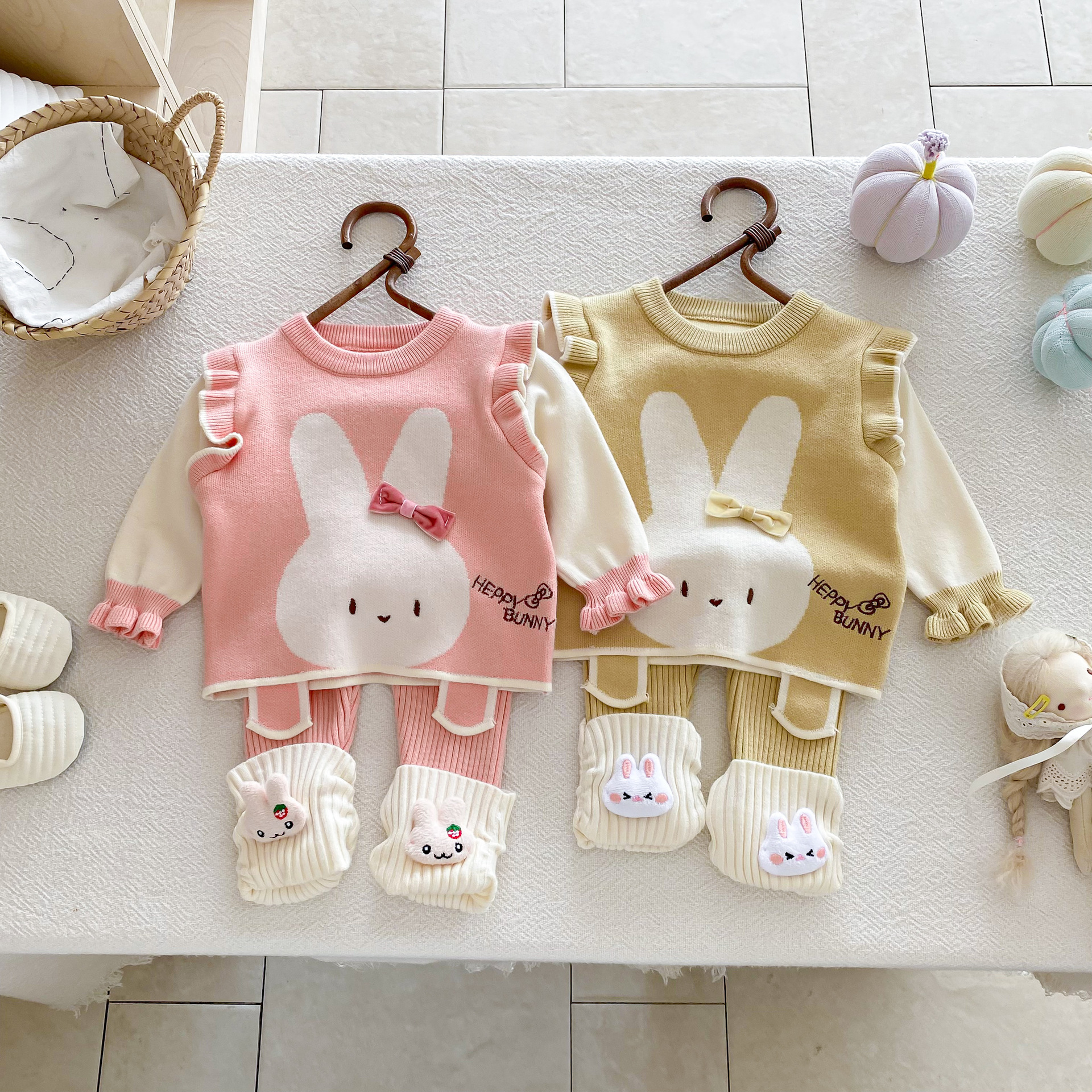 2025 베이비 스웨터 정장 조끼 기본 셔츠 가을, 겨울 새로운 스타일 베이비 탑 귀여운 바지 2 피스 세트스토어 가기