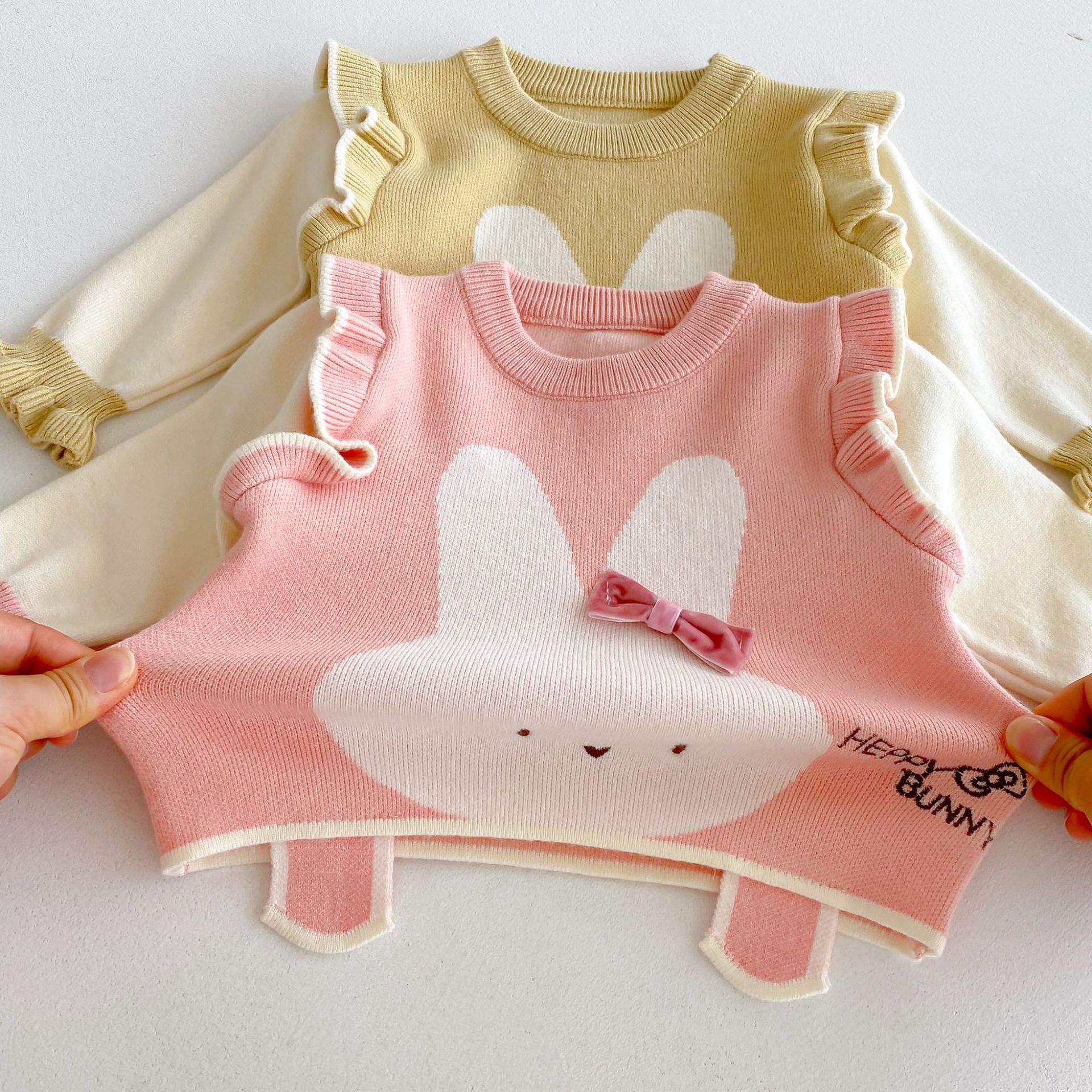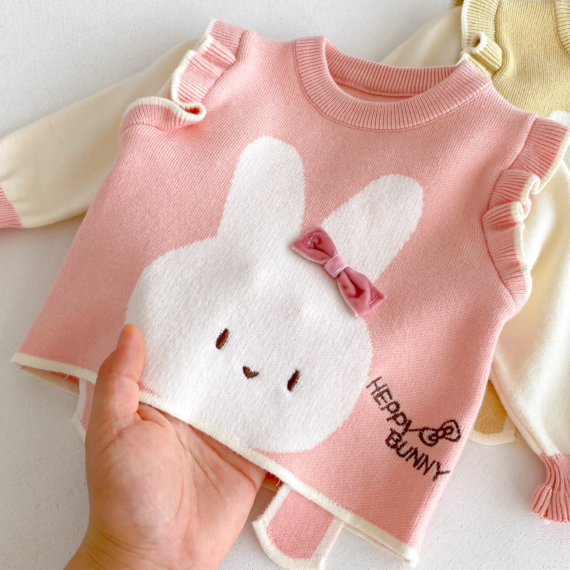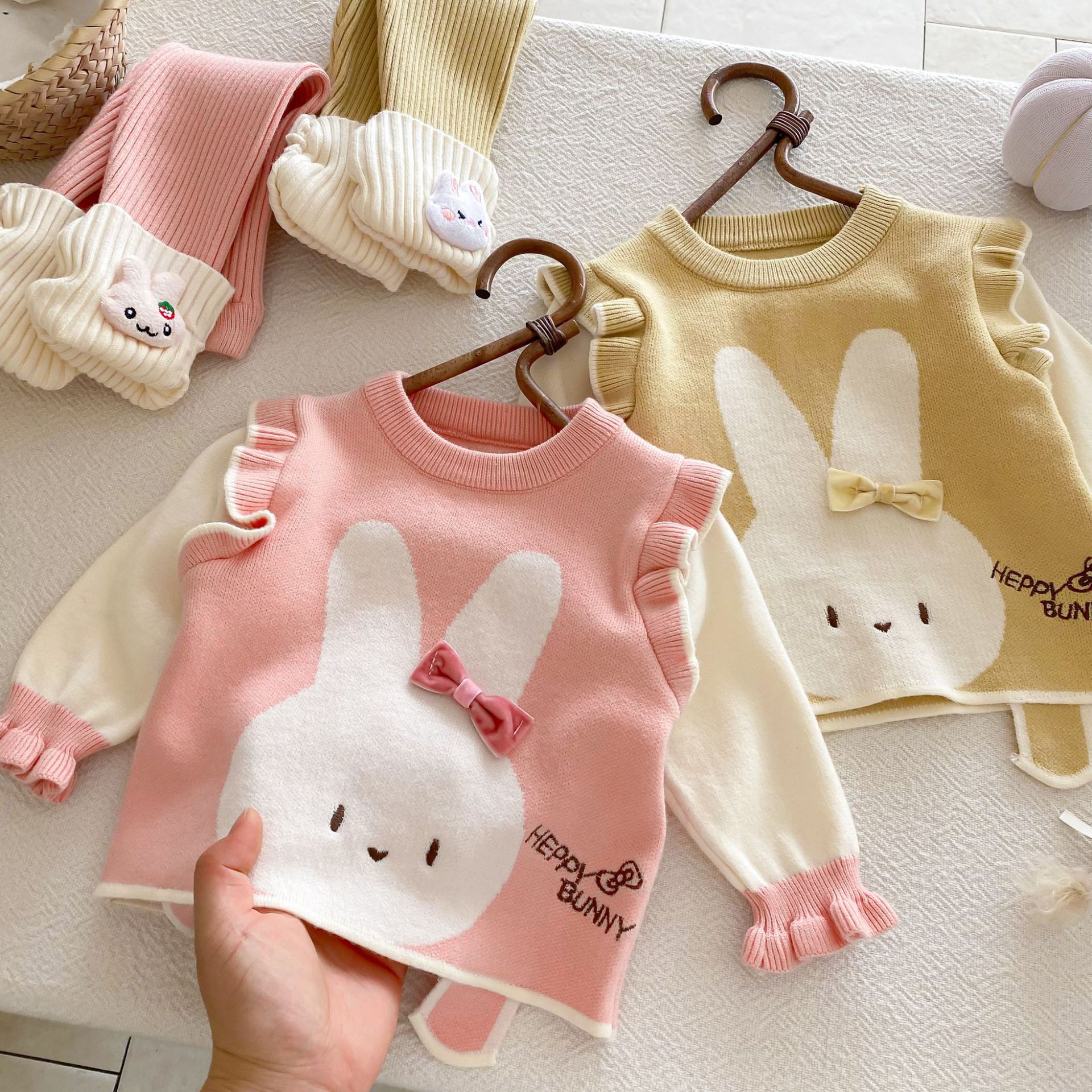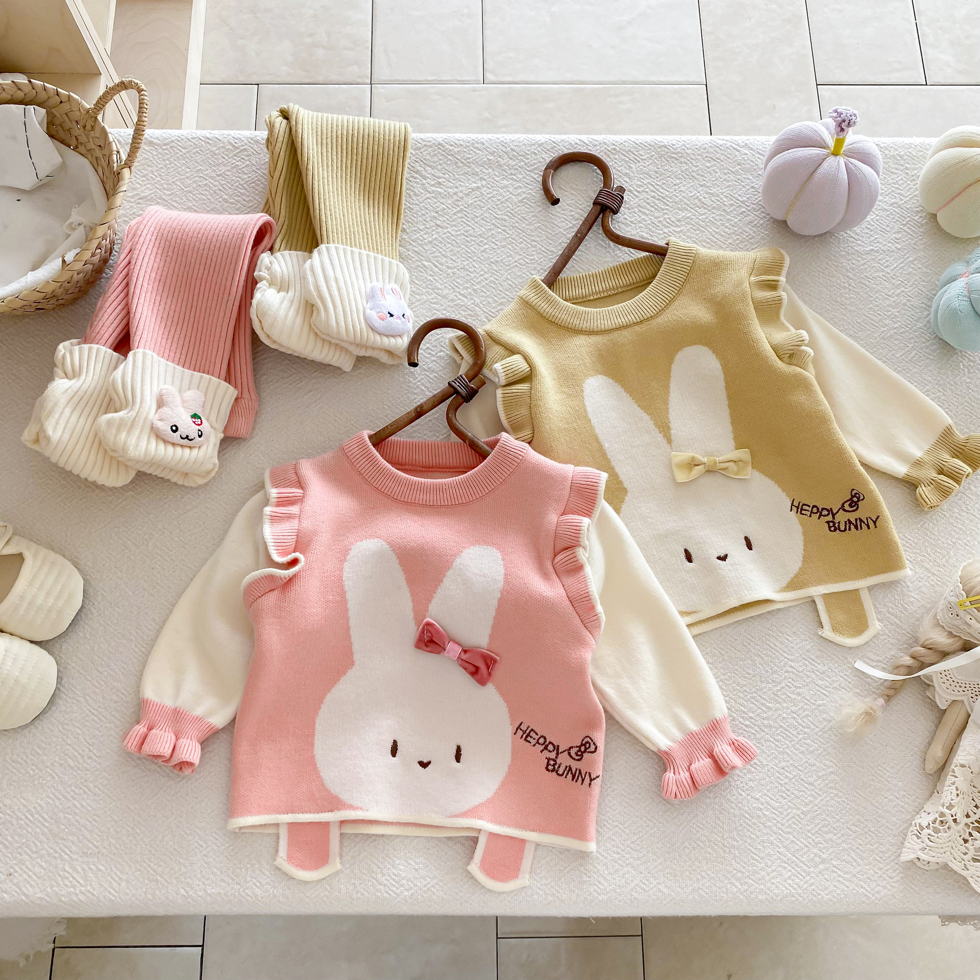 2025 베이비 스웨터 정장 조끼 기본 셔츠 가을, 겨울 새로운 스타일 베이비 탑 귀여운 바지 2 피스 세트스토어 가기
