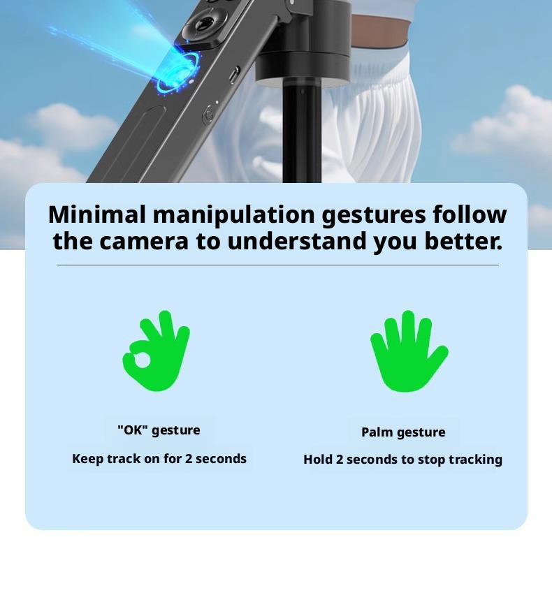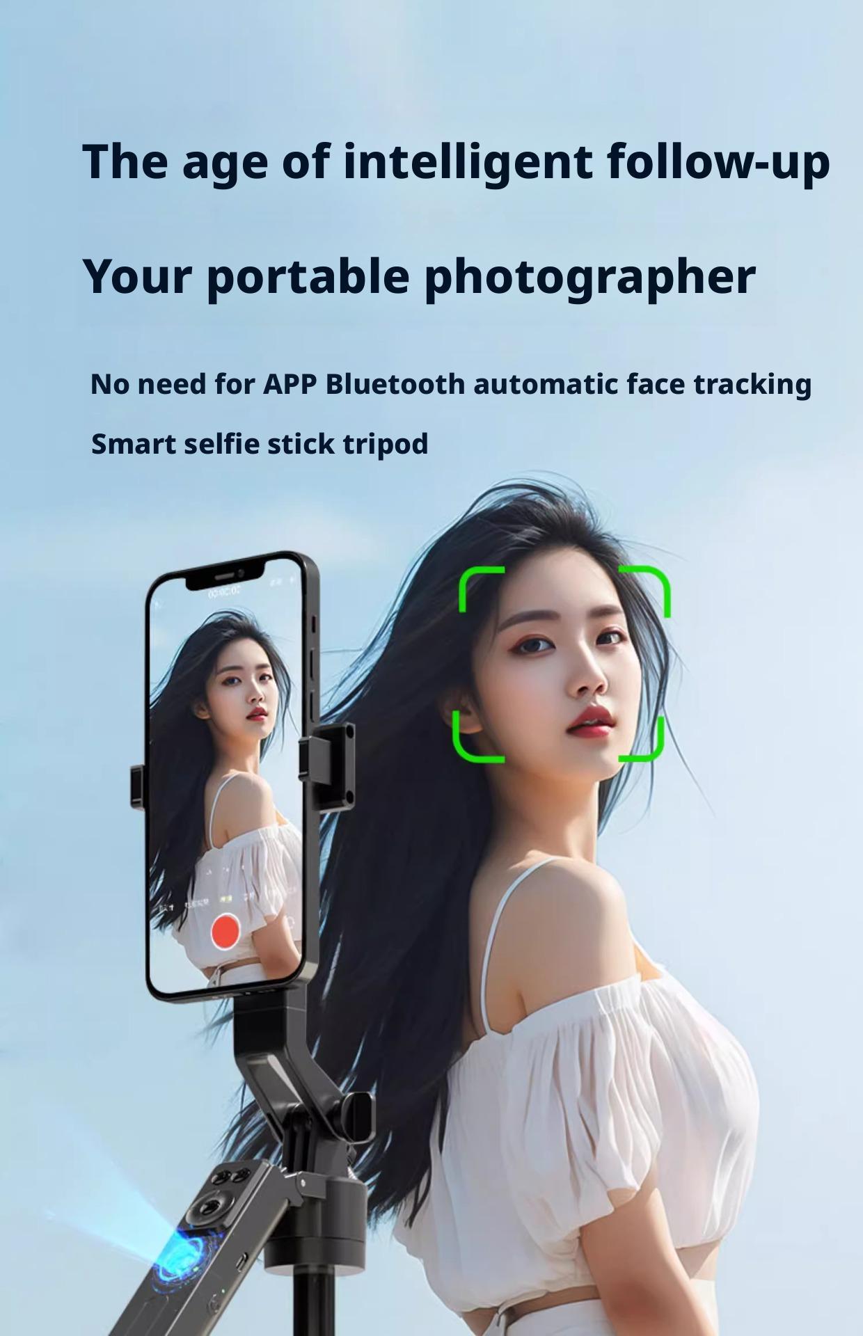알루미늄 합금 셀카봉, 지능형 얼굴 추적, 라이브 스트리밍 및 촬영, 짐벌 통합 사진 삼각대 360 ° 회전