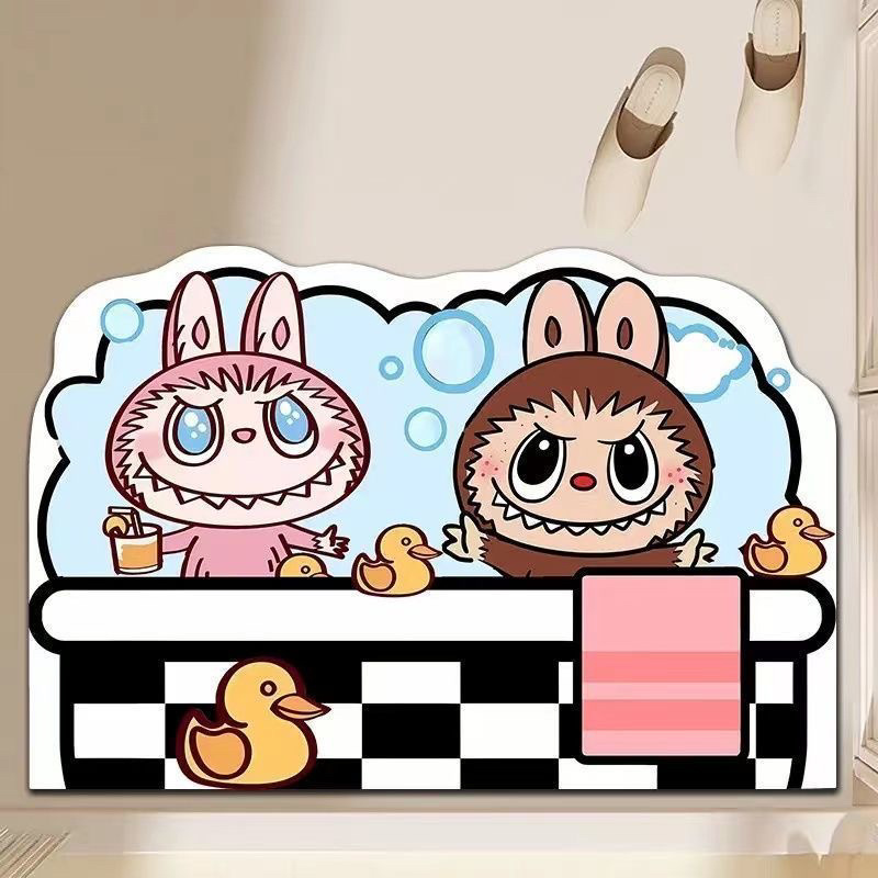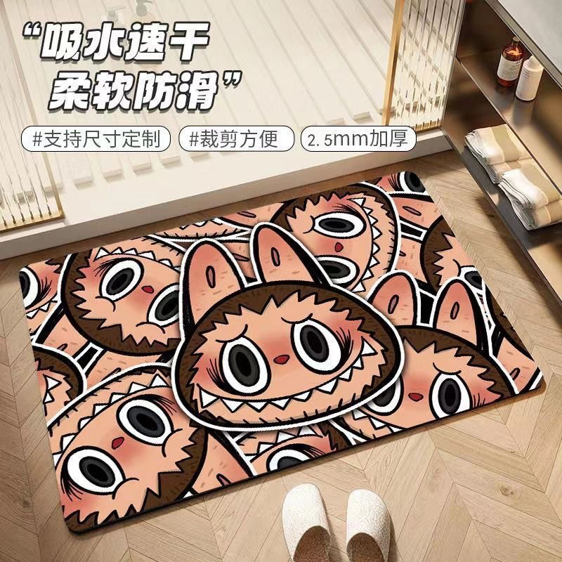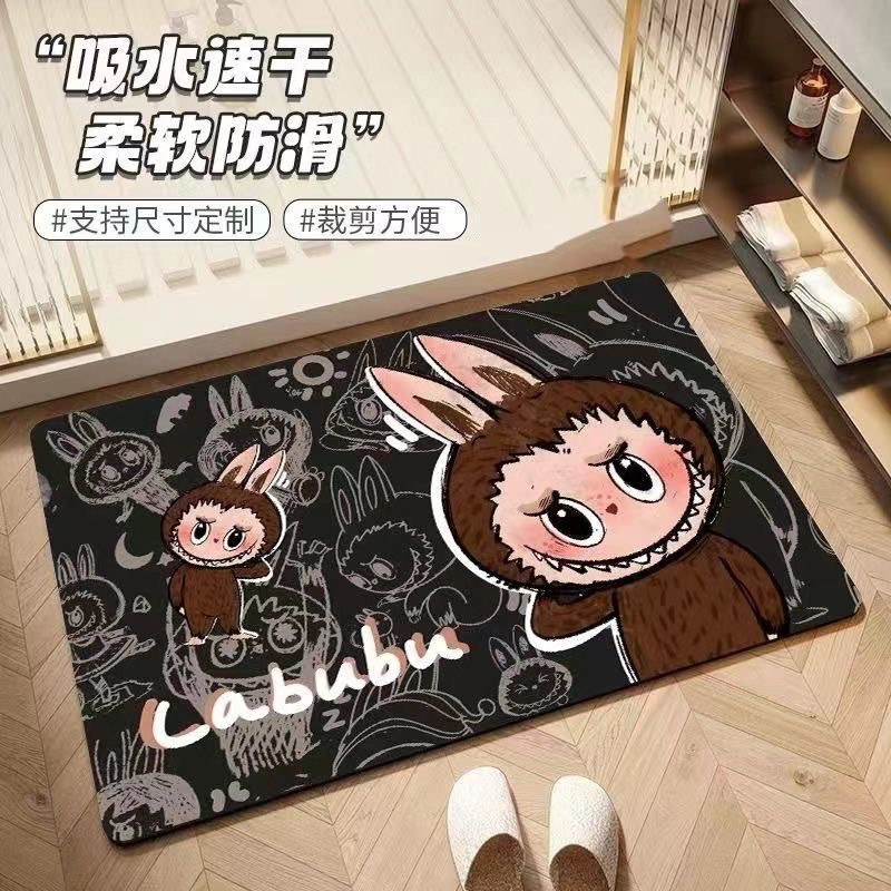 Labubu 만화 욕실 바닥 매트 흡수성 및 기름 흡수성 규조토 진흙 미끄럼 방지 카펫 홈 욕실 문 매트
