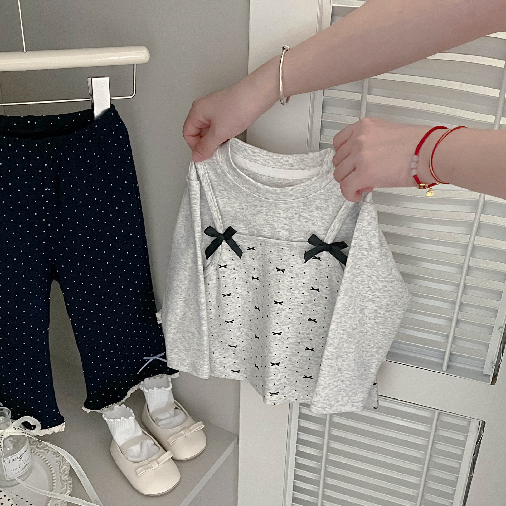 여아용 긴팔 티셔츠 2026 봄 가을 신상 아동 한국 스타일 페이크 투피스 상의 리본 다용도 이너웨어