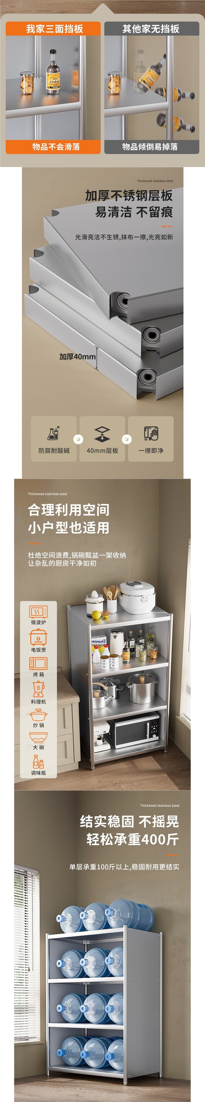 전자 레인지 보관 캐비닛 주방 용품 바닥 보관 주방 보관 랙 스테인레스 스틸 선반 다층 가정용 냄비 선반 없음