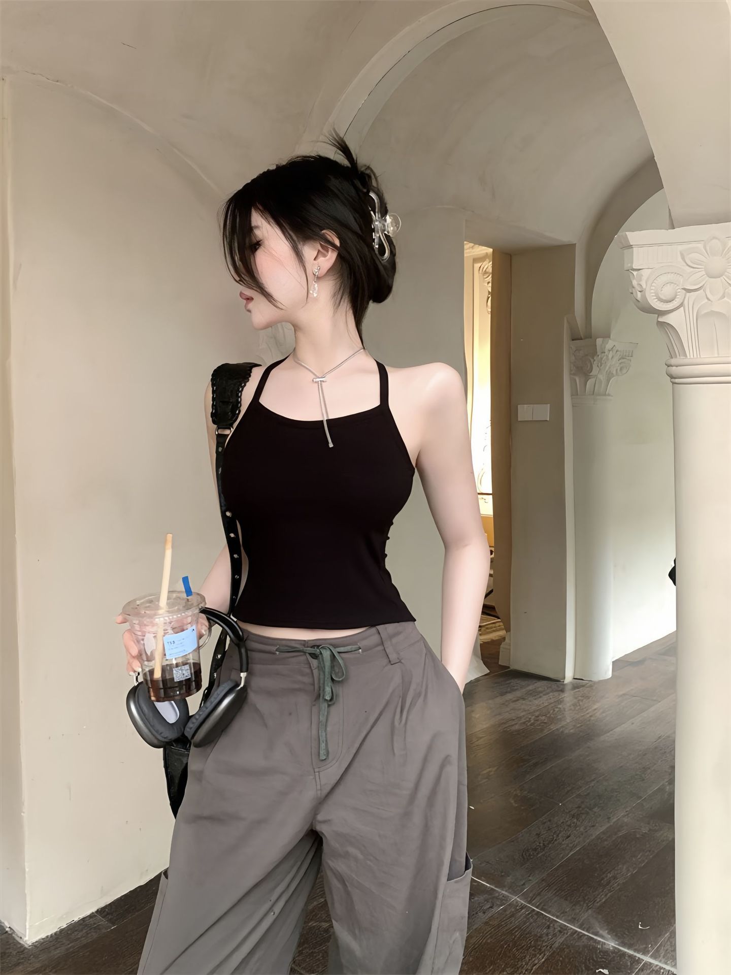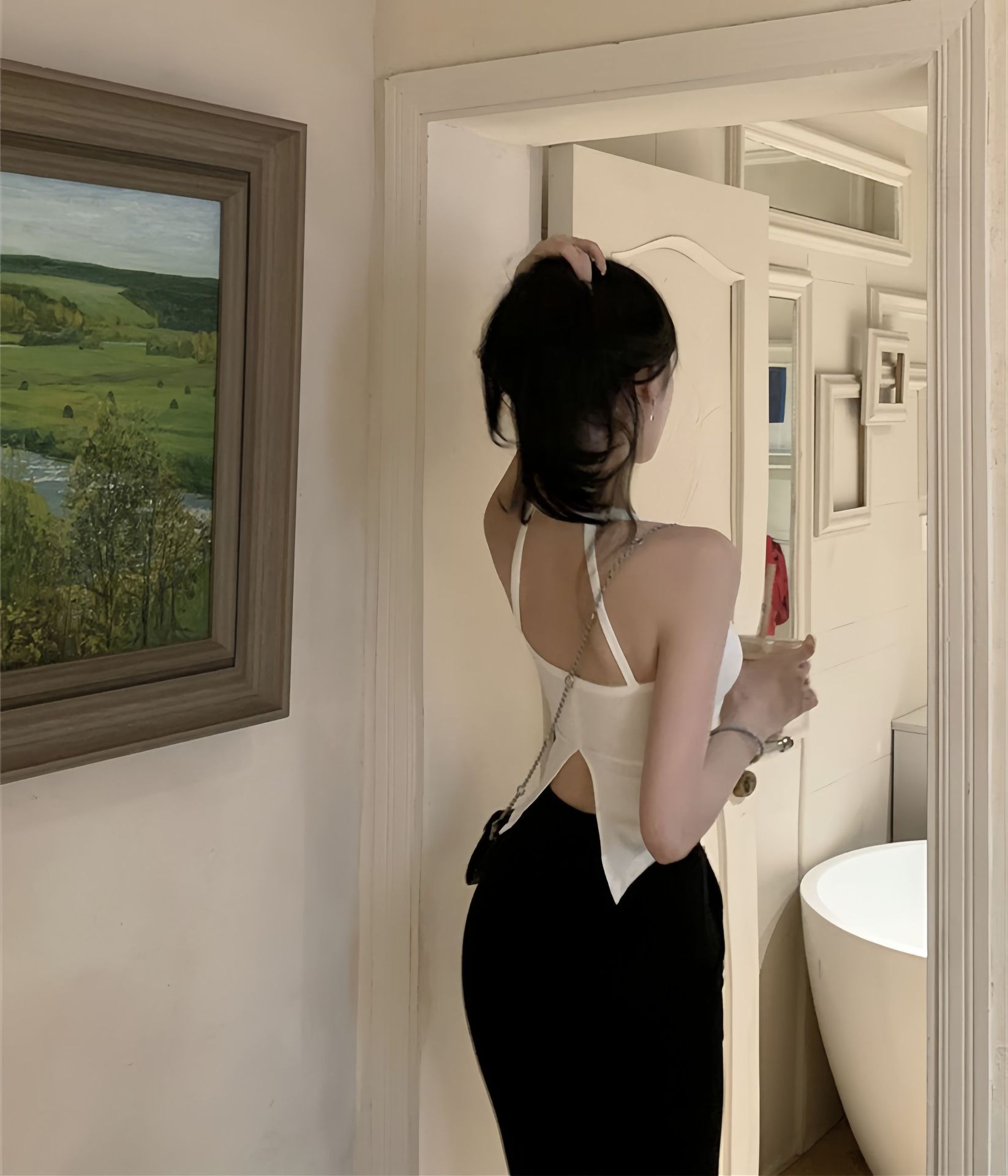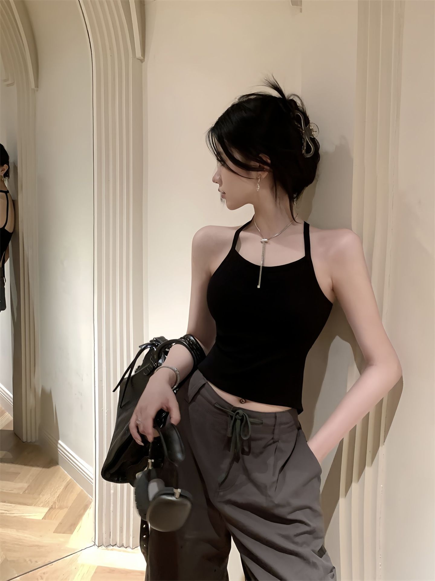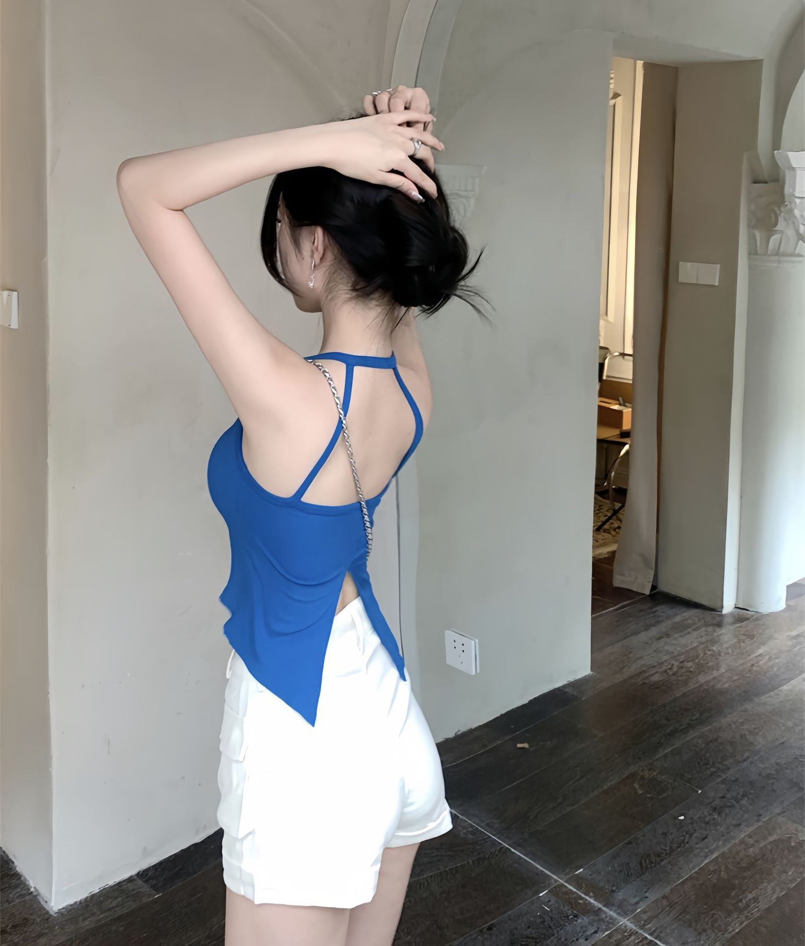 핫걸 슬릿 백 캐미솔, 섹시한 이너웨어, 빅 백리스 니치 아우터웨어, 트렌디한 고정컵 가슴 랩 튜브탑스토어 가기