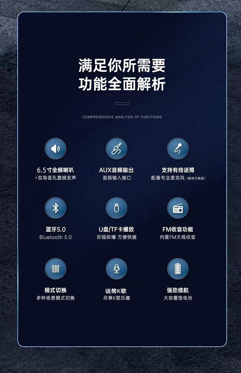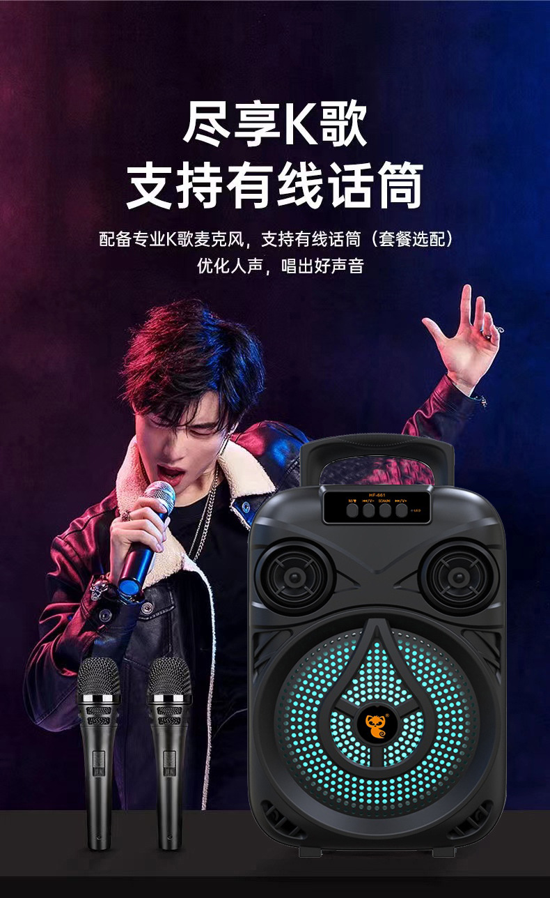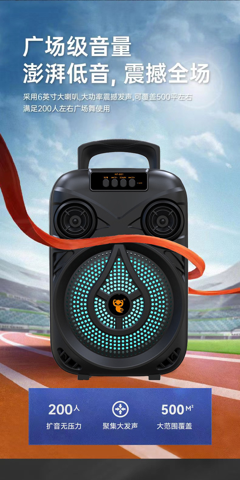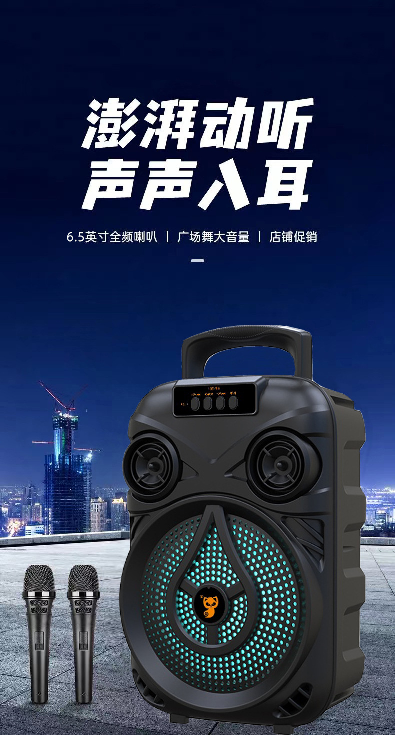 6.5inch 휴대용 블루투스 스피커 야외 휴대용 스퀘어 댄스 고출력 서브 우퍼 홈 마이크 노래방 오디오스토어 가기