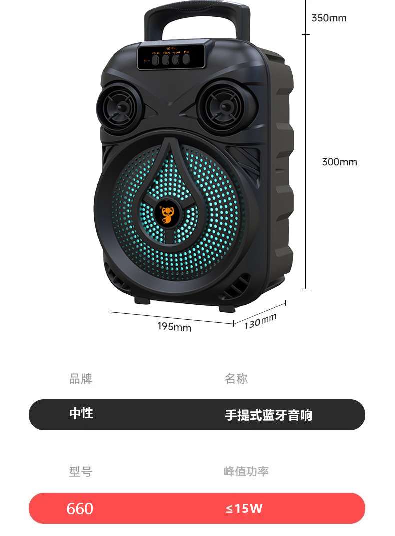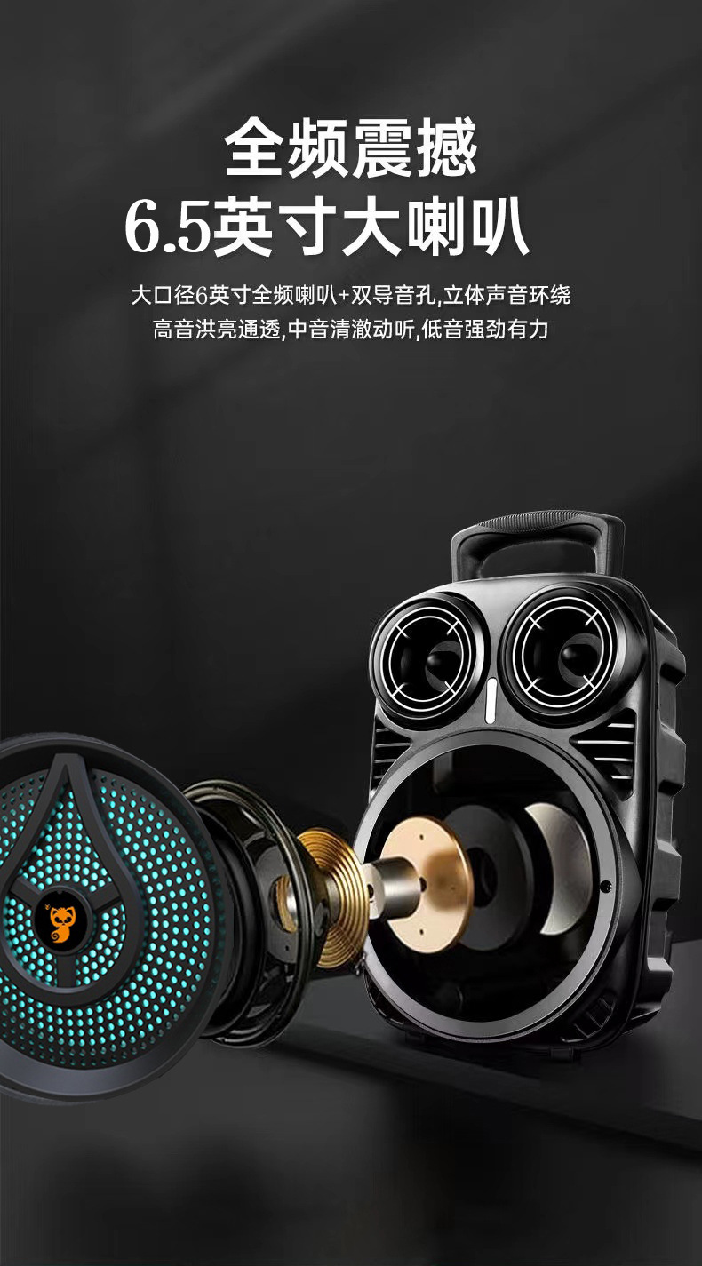 6.5inch 휴대용 블루투스 스피커 야외 휴대용 스퀘어 댄스 고출력 서브 우퍼 홈 마이크 노래방 오디오