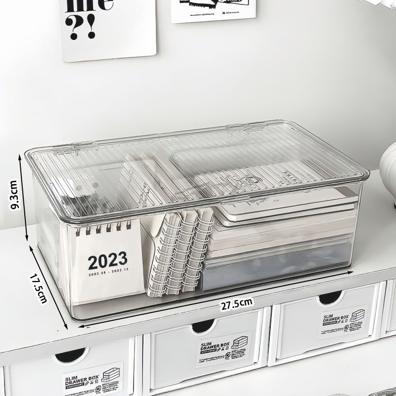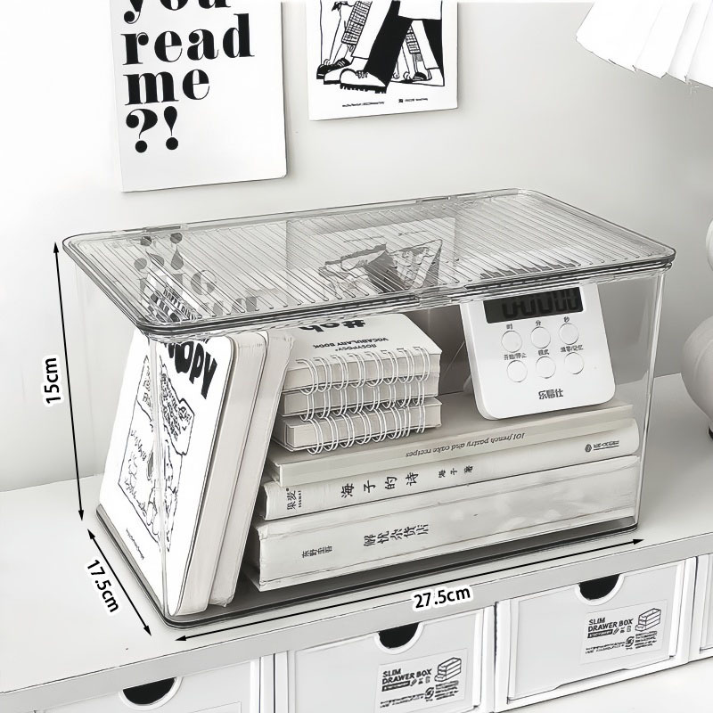 뚜껑이 있는 아크릴 보관함 데스크탑 투명 보관함 책상 화장품 액세서리 편리한 플라스틱 방진 상자