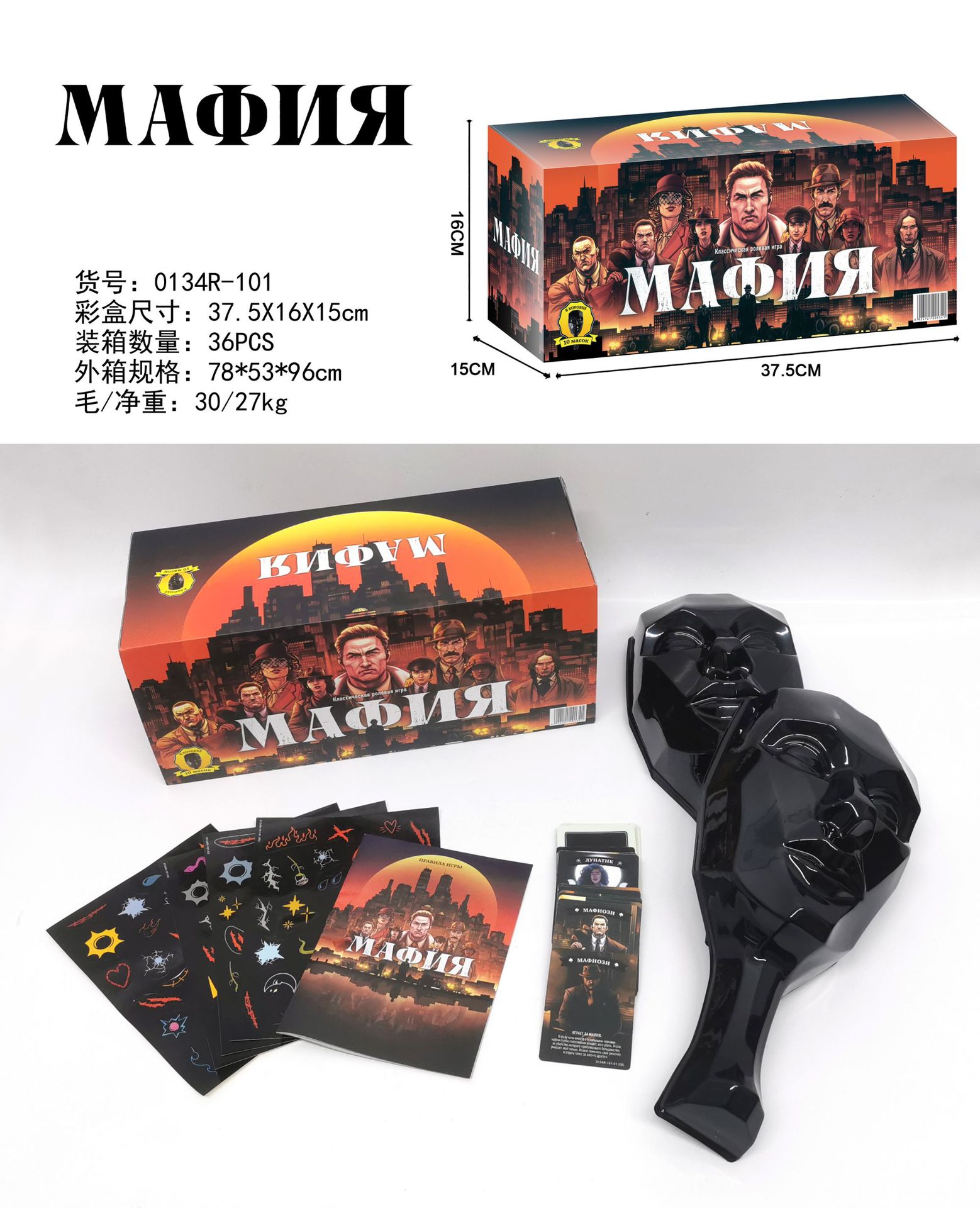 러시아어로 된 해외배송 상품, 블랙핸즈 마스크 파티 게임, 실내 카드 게임 엔터테인먼트, 2~3인용 테이블 게임, 마피아 테이블 게임