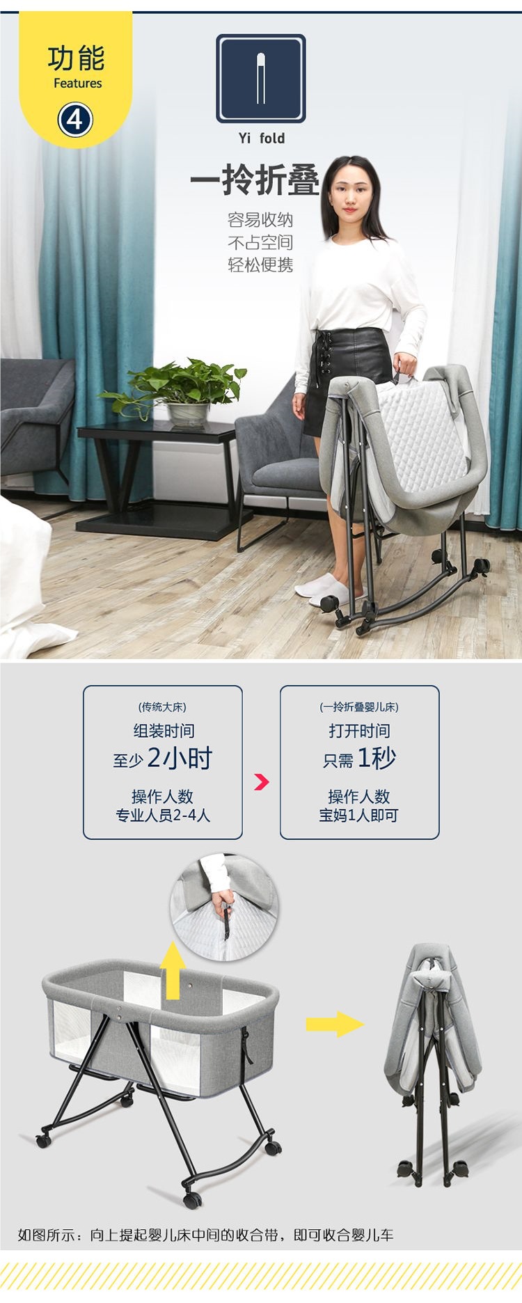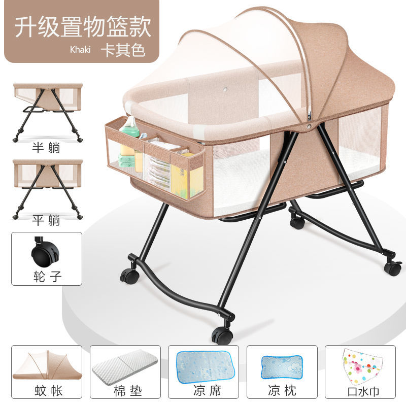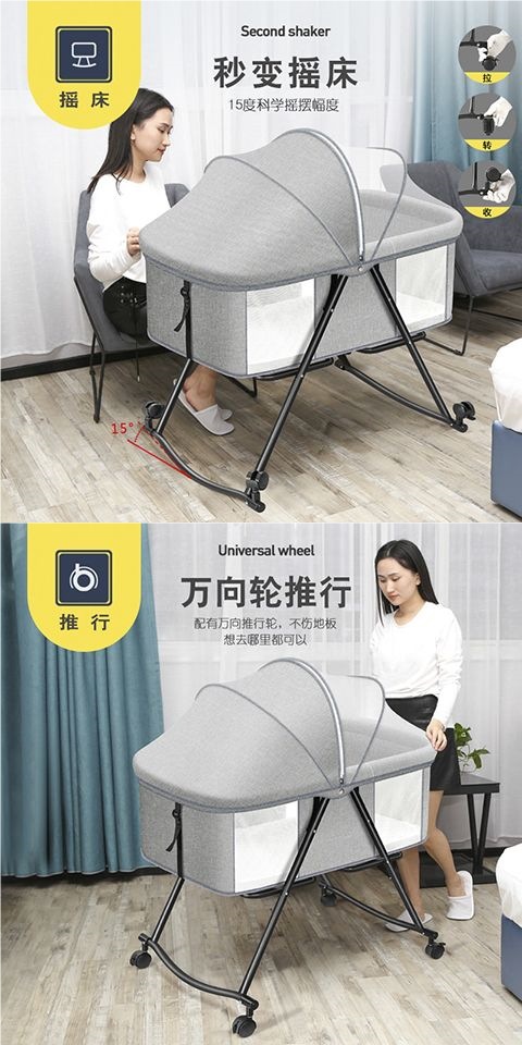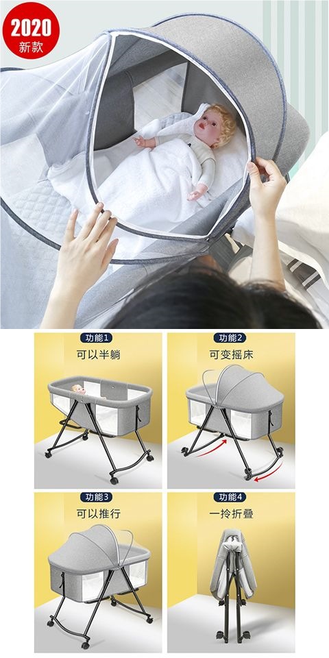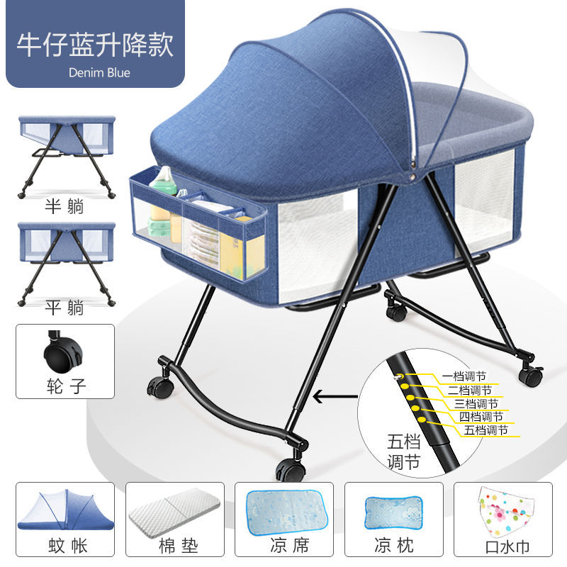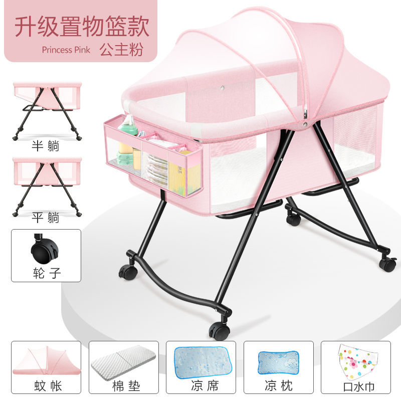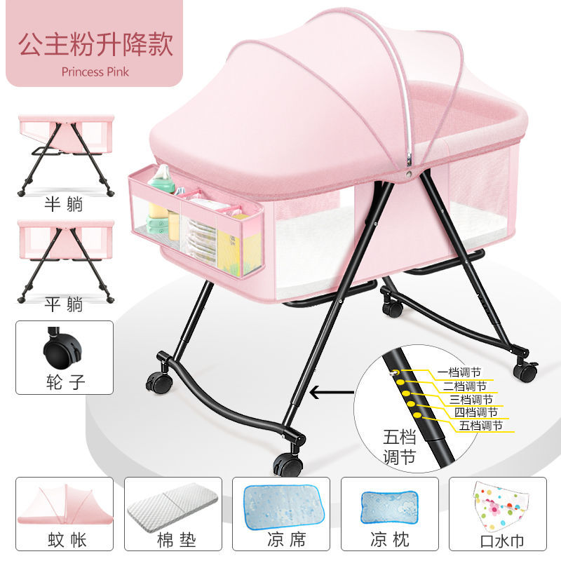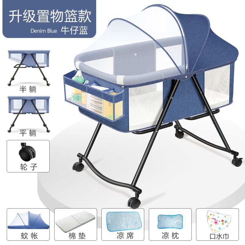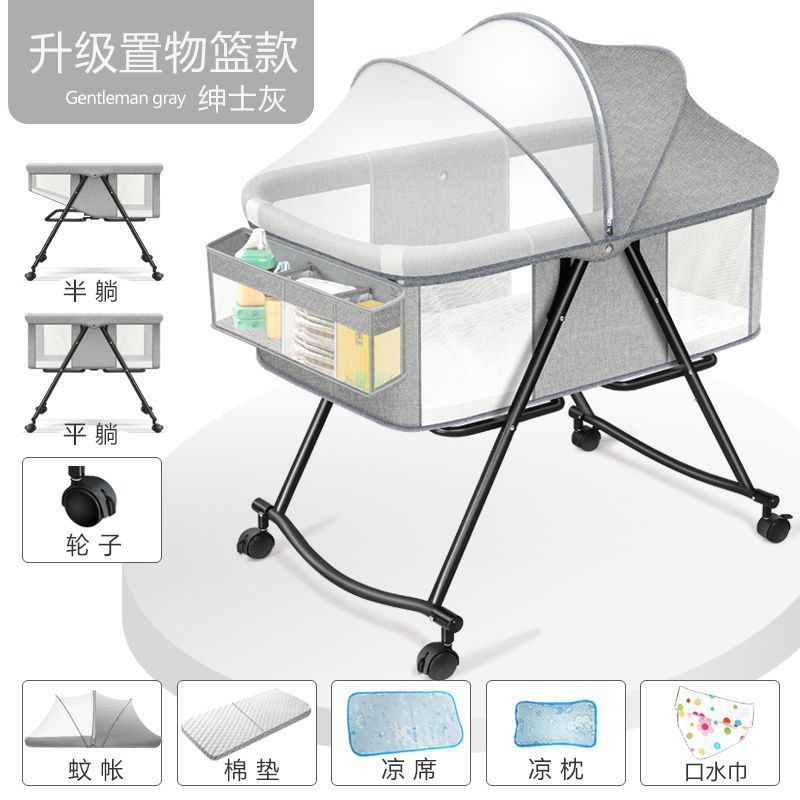 유아용 침대 이동식 휴대용 아기 침대 다기능 접이식 침대 신생아 유아용 침대 롤러가있는 요람 침대스토어 가기