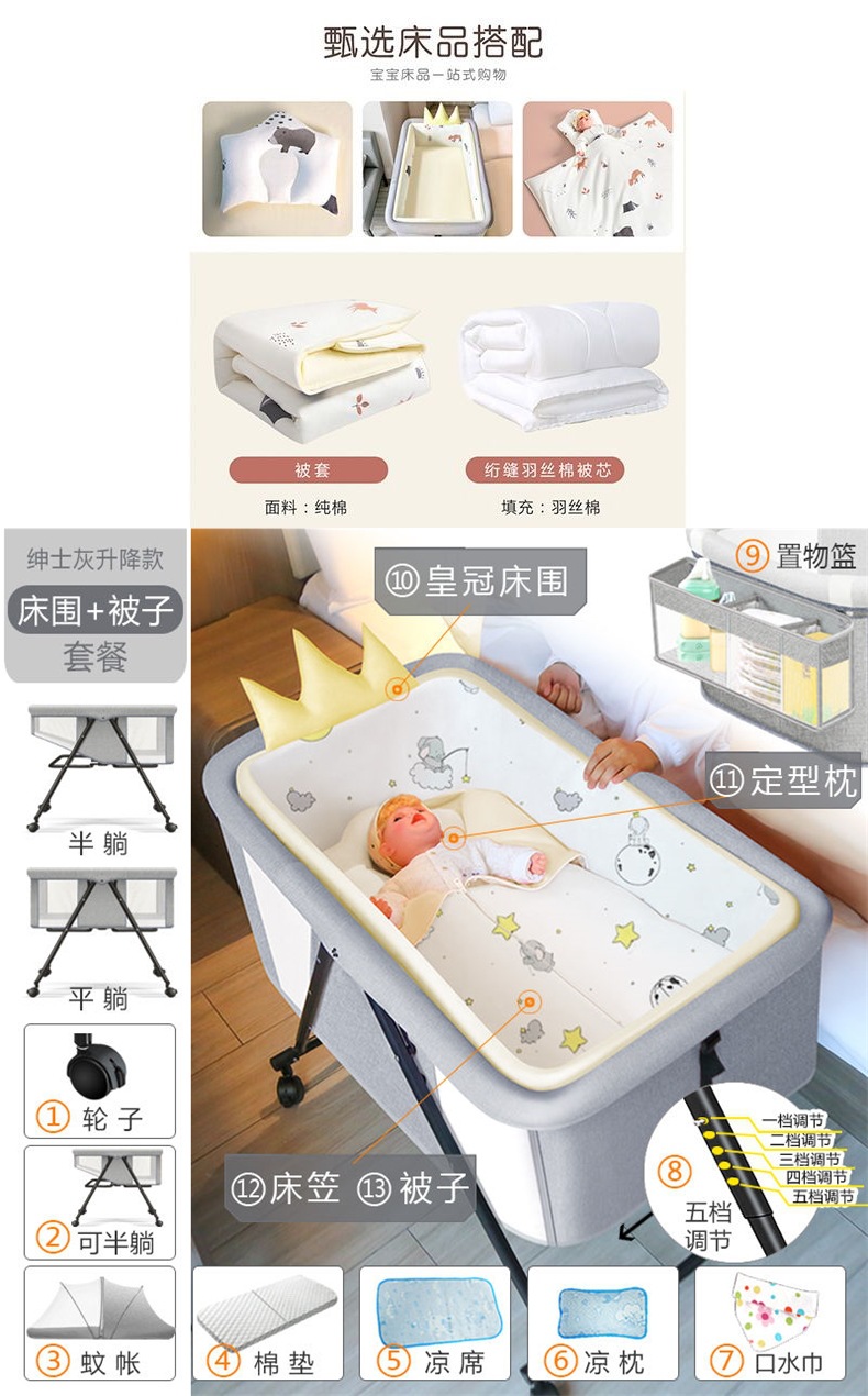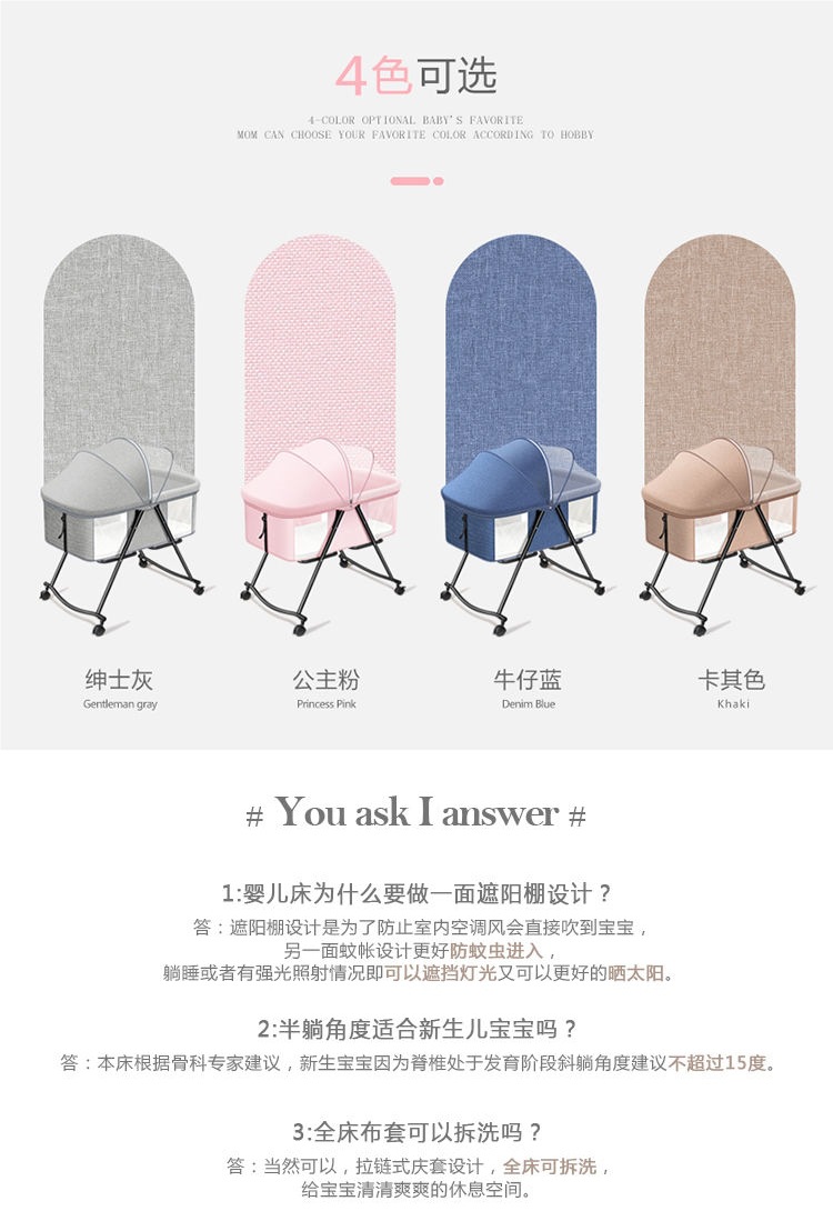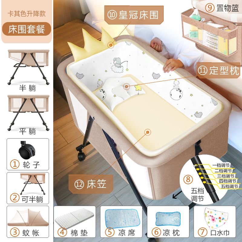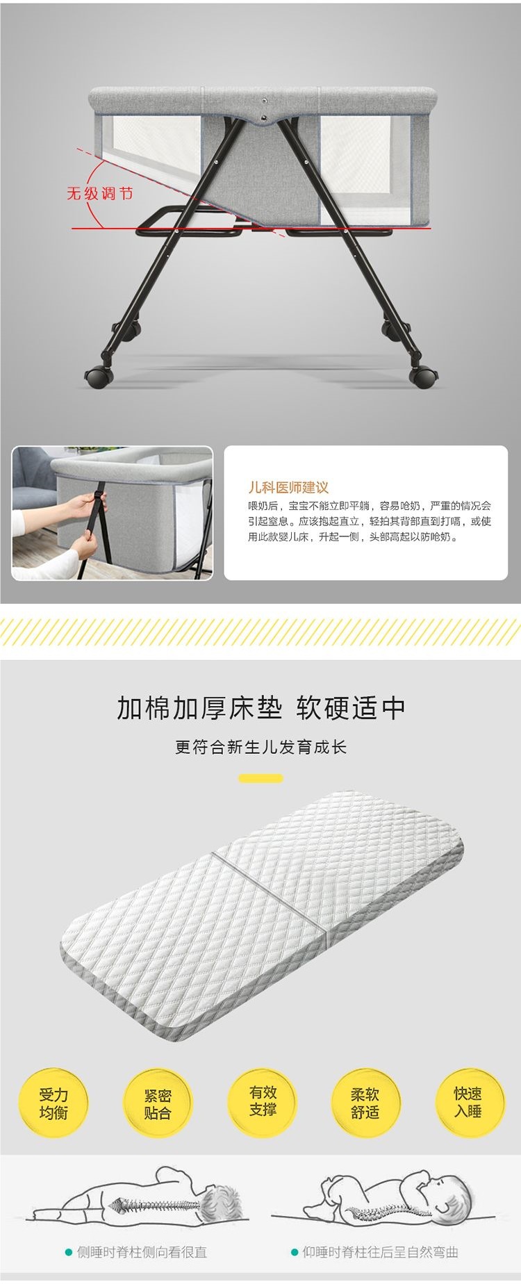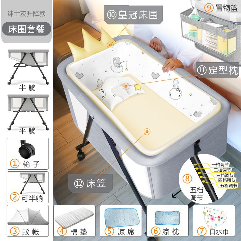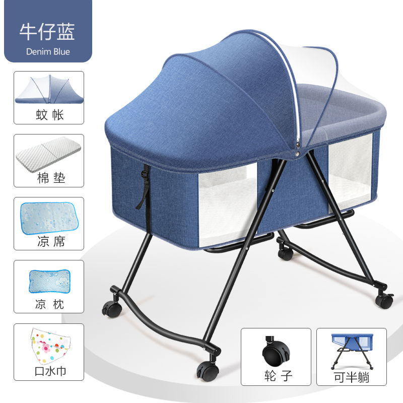 유아용 침대 이동식 휴대용 아기 침대 다기능 접이식 침대 신생아 유아용 침대 롤러가있는 요람 침대스토어 가기
