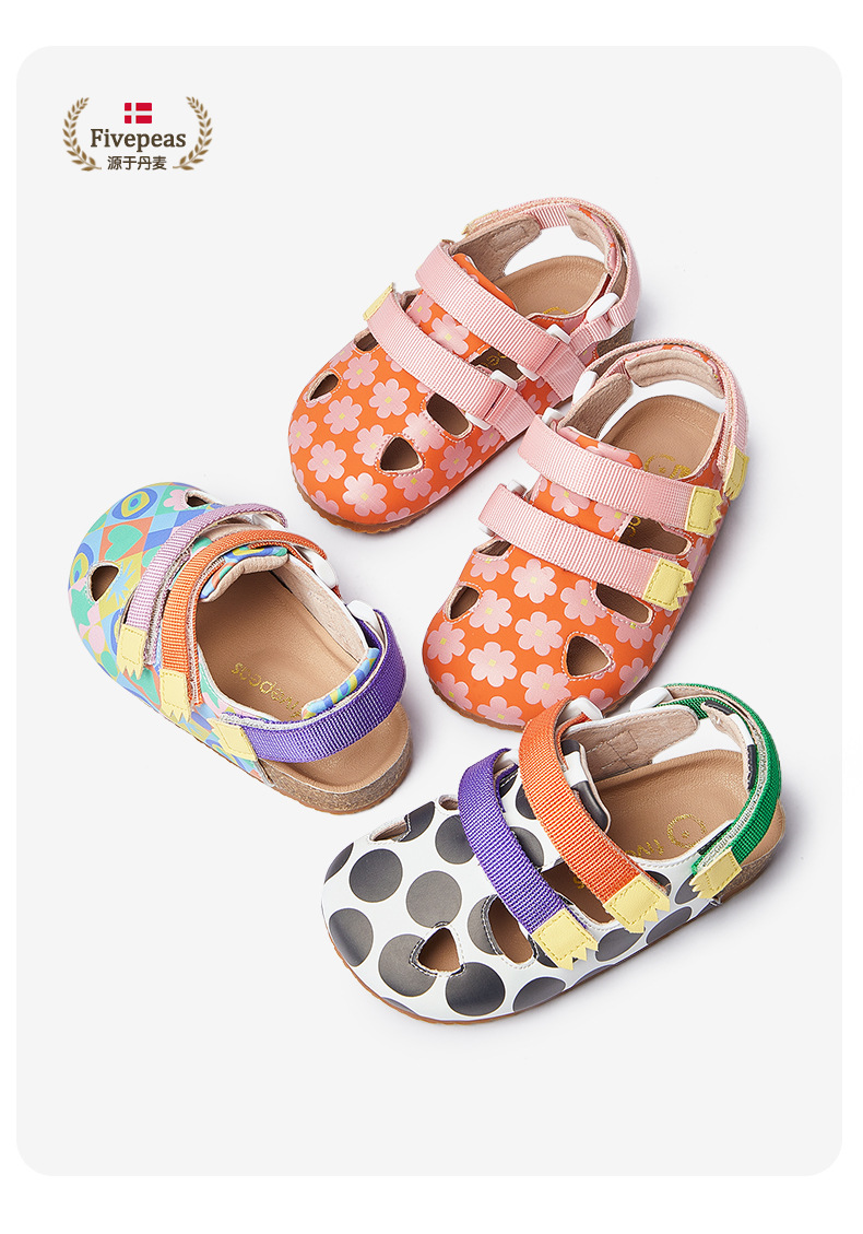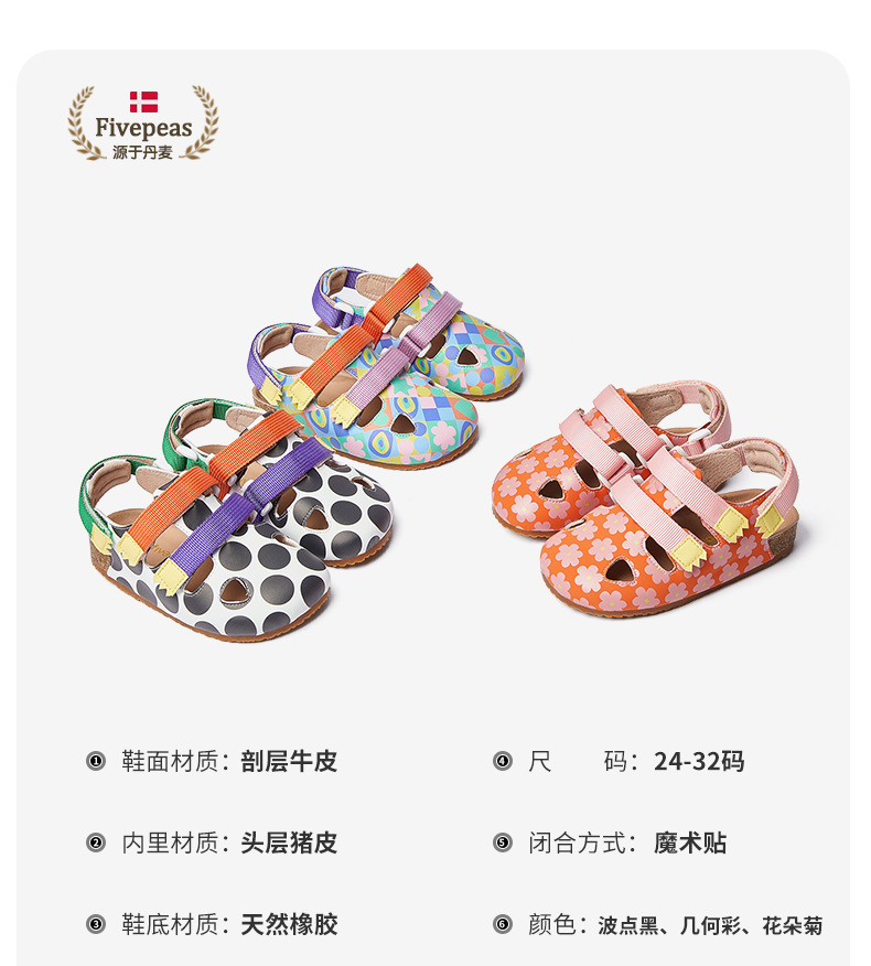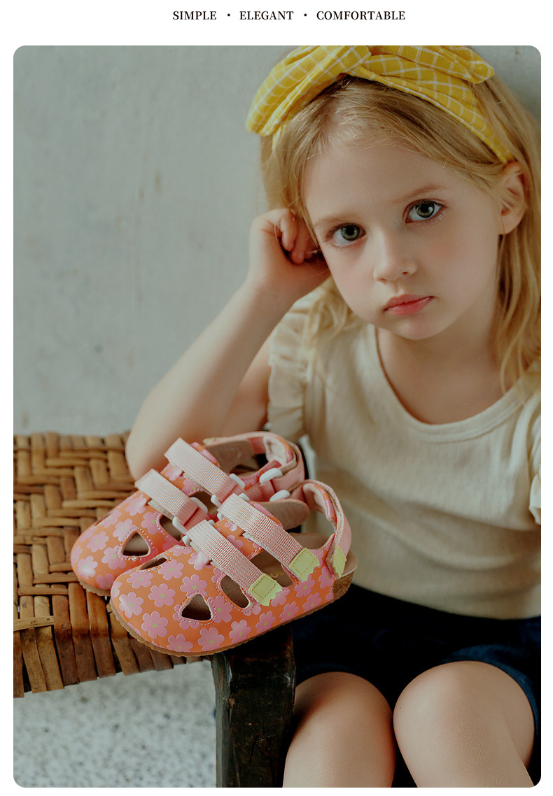 Five Beans 어린이 샌들 2024 여름 새로운 부드러운 바닥 소녀 캐주얼 신발 소년 아기 유치원 실내 신발스토어 가기