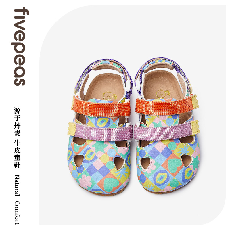 Five Beans 어린이 샌들 2024 여름 새로운 부드러운 바닥 소녀 캐주얼 신발 소년 아기 유치원 실내 신발