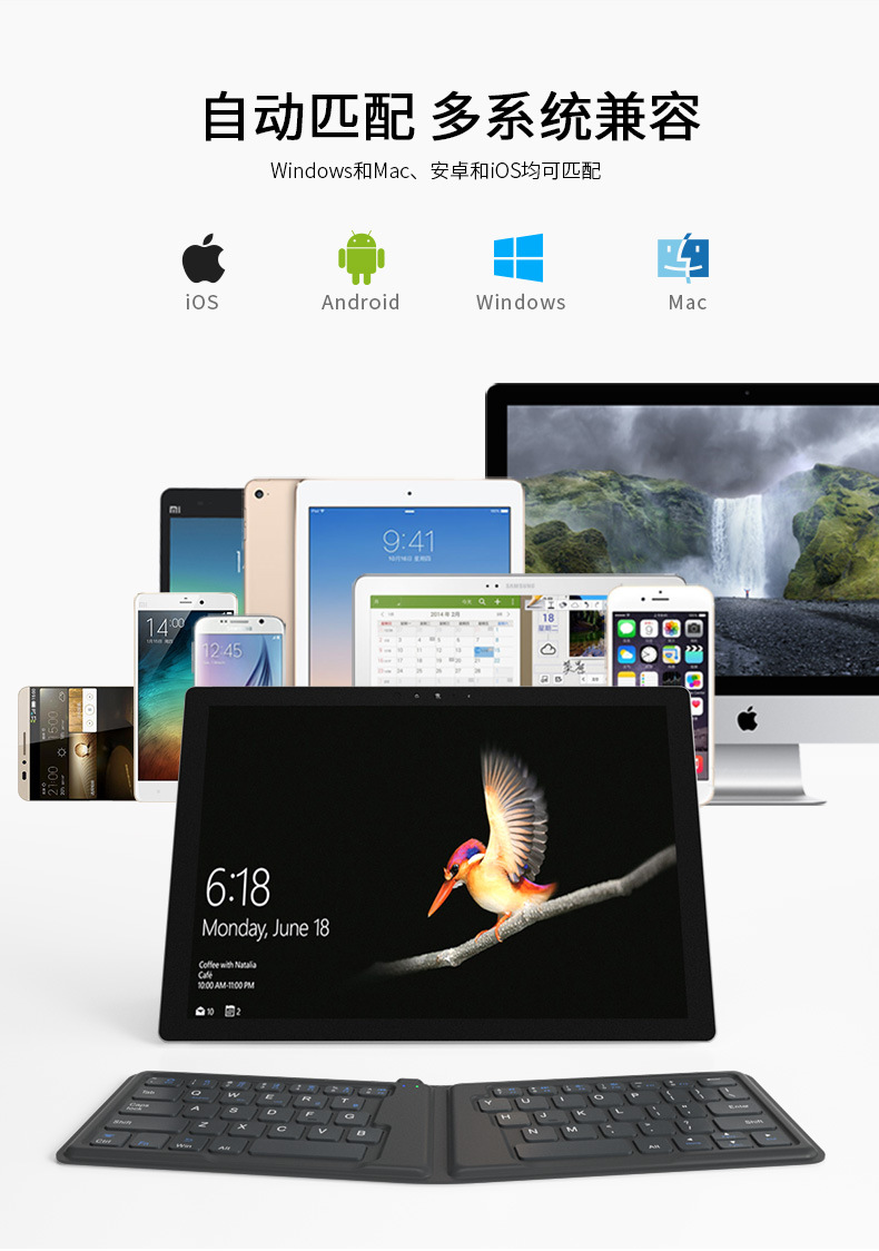 BOW Hangshi HB188S-Y 접이식 무선 블루투스 키보드 태블릿 전화 컴퓨터 범용 사무실 키보드스토어 가기