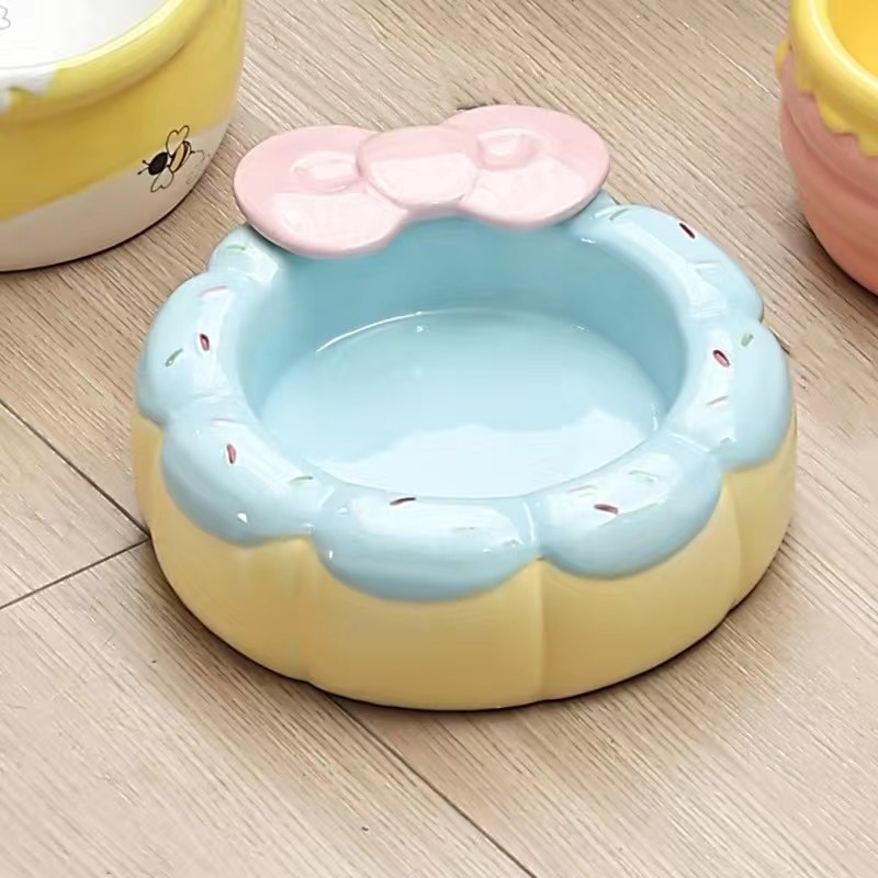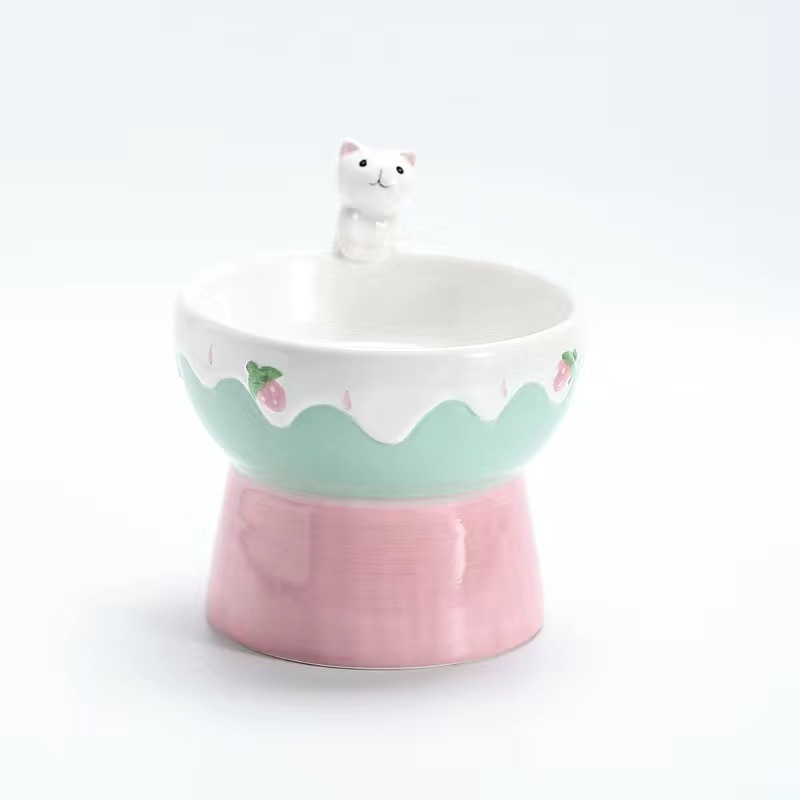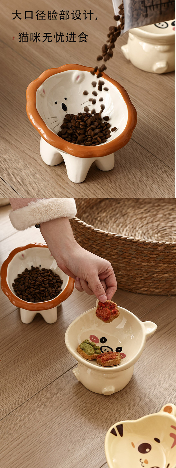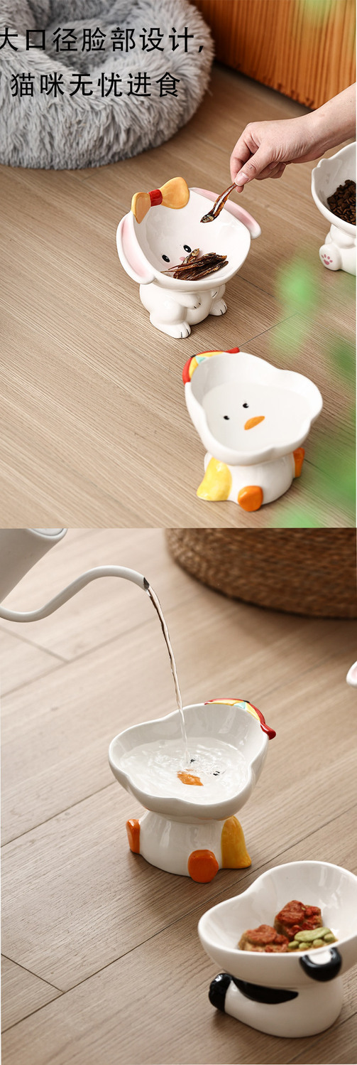 고양이 그릇을 뒤집어 놓은 고양이 귀여운 밥 그릇 개 식수 방지 세라믹 목 보호대 하이 풋 시리즈 만화 동물 식사 그릇