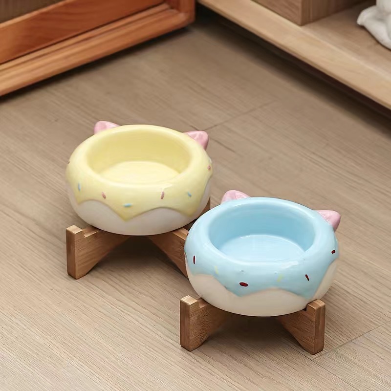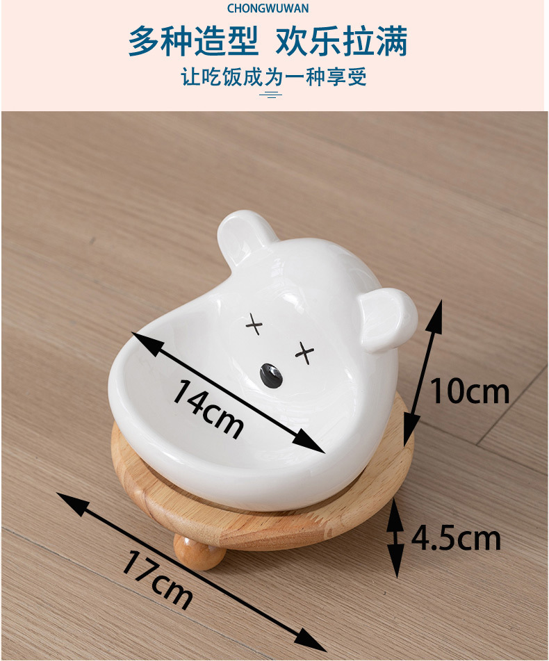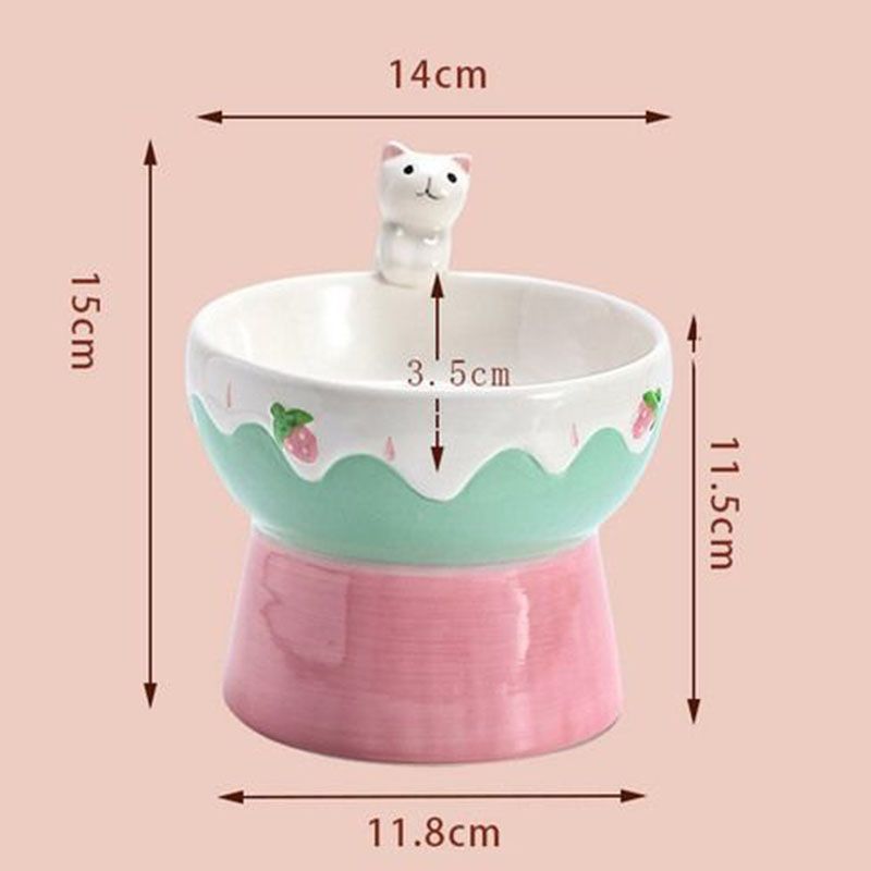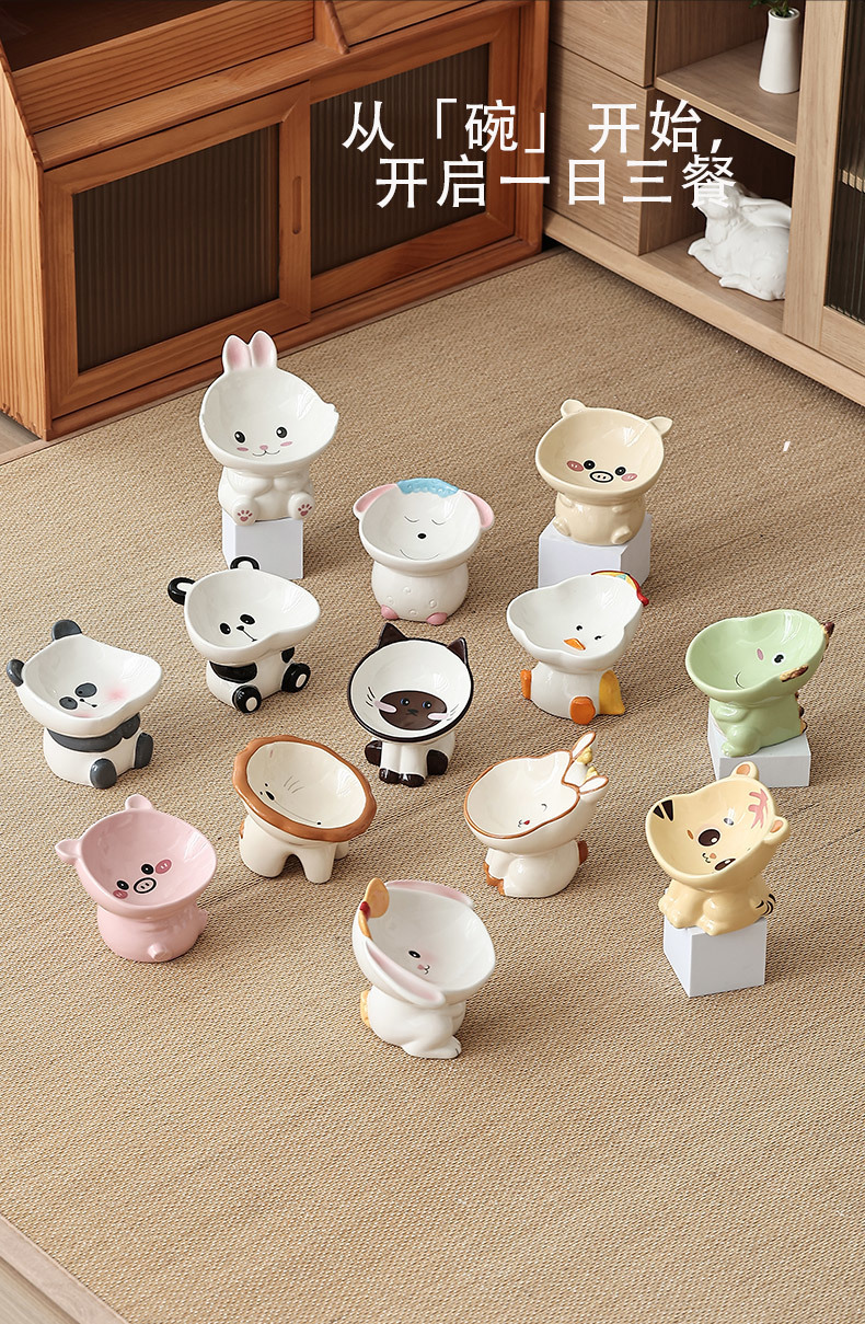 고양이 그릇을 뒤집어 놓은 고양이 귀여운 밥 그릇 개 식수 방지 세라믹 목 보호대 하이 풋 시리즈 만화 동물 식사 그릇스토어 가기