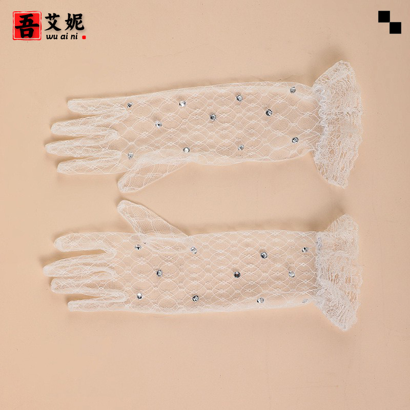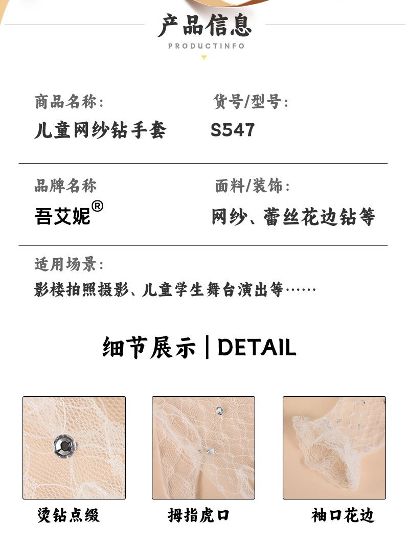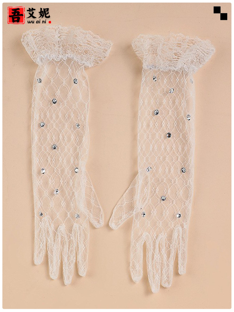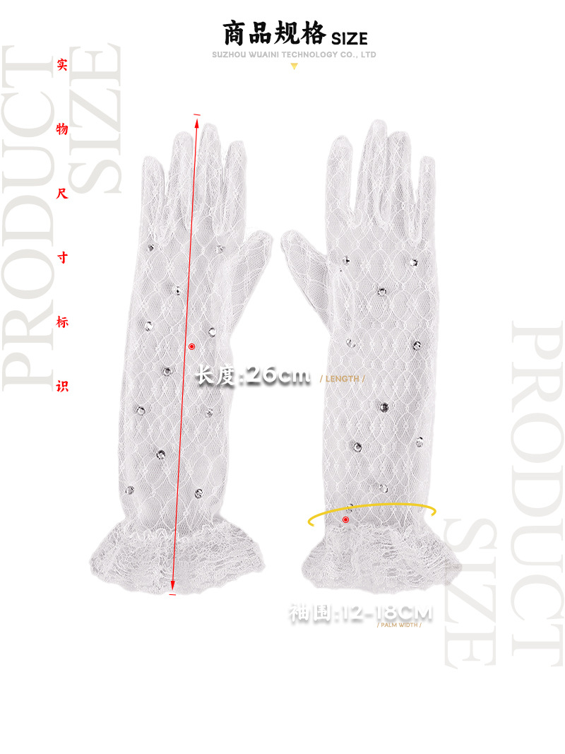 어린이 메쉬 장갑 긴 핫 다이아몬드 격자 무늬 원사 학생 유치원 공연 흰색 소녀 공주 생일 슬리브