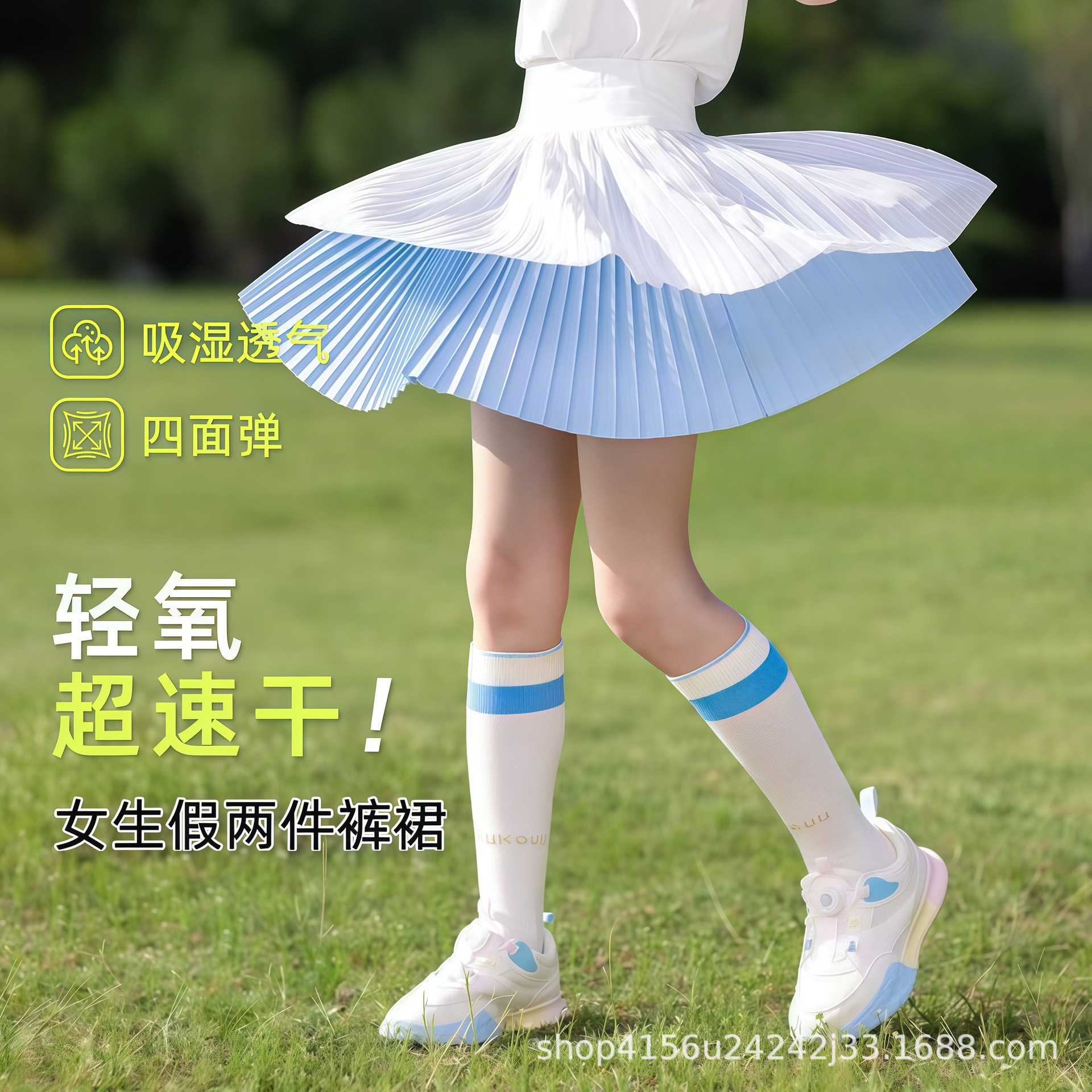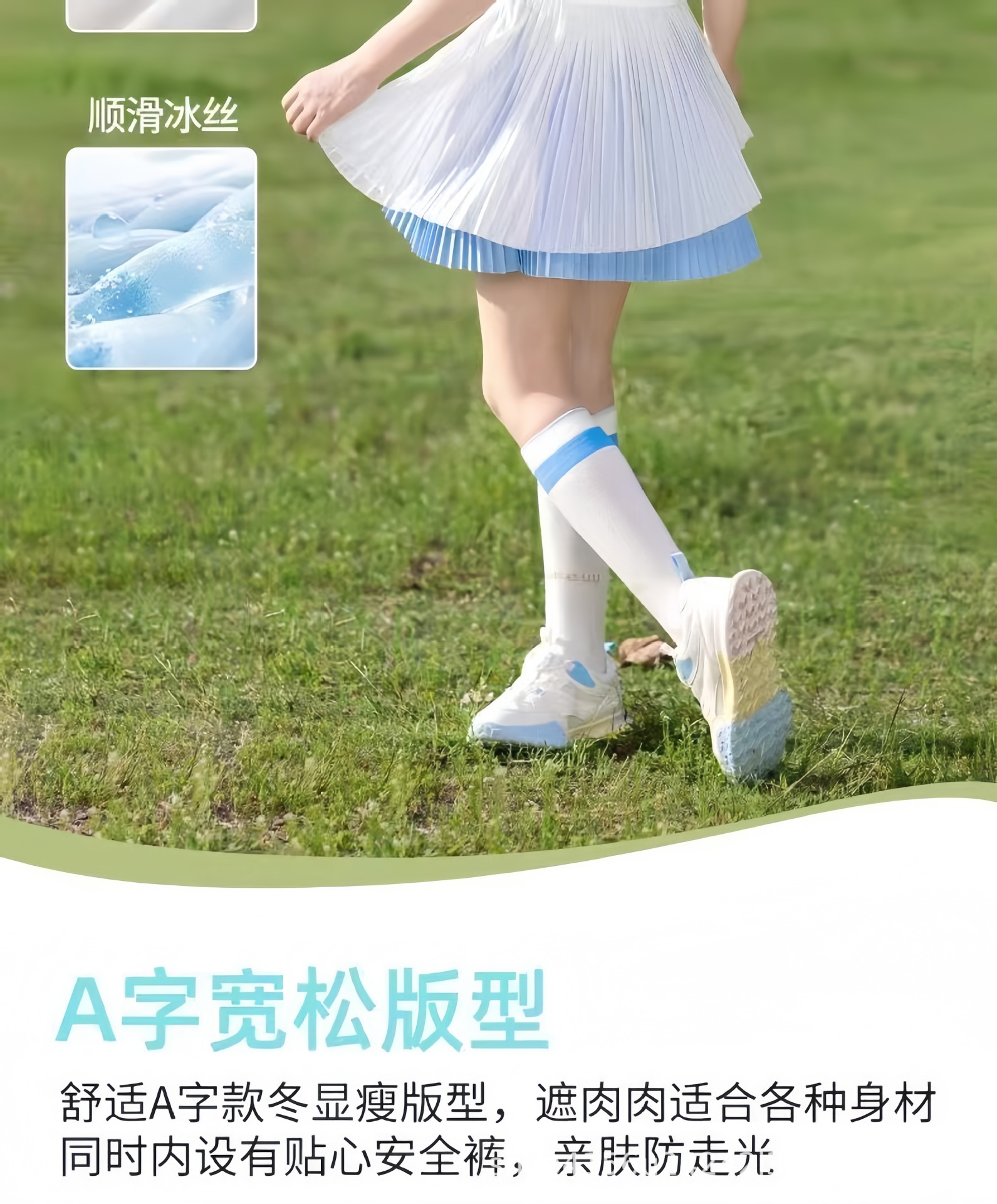 • 하늘색 플리츠 스커트