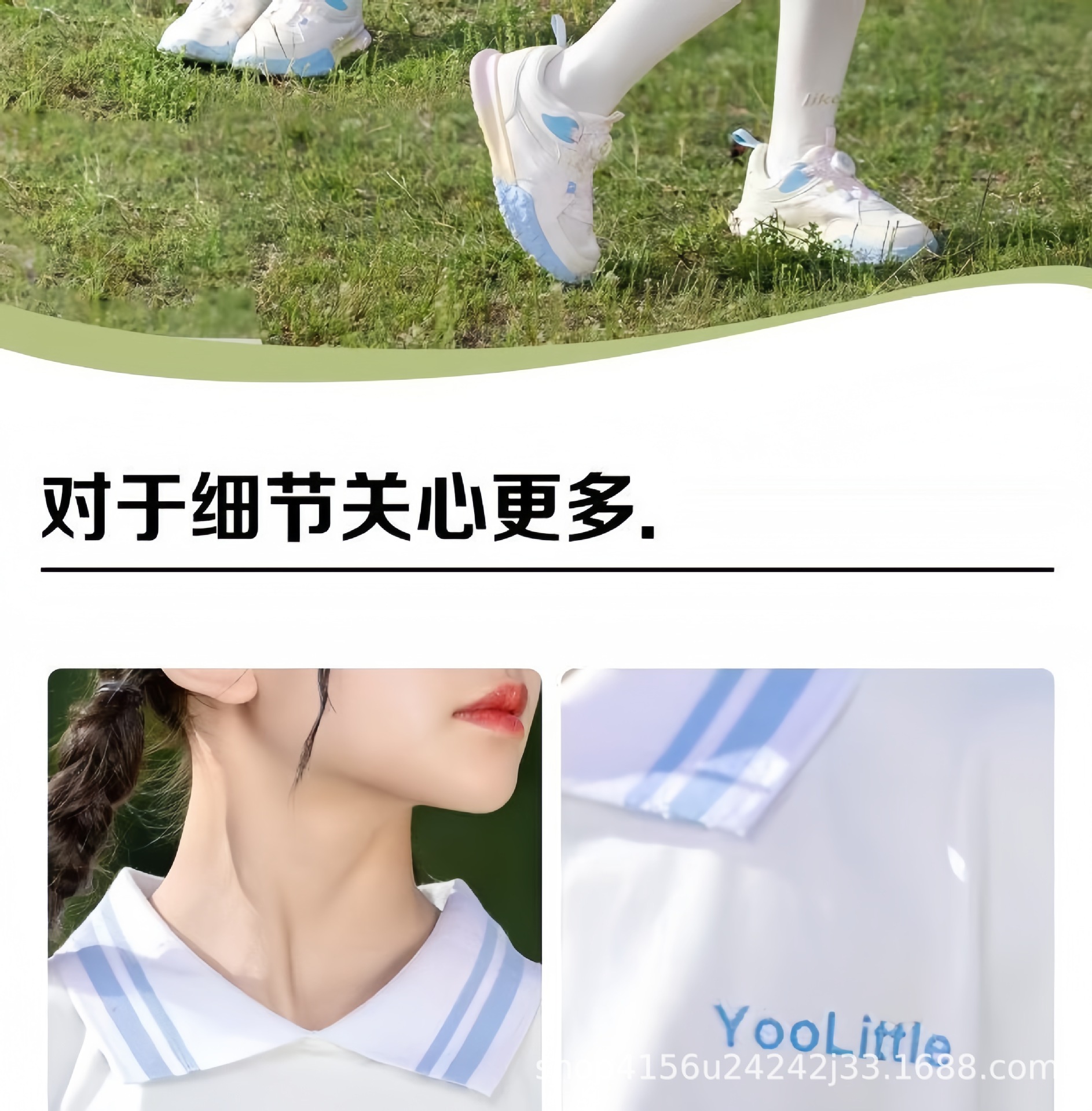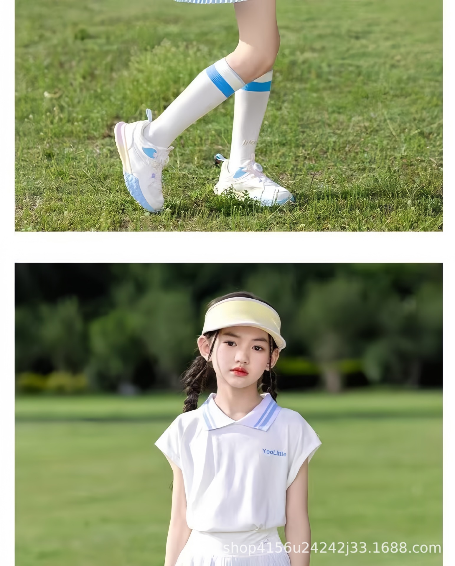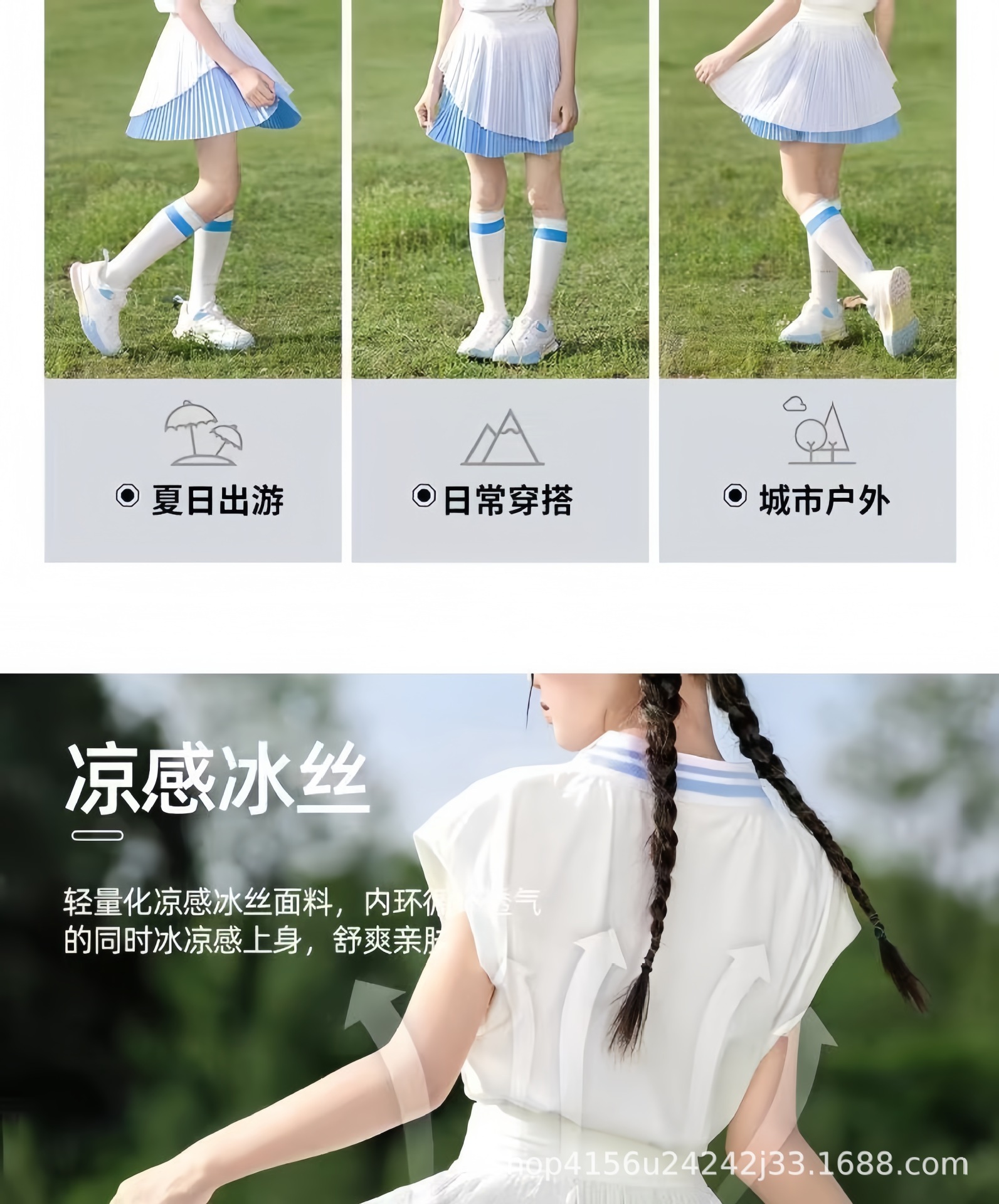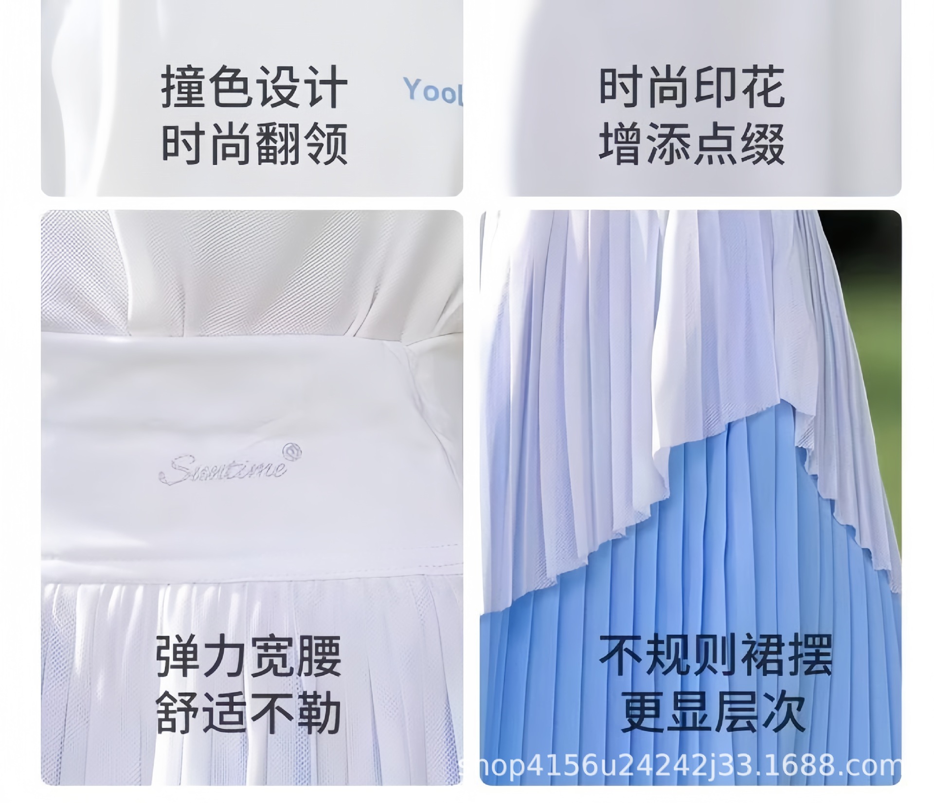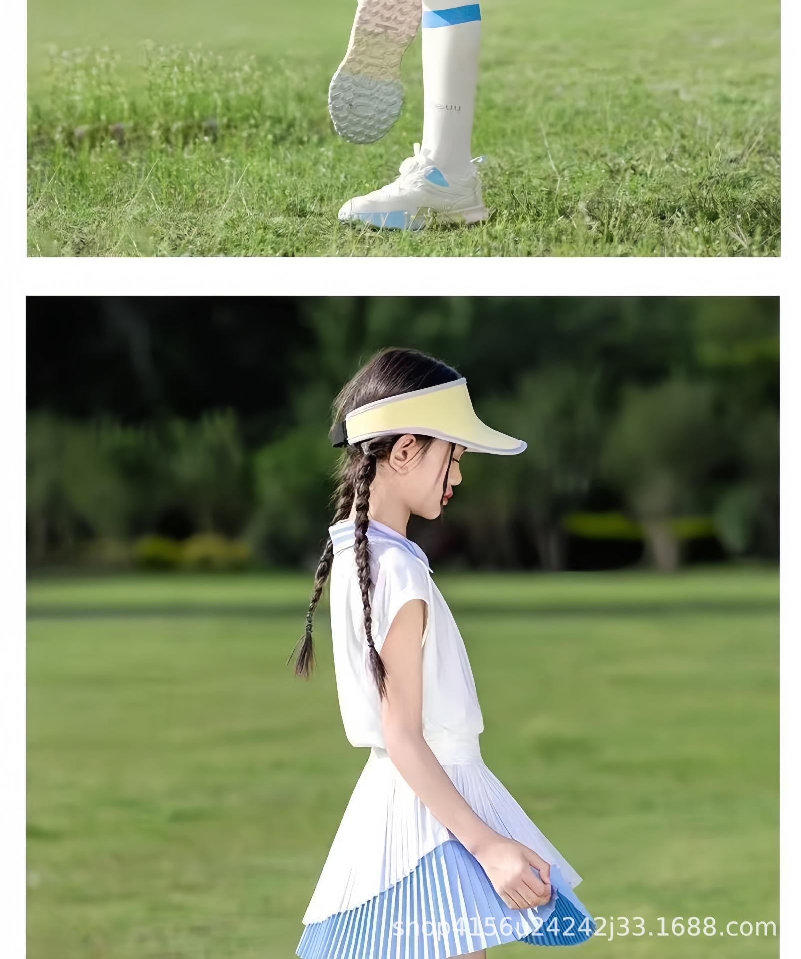 • 크레센트 컬러 폴로 셔츠 탑 + 스카이블루 플리츠 스커트