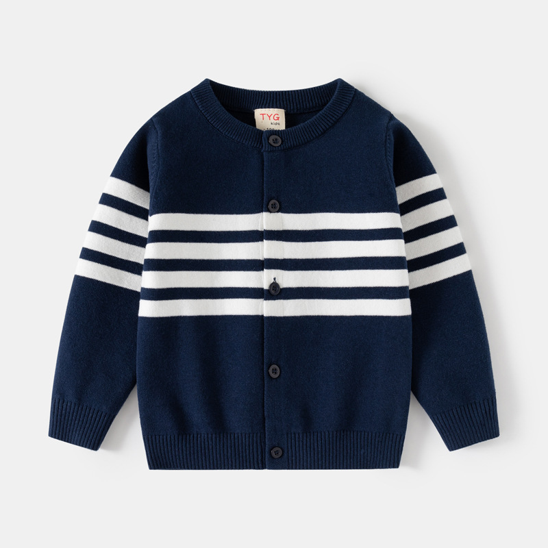 아카데미 스타일 아동 의류 소년 스트라이프 자카드 가슴 스웨터 25 가을, 겨울 새로운 어린이 단층 면 니트 가디건
