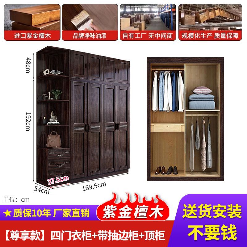보라색 금 백단 단단한 나무 옷장 홈 침실 새로운 중국 스타일 현대 간단한 스토리지 캐비닛 대용량 옷장스토어 가기