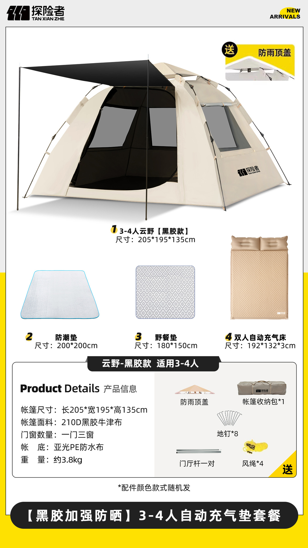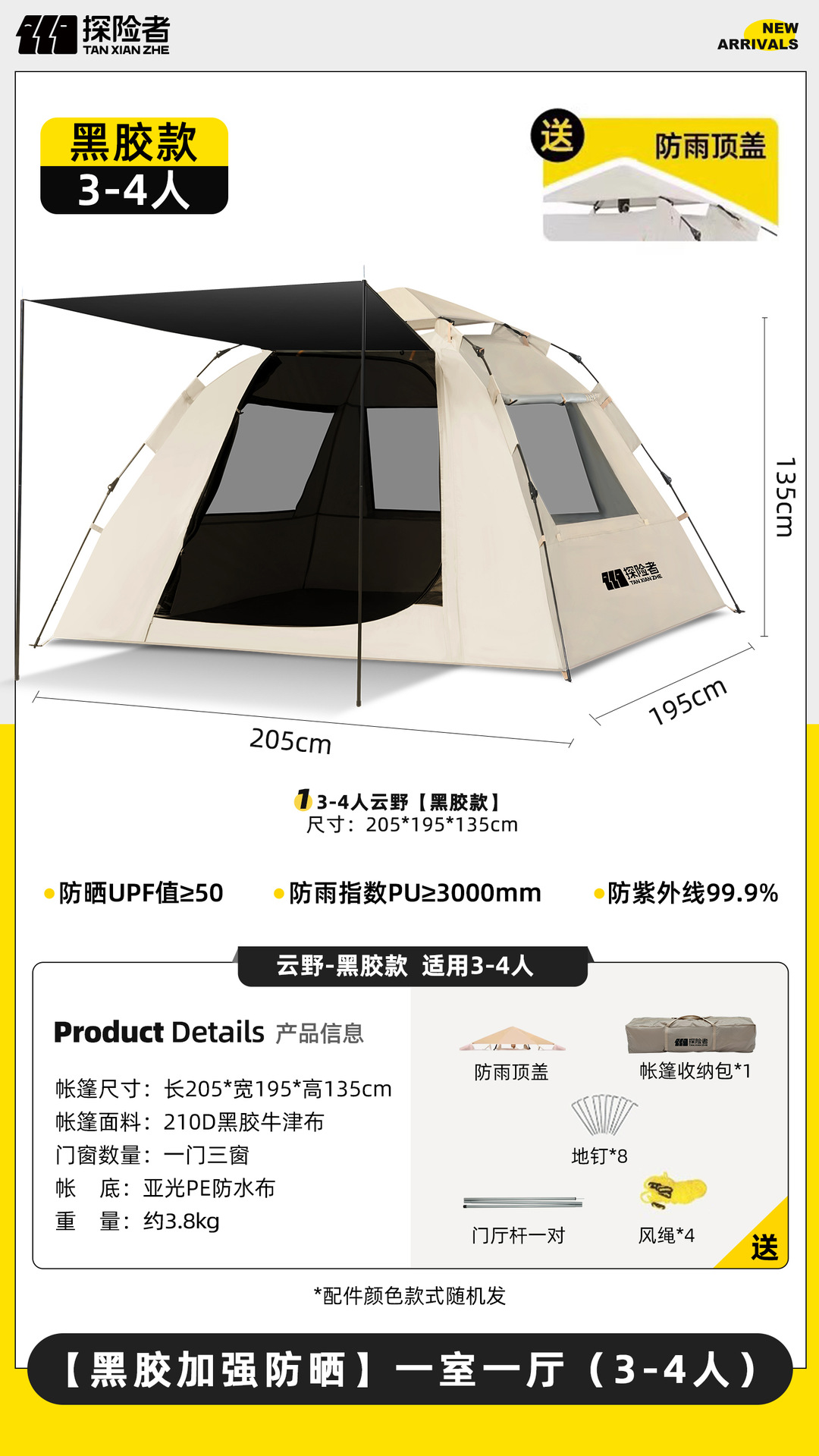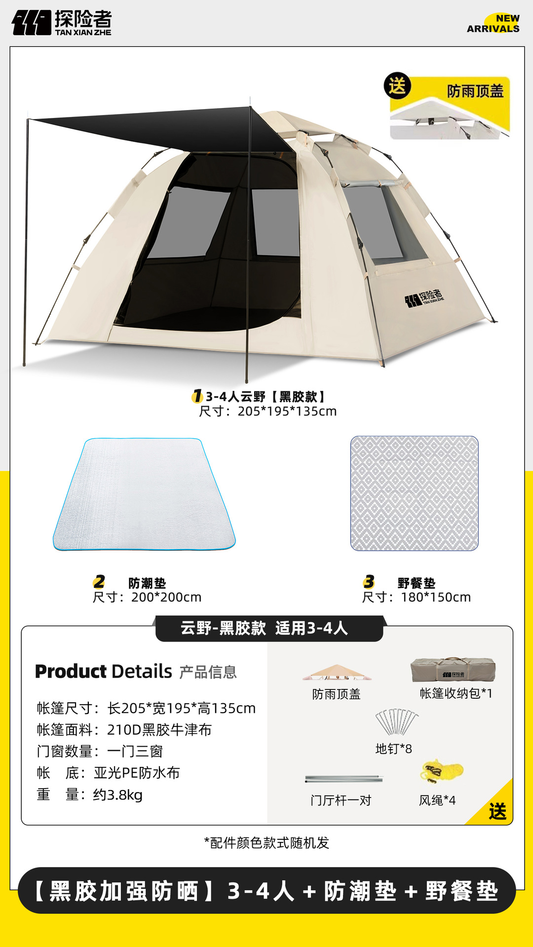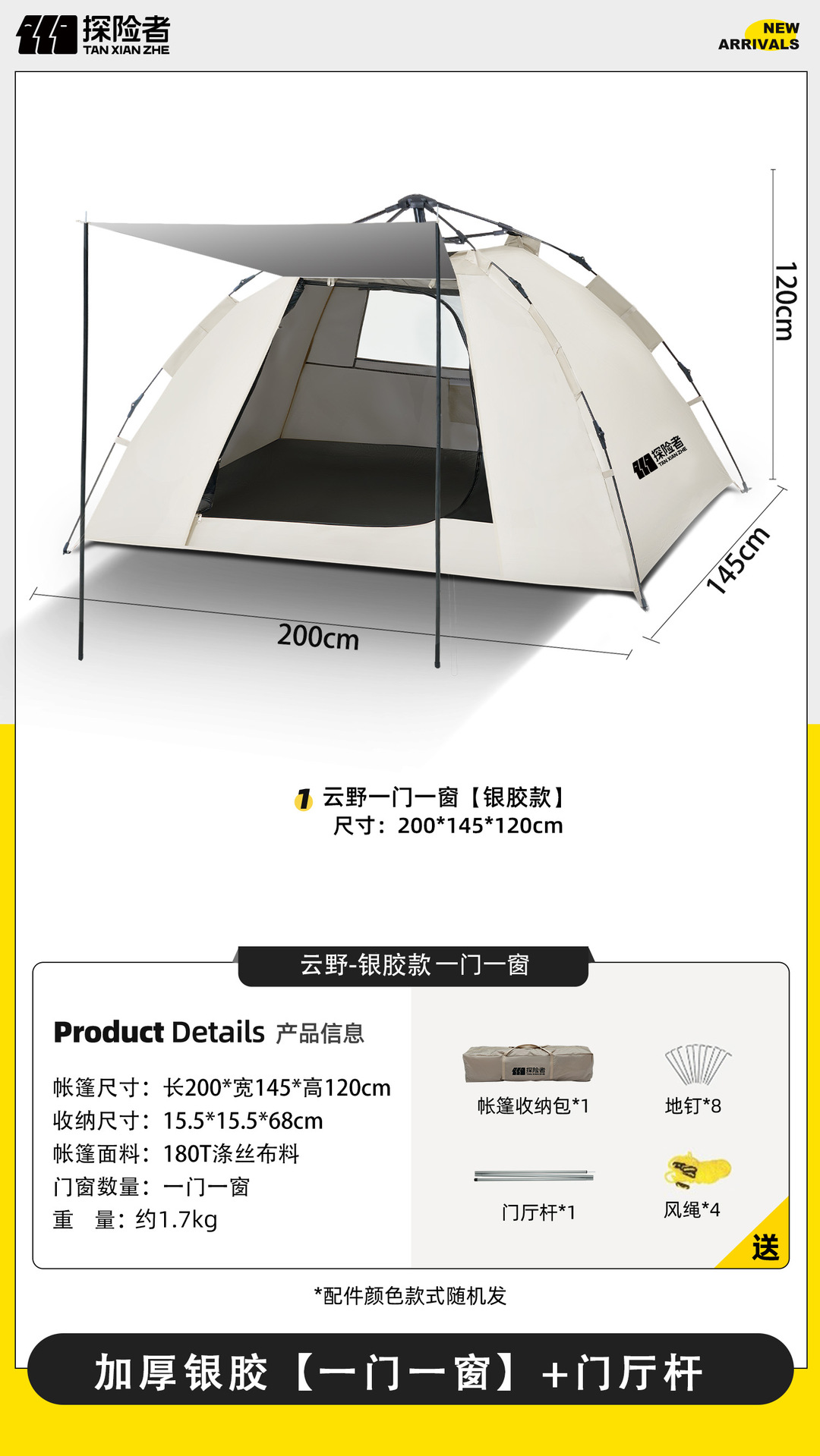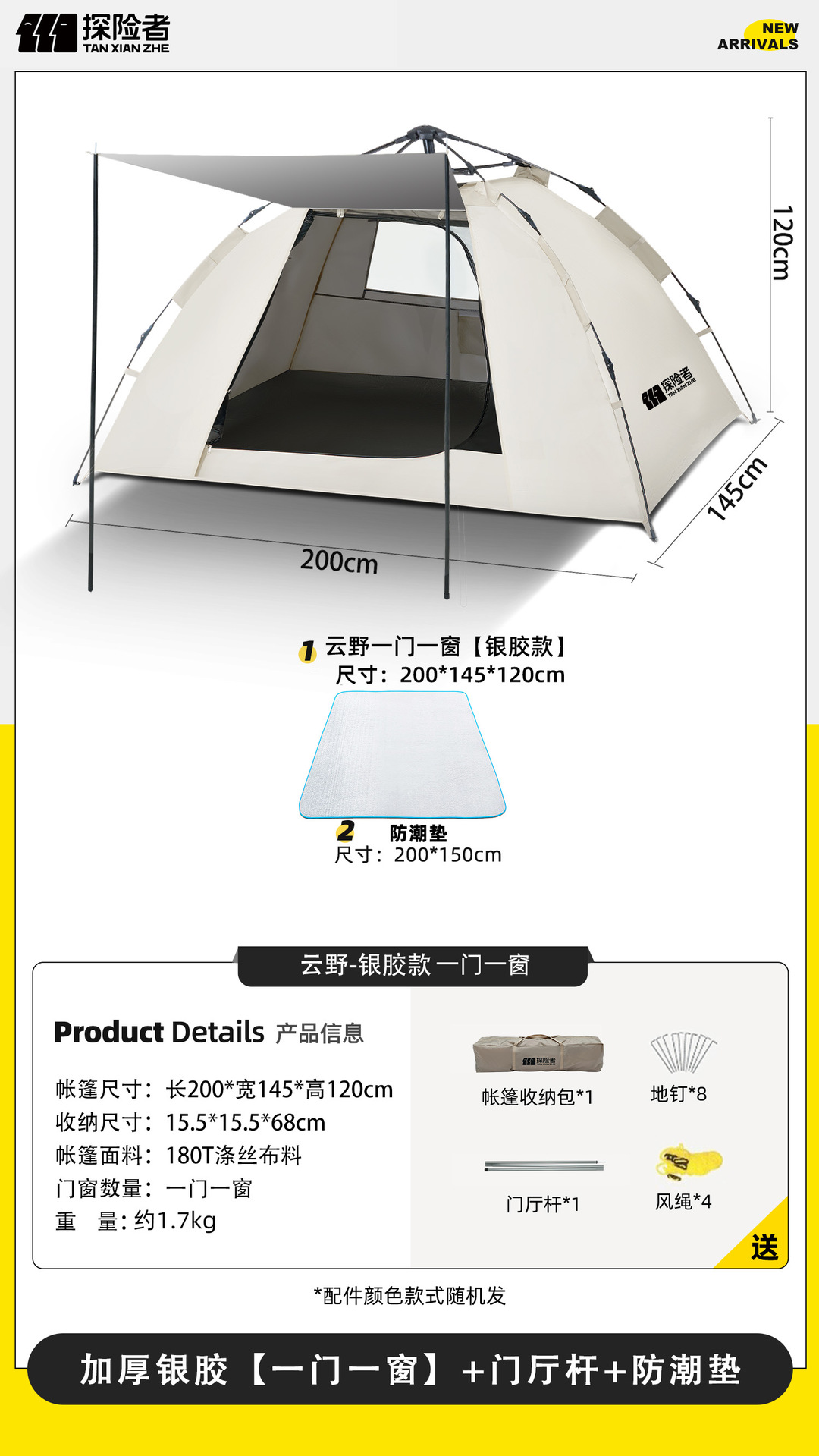 탐험가 텐트 야외 캠핑 밤새도록 비로부터 보호 접이식 휴대용 캠핑 장비 두꺼운 비닐 자동 풀 세트스토어 가기