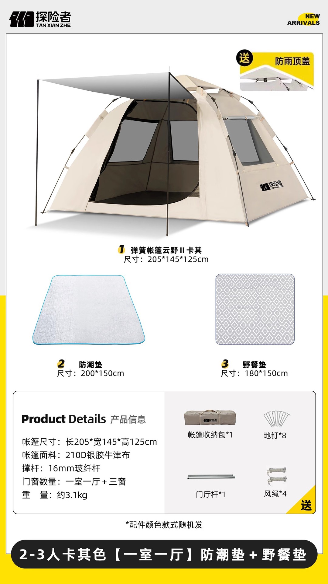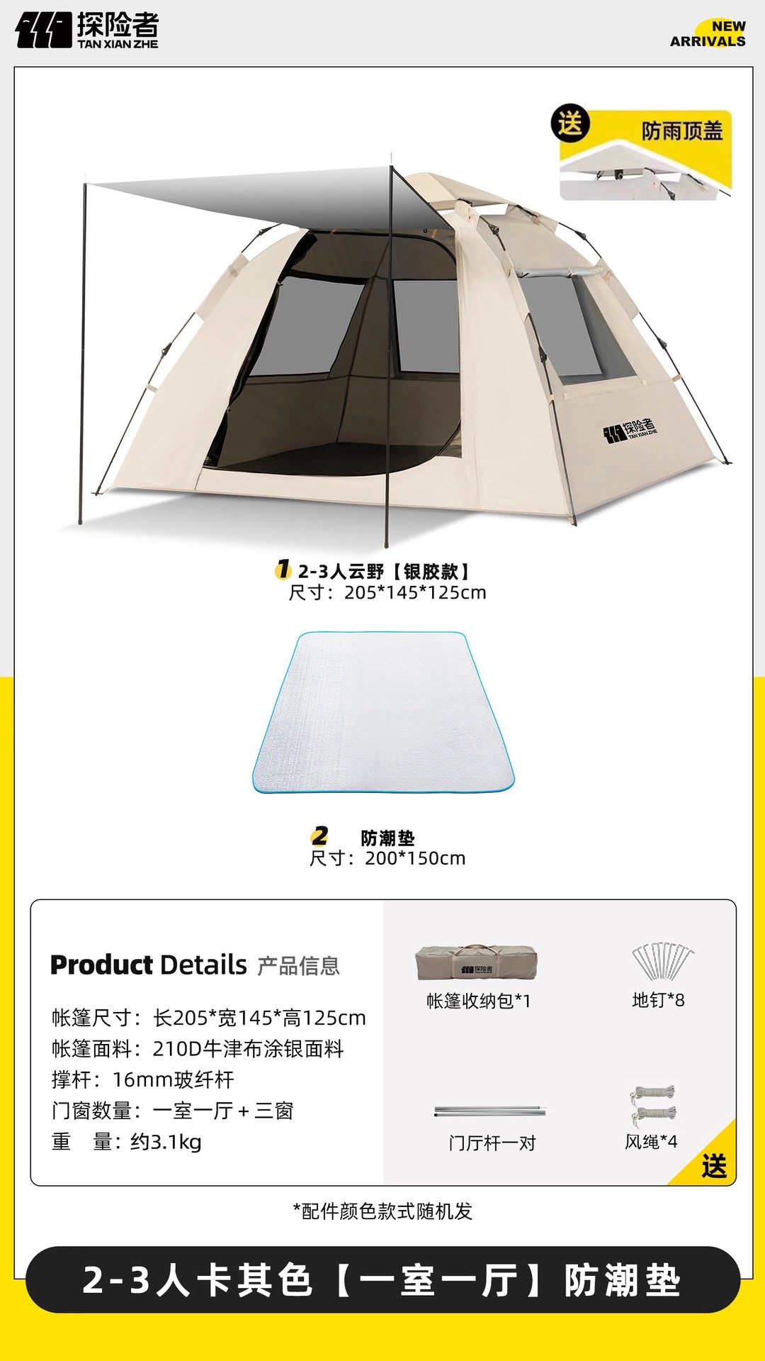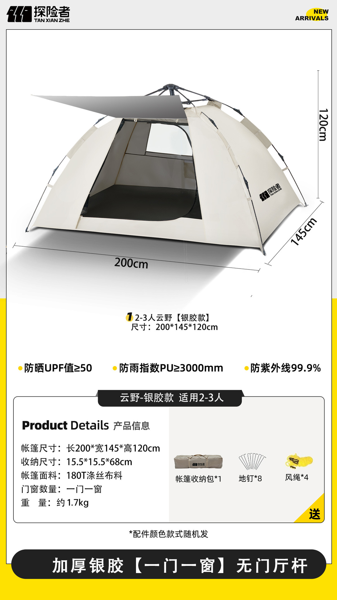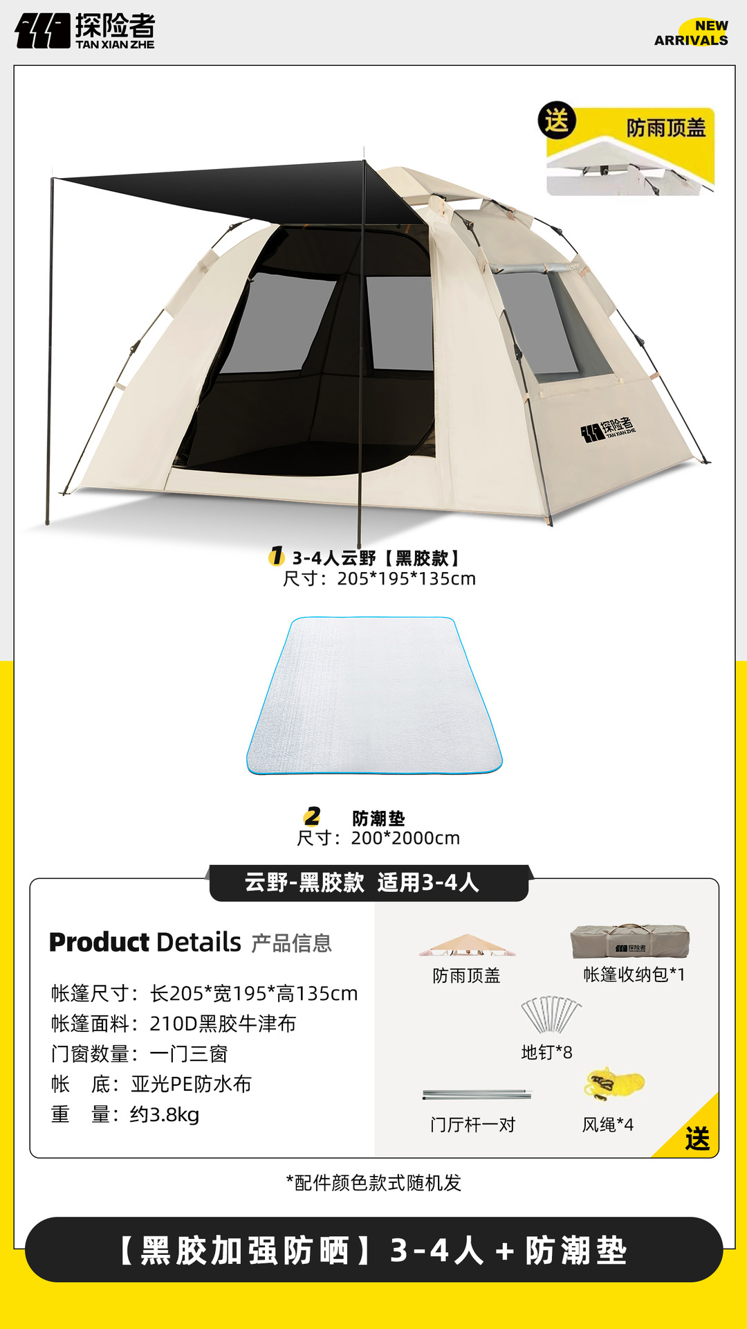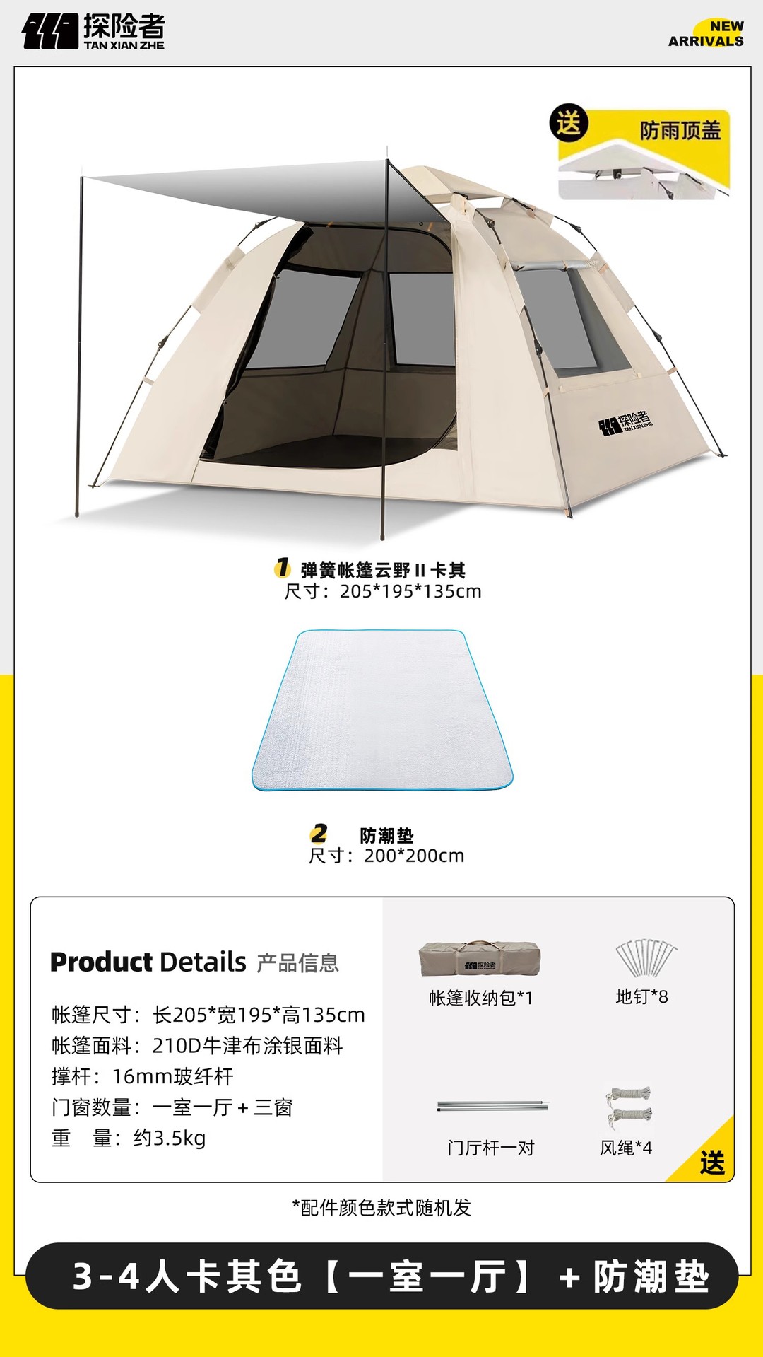 탐험가 텐트 야외 캠핑 밤새도록 비로부터 보호 접이식 휴대용 캠핑 장비 두꺼운 비닐 자동 풀 세트스토어 가기