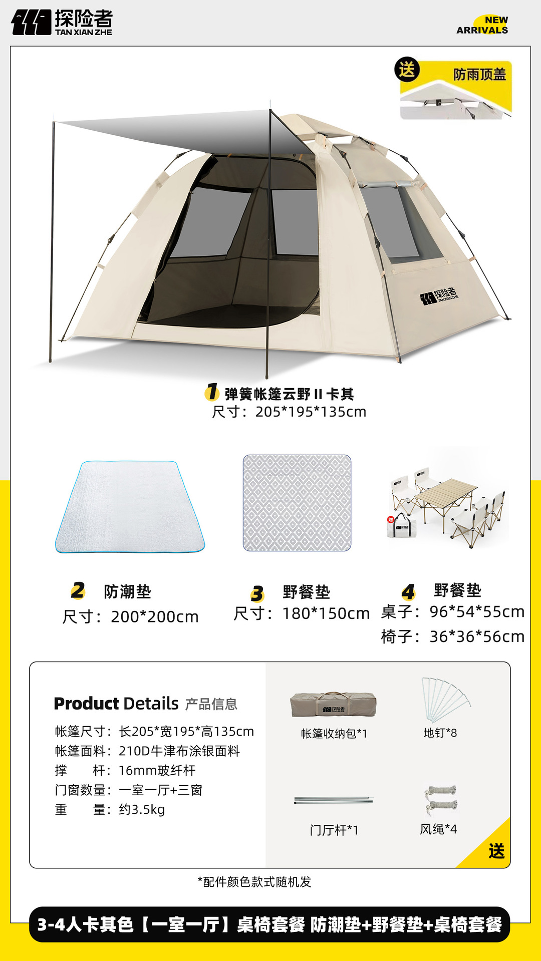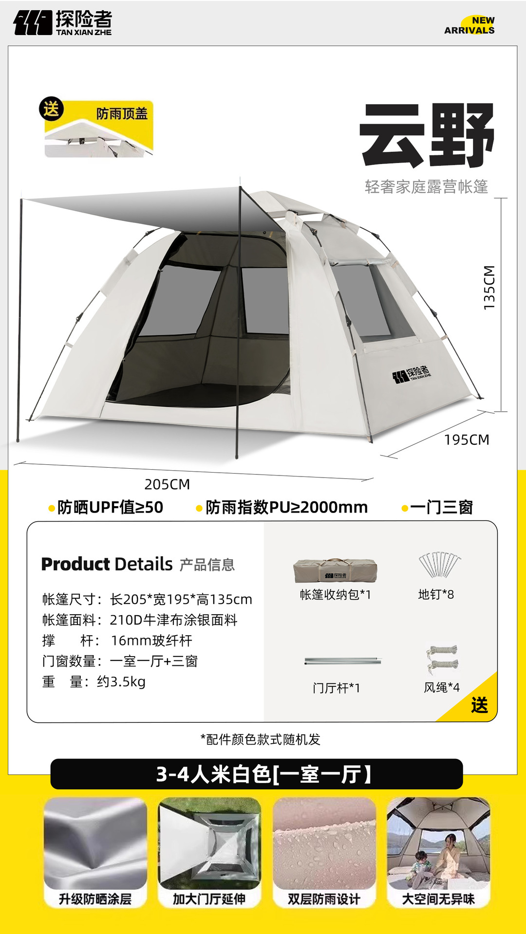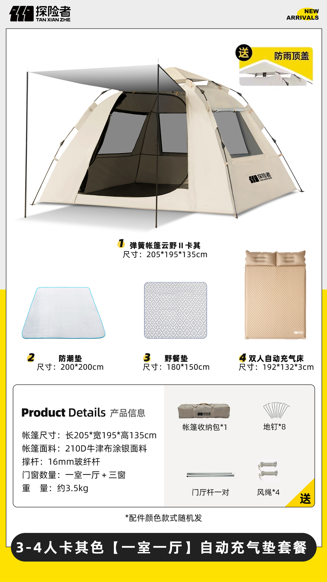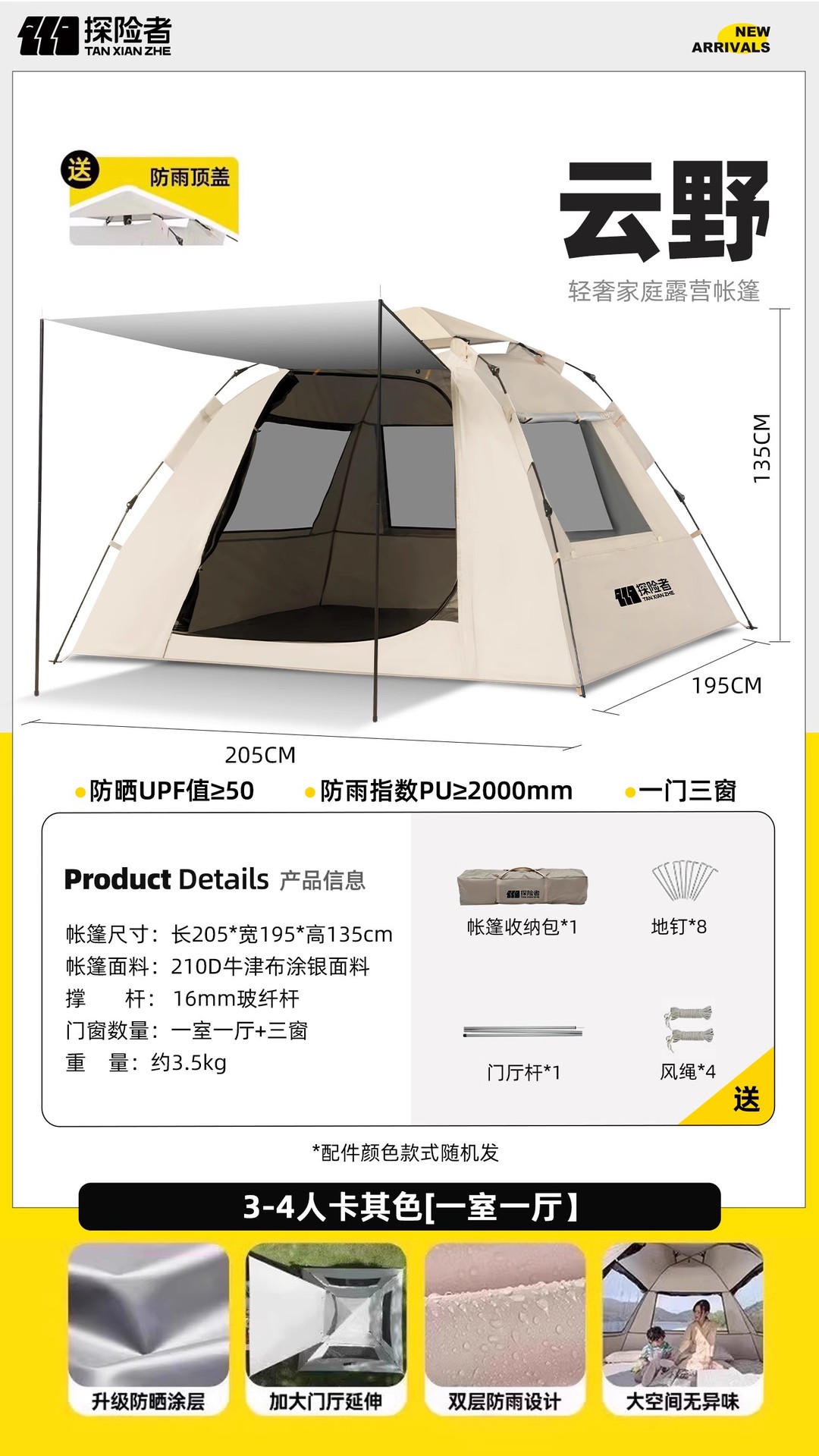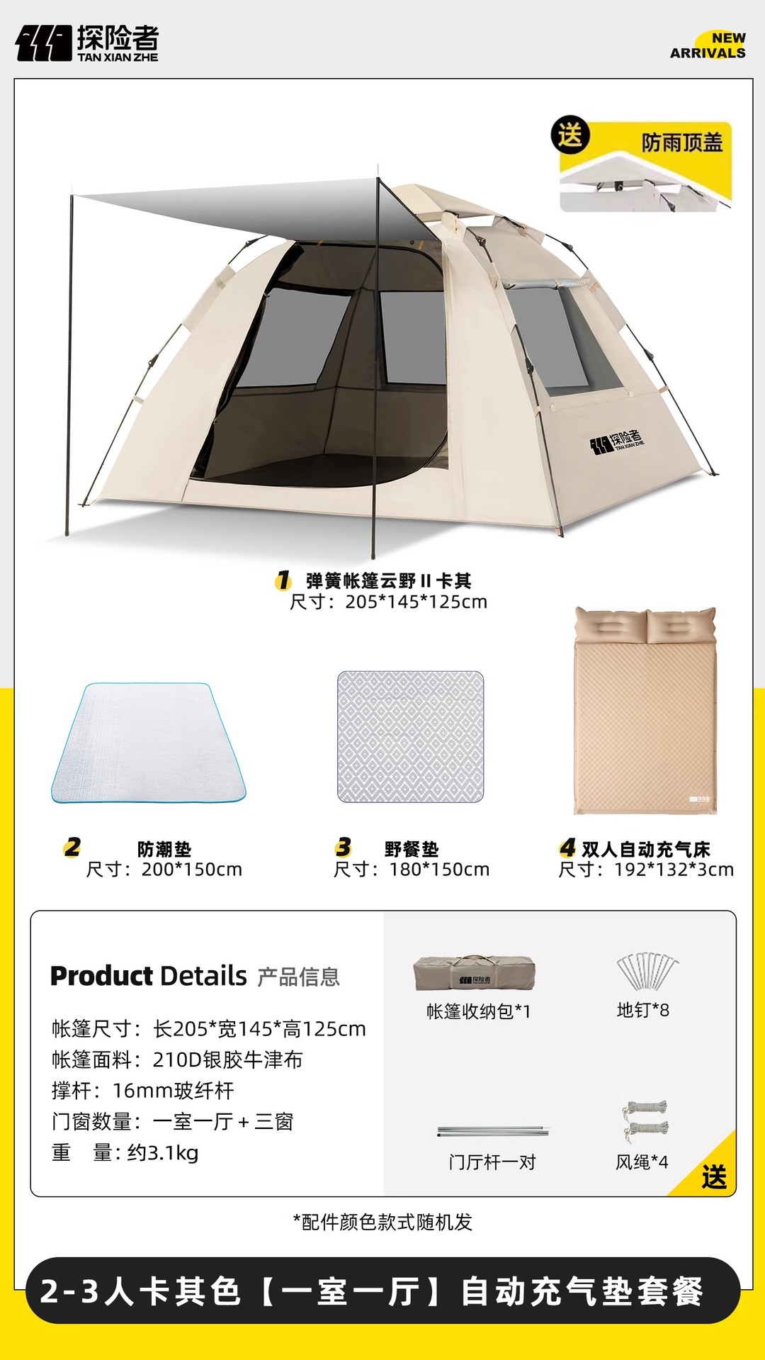 탐험가 텐트 야외 캠핑 밤새도록 비로부터 보호 접이식 휴대용 캠핑 장비 두꺼운 비닐 자동 풀 세트스토어 가기