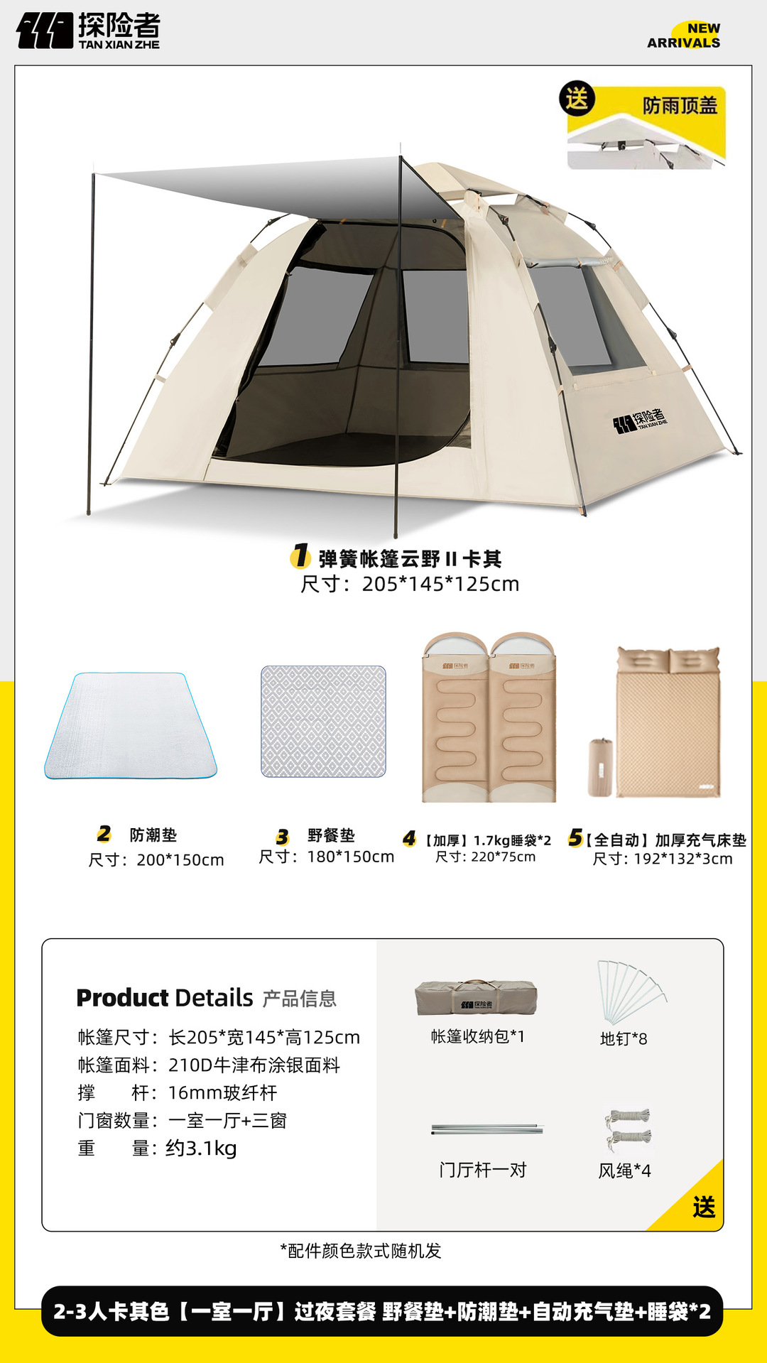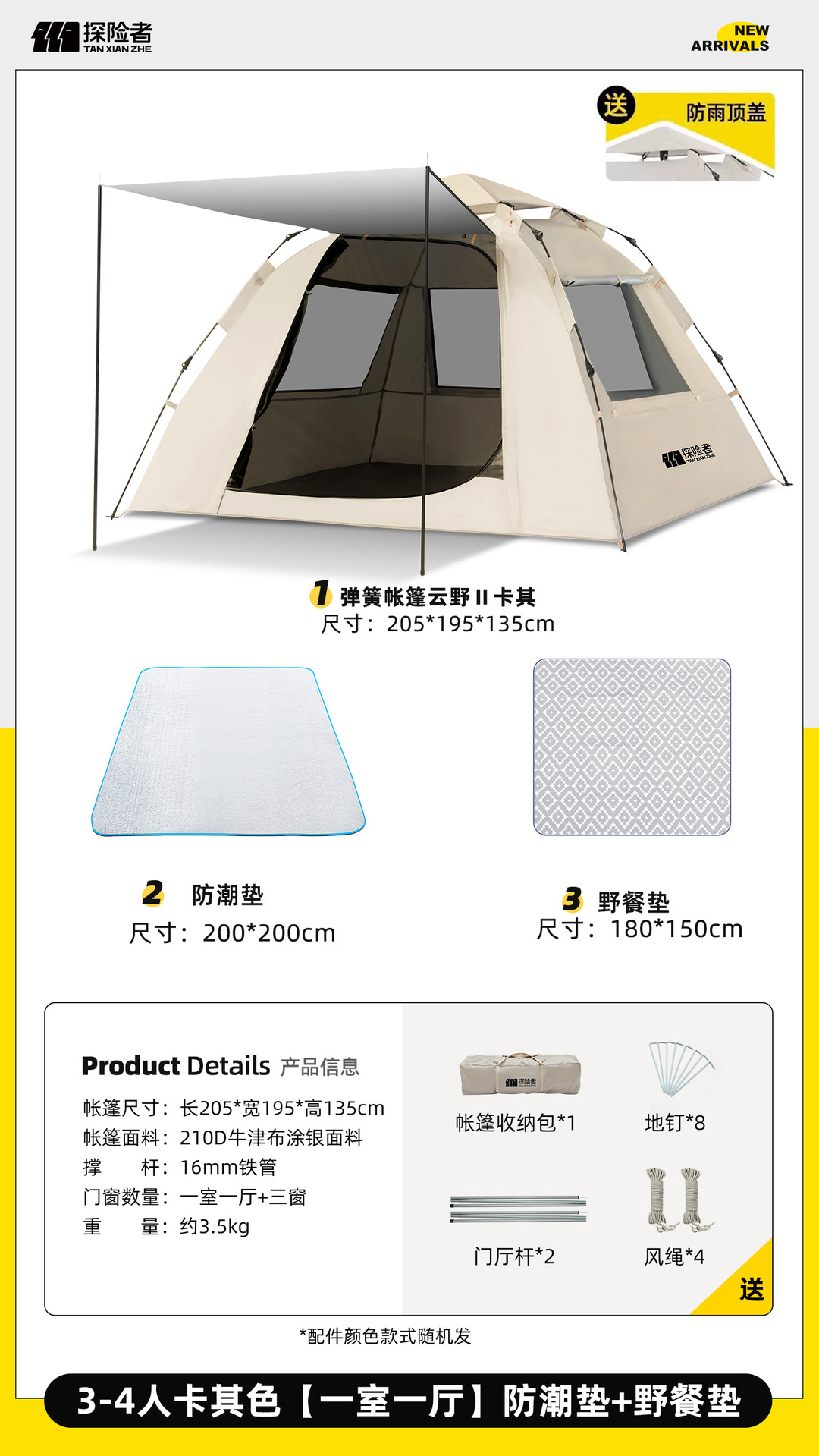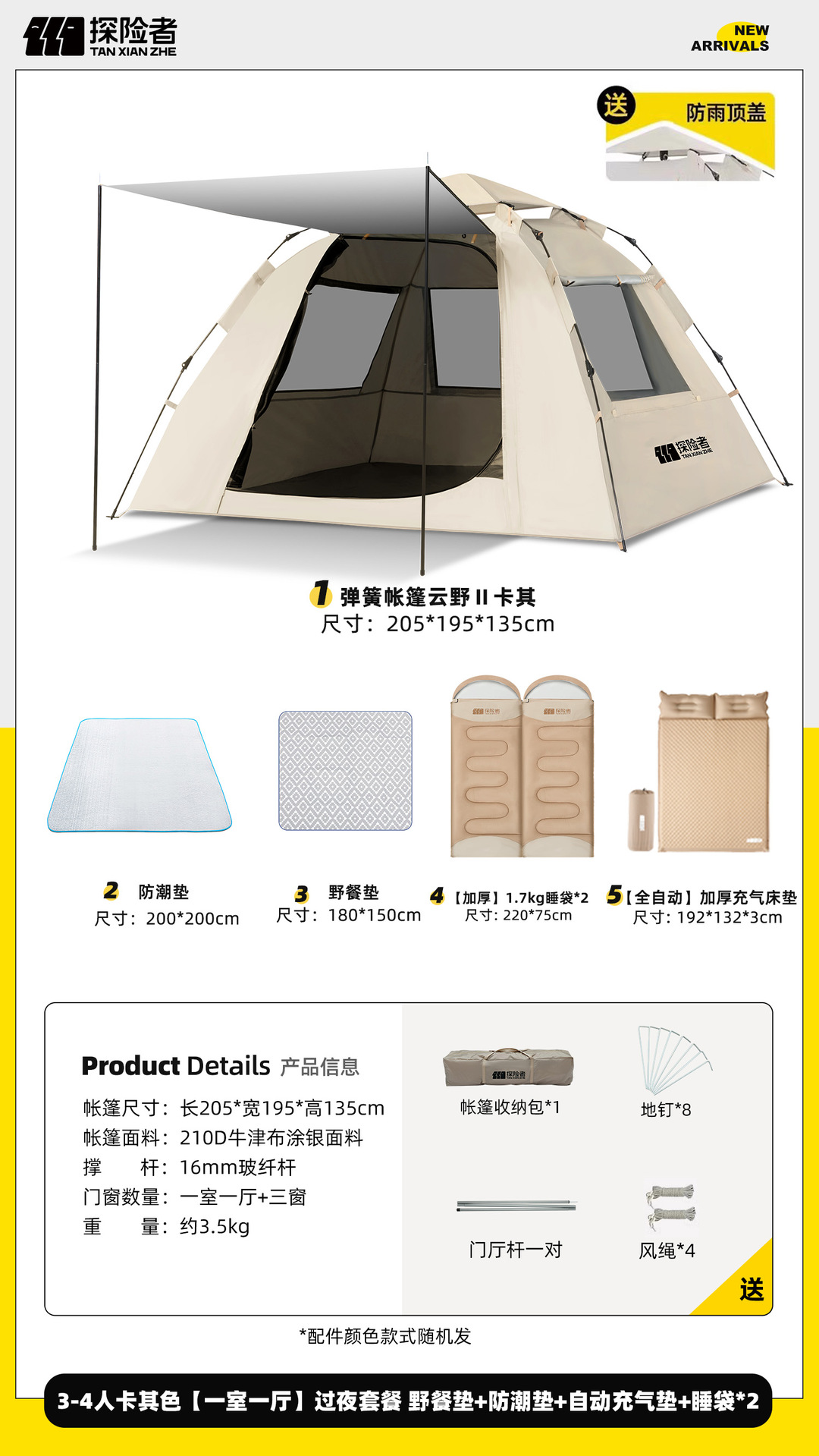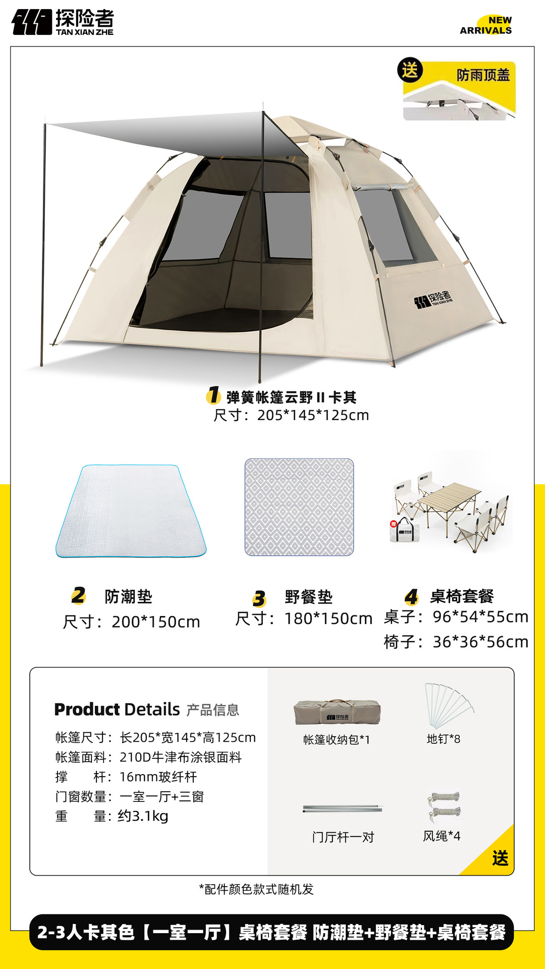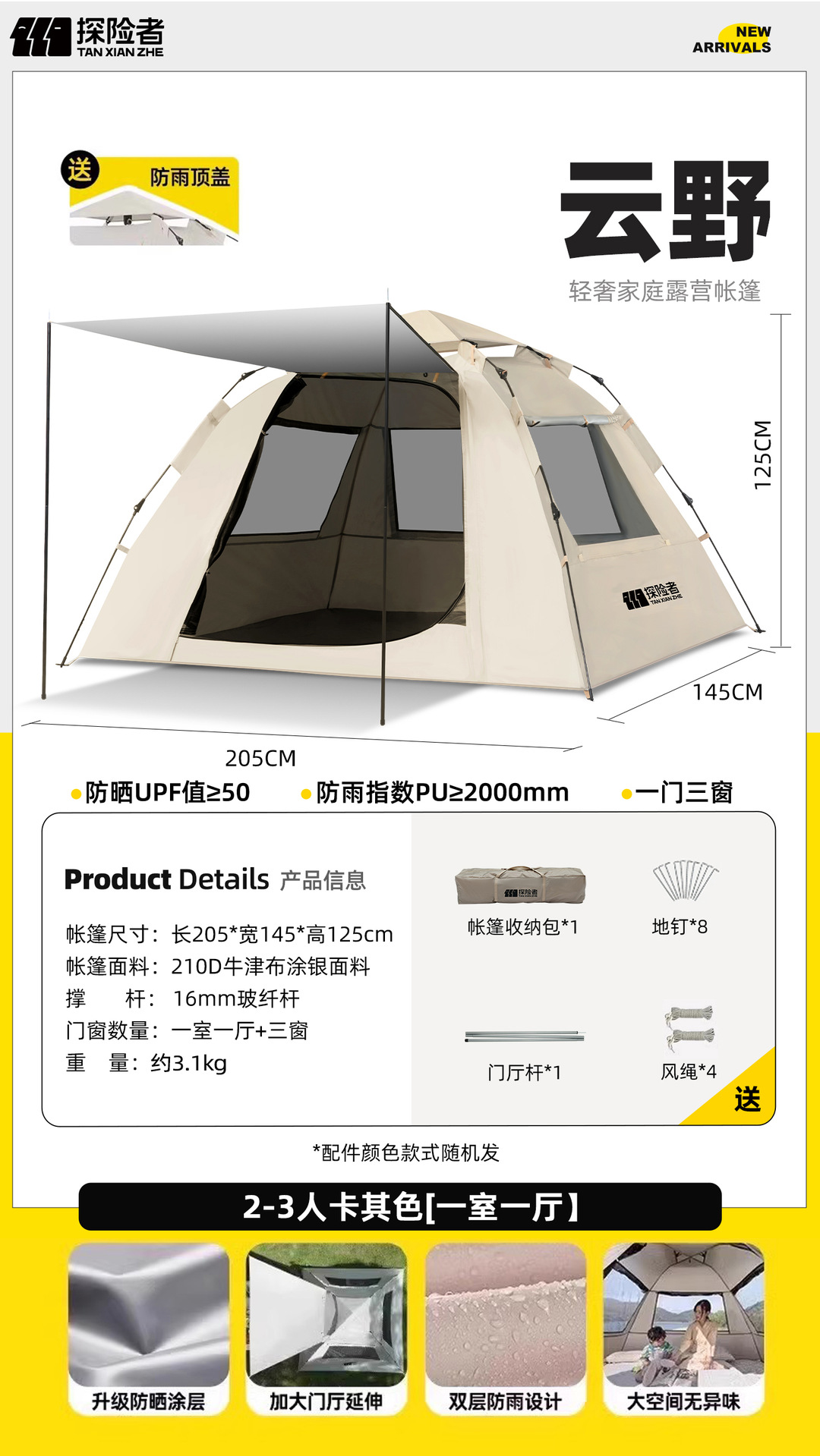 탐험가 텐트 야외 캠핑 밤새도록 비로부터 보호 접이식 휴대용 캠핑 장비 두꺼운 비닐 자동 풀 세트스토어 가기