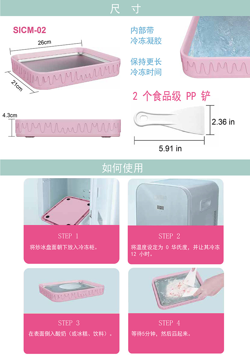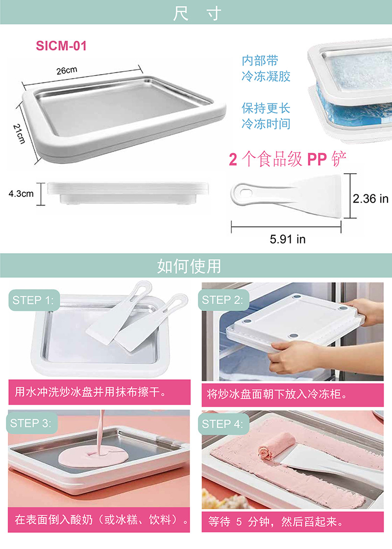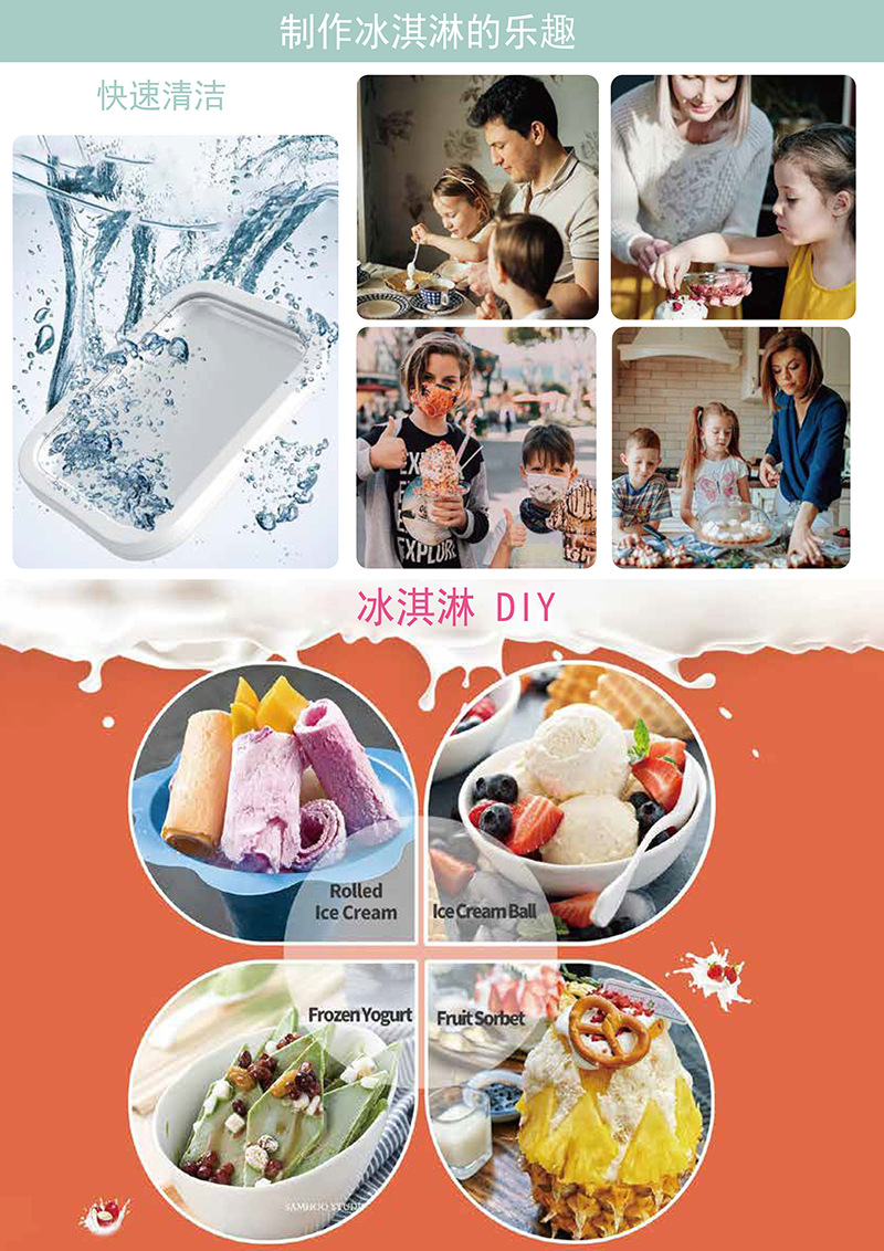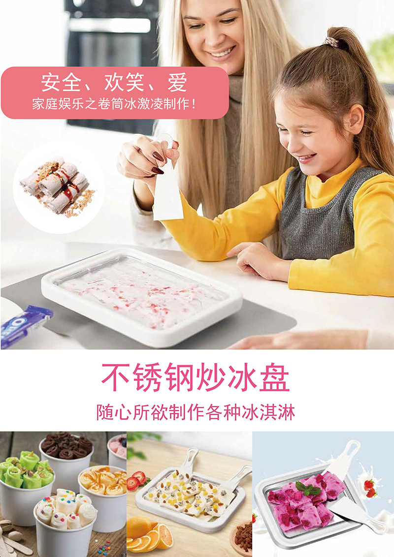 新款儿童迷你冰淇淋机家用小型DIY水果炒冰盘304免插电炒酸奶机