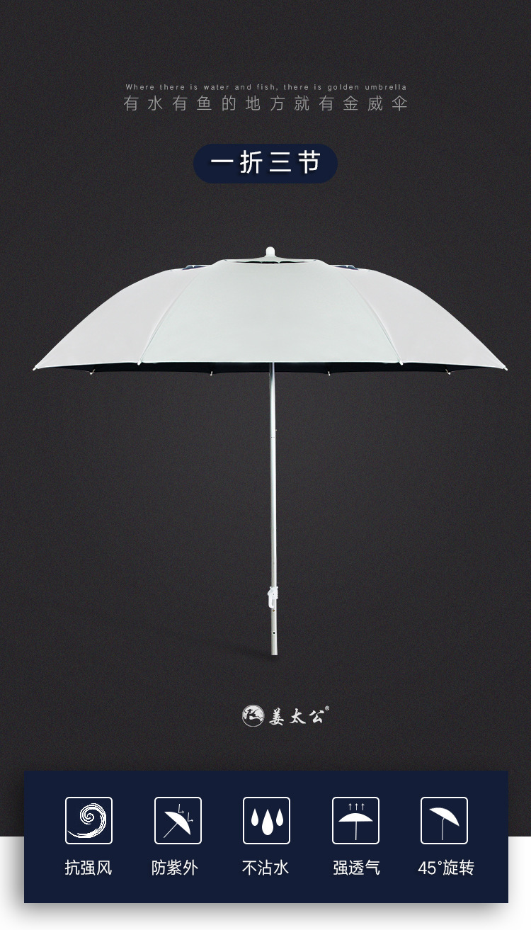 Jiang Taigong 낚시 우산 2.3m 접이식 짧은 우산 태양 보호 우산 대형 낚시 우산 낚시 데크 낚시 우산
