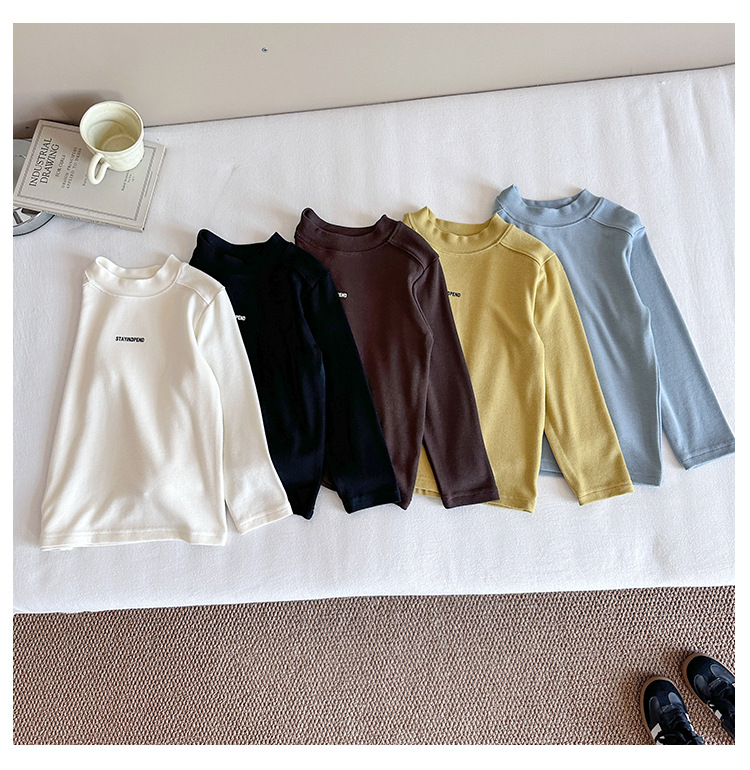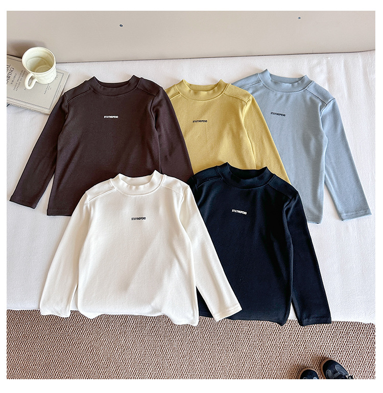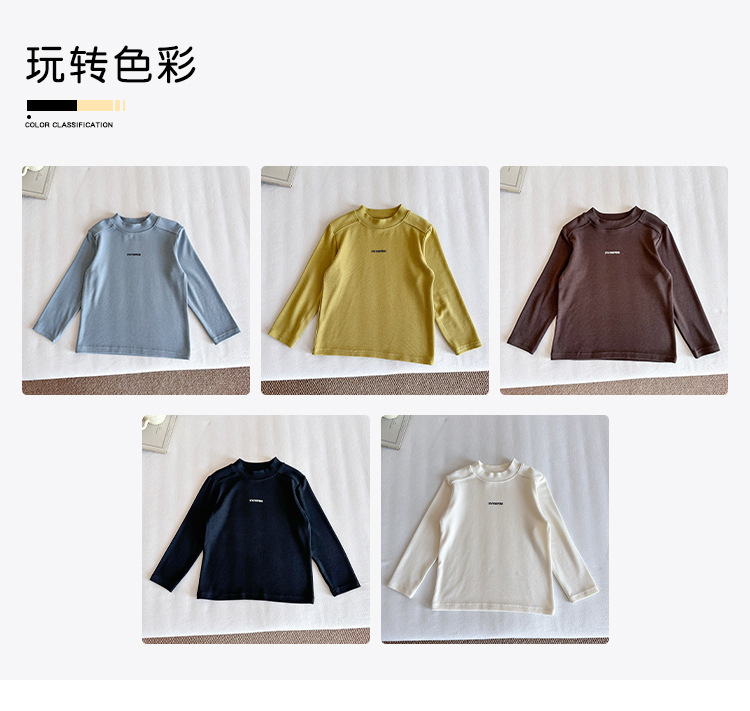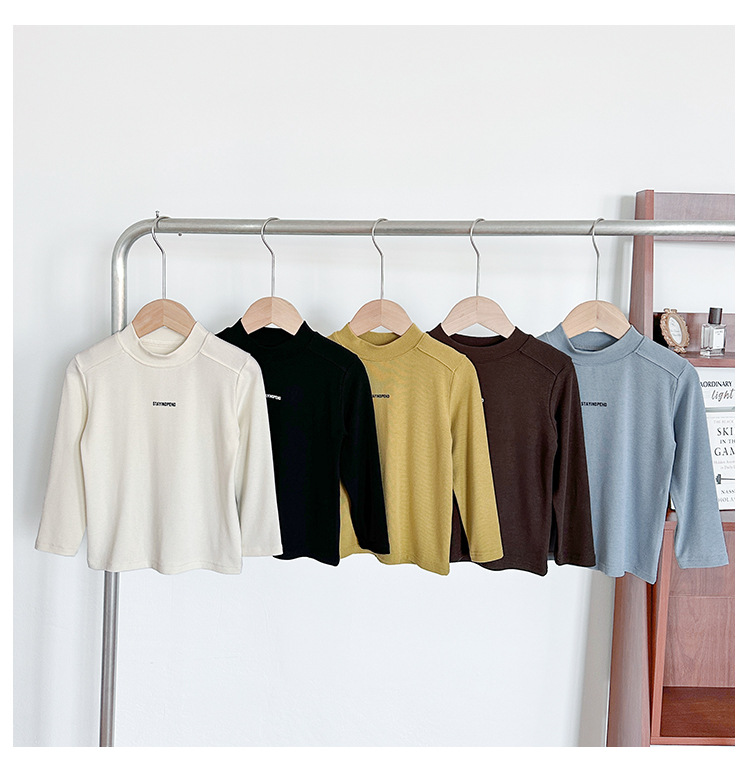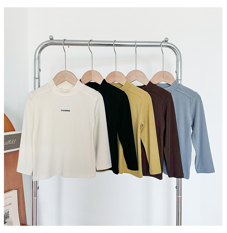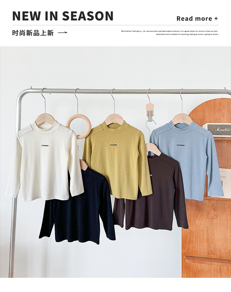 바람의 계곡 2025 가을 신작 아동복 아동 한국어 버전 솔리드 컬러 레터 바닥 셔츠 트렌디한 소년 소녀 다용도 티셔츠스토어 가기