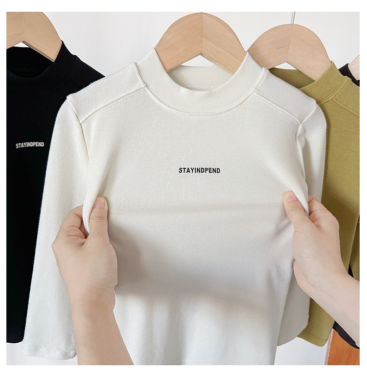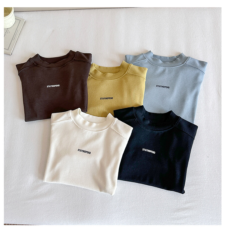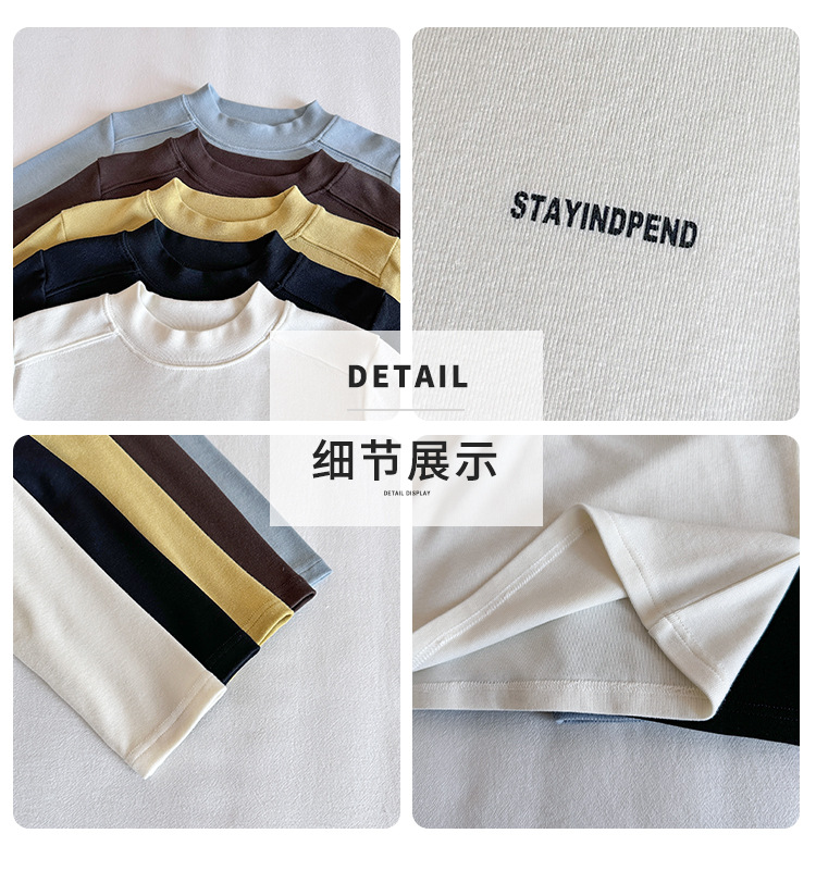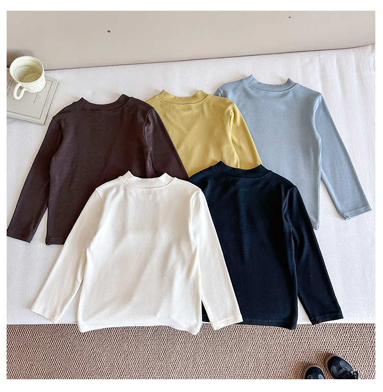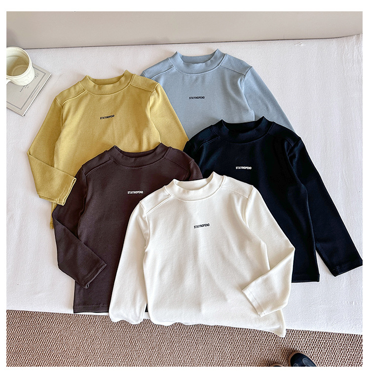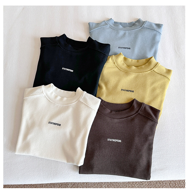 바람의 계곡 2025 가을 신작 아동복 아동 한국어 버전 솔리드 컬러 레터 바닥 셔츠 트렌디한 소년 소녀 다용도 티셔츠스토어 가기
