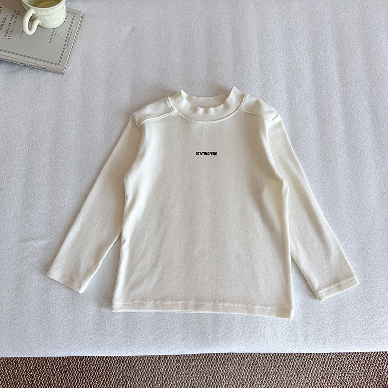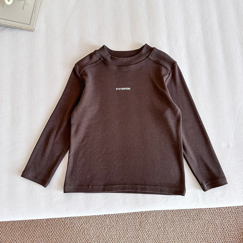 바람의 계곡 2025 가을 신작 아동복 아동 한국어 버전 솔리드 컬러 레터 바닥 셔츠 트렌디한 소년 소녀 다용도 티셔츠