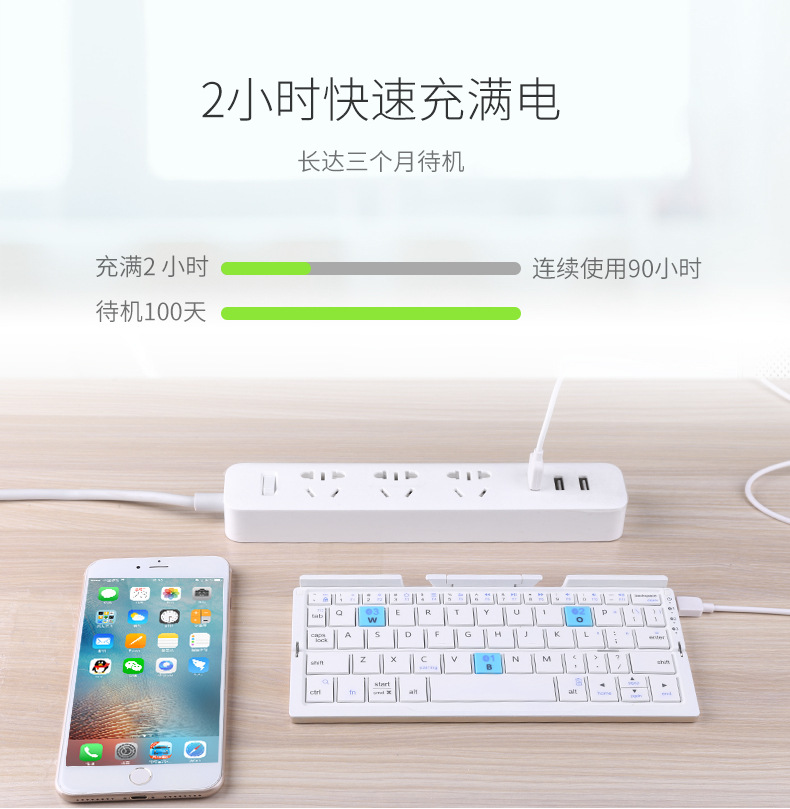 BOW Hangshi HB199 비즈니스 질감 접이식 소형 키보드 휴대 전화 컴퓨터 적응 충전식 사무실 소형 키보드