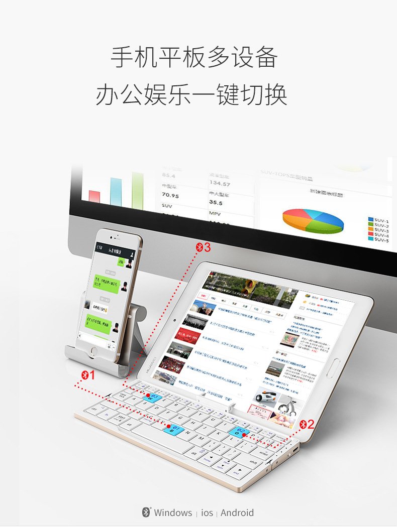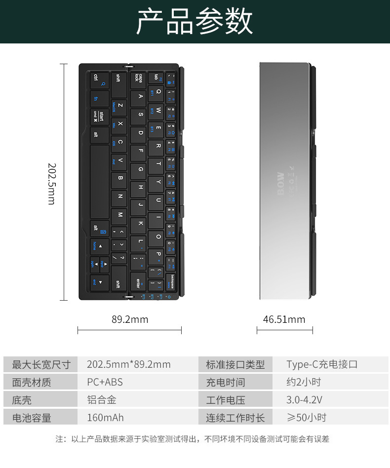 BOW Hangshi HB199 비즈니스 질감 접이식 소형 키보드 휴대 전화 컴퓨터 적응 충전식 사무실 소형 키보드스토어 가기