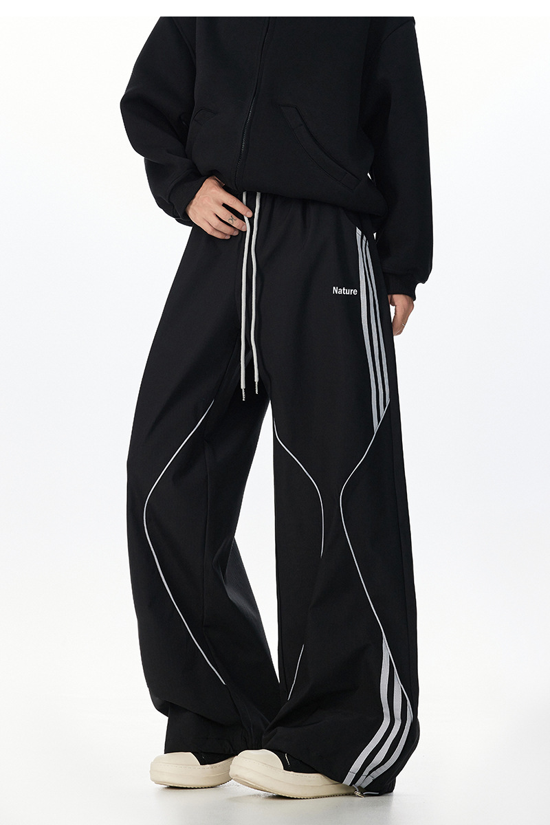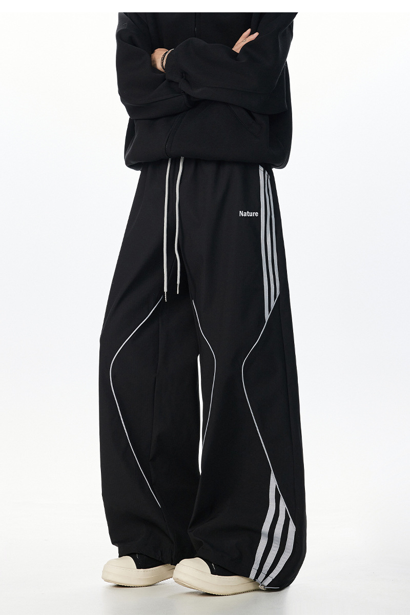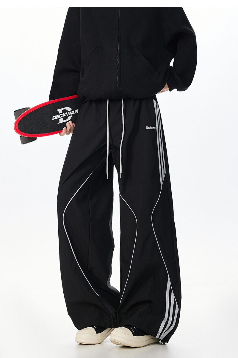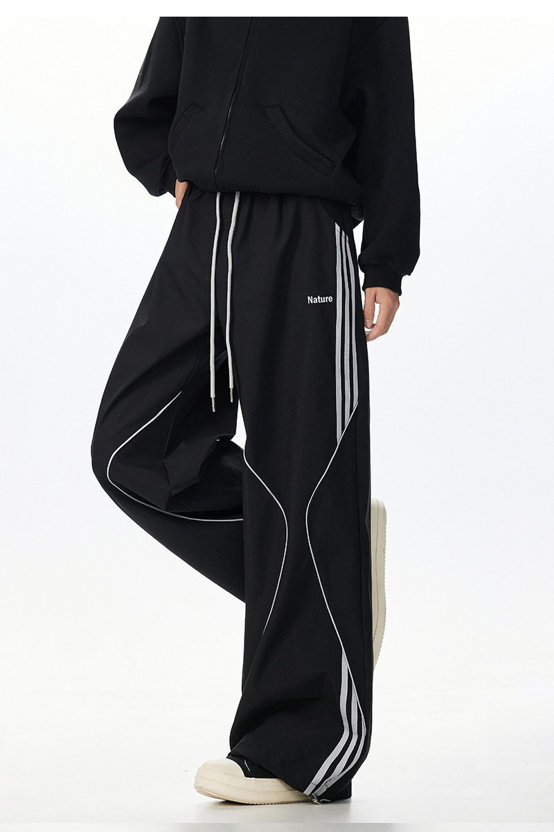 아메리칸 레트로 스트라이프 스웨트팬츠 남성 트렌디 하이 스트리트 커플 스타일 재즈 댄스 힙합 스트레이트 캐주얼 롱 팬츠