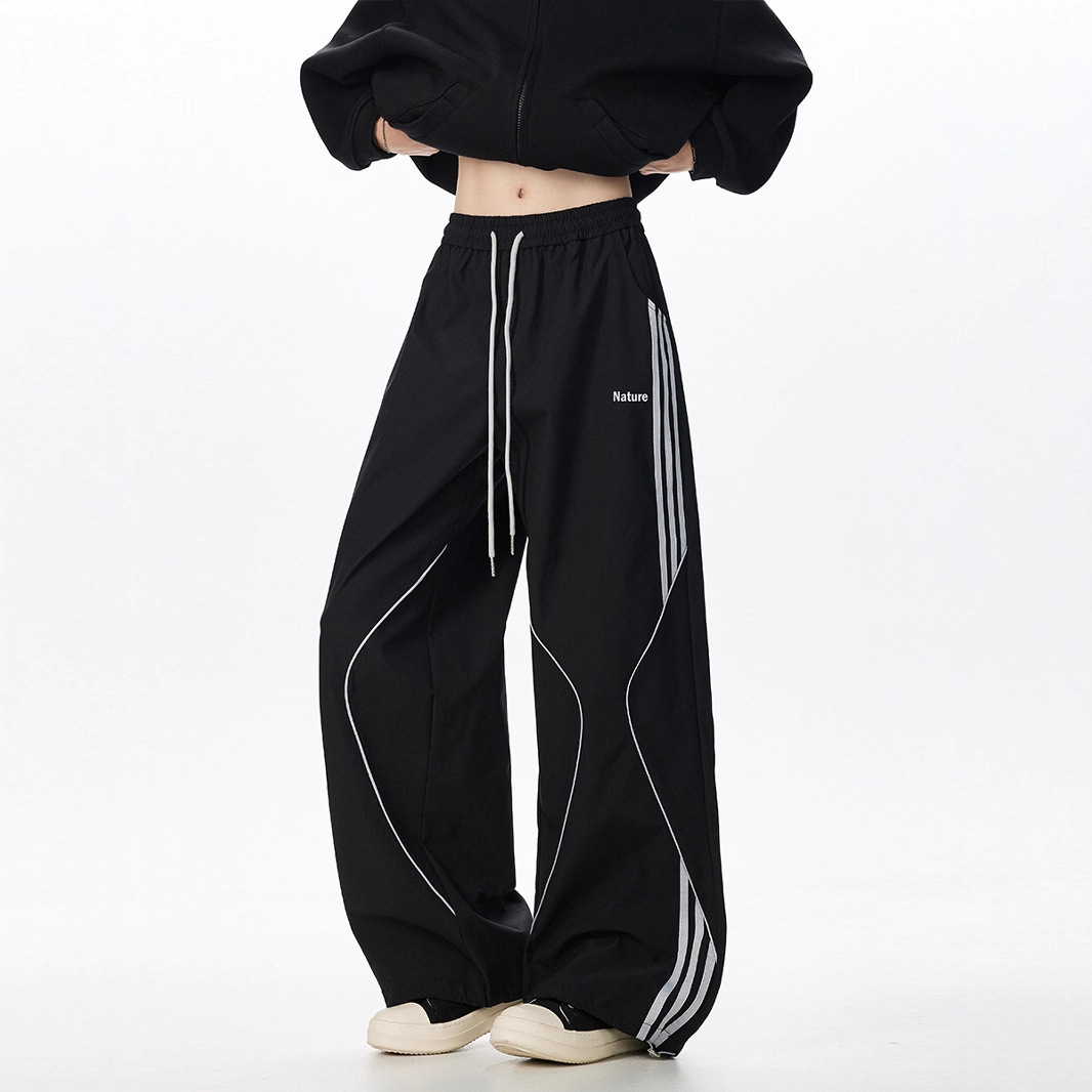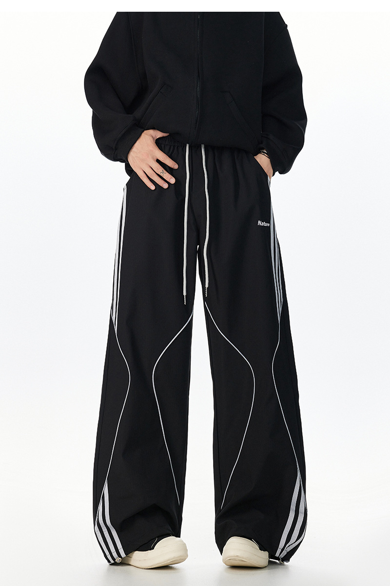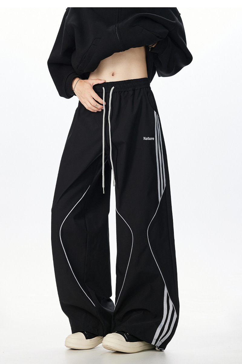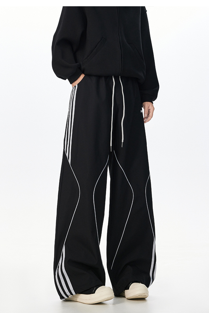 아메리칸 레트로 스트라이프 스웨트팬츠 남성 트렌디 하이 스트리트 커플 스타일 재즈 댄스 힙합 스트레이트 캐주얼 롱 팬츠