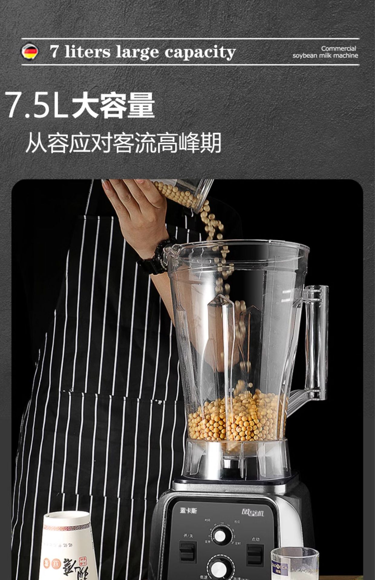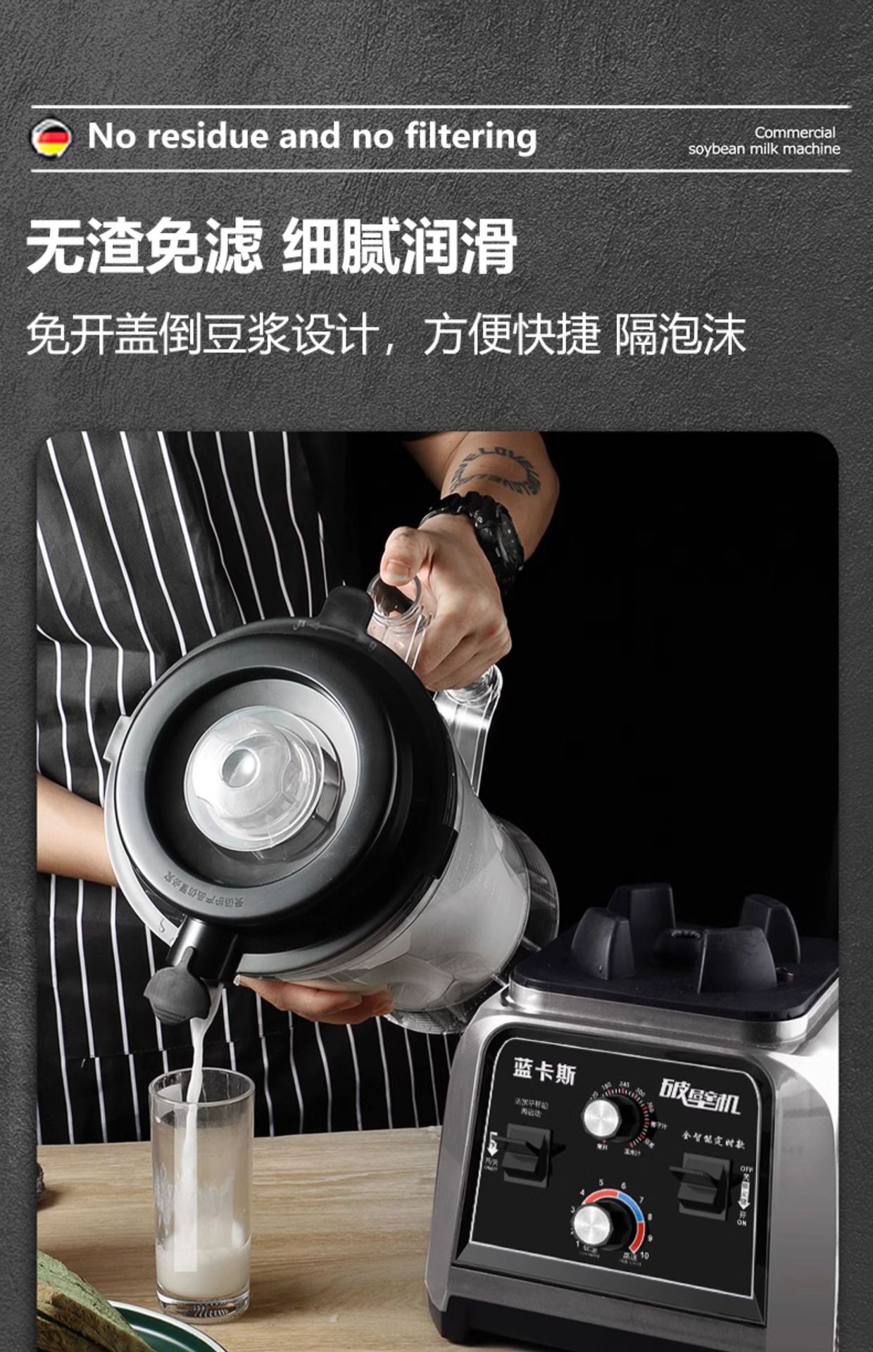 무료 배송 블루 카스 두유 기계 상업용 아침 식사 가게 슬러지 프리 필터링 대용량 그라인더 타이머 고출력 파괴 기능 포함스토어 가기