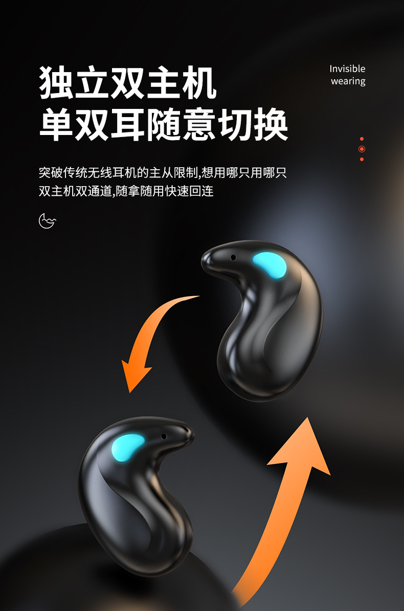 크로스보더 TK 신제품 X55 진정한 무선 수면용 투명 미니 소형 무선 블루투스 이어폰, 오래가는 배터리 수명, 소음 감소, 범용 기능스토어 가기