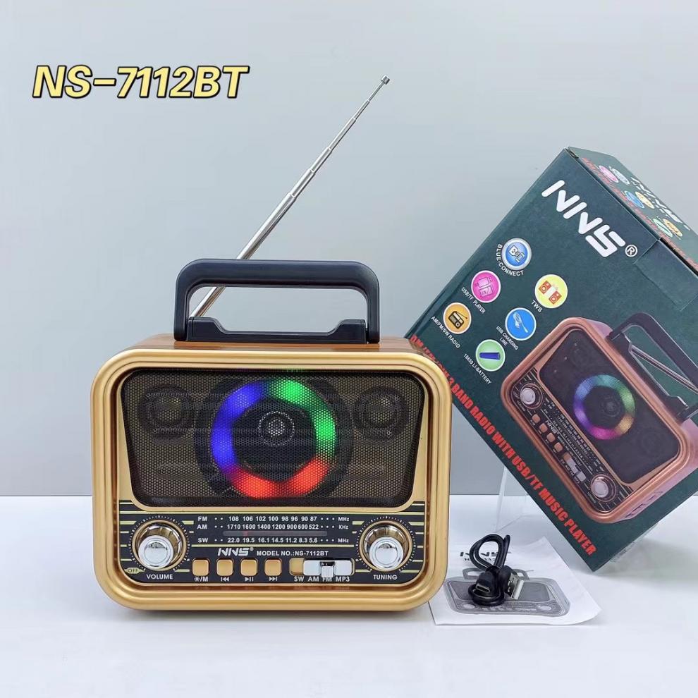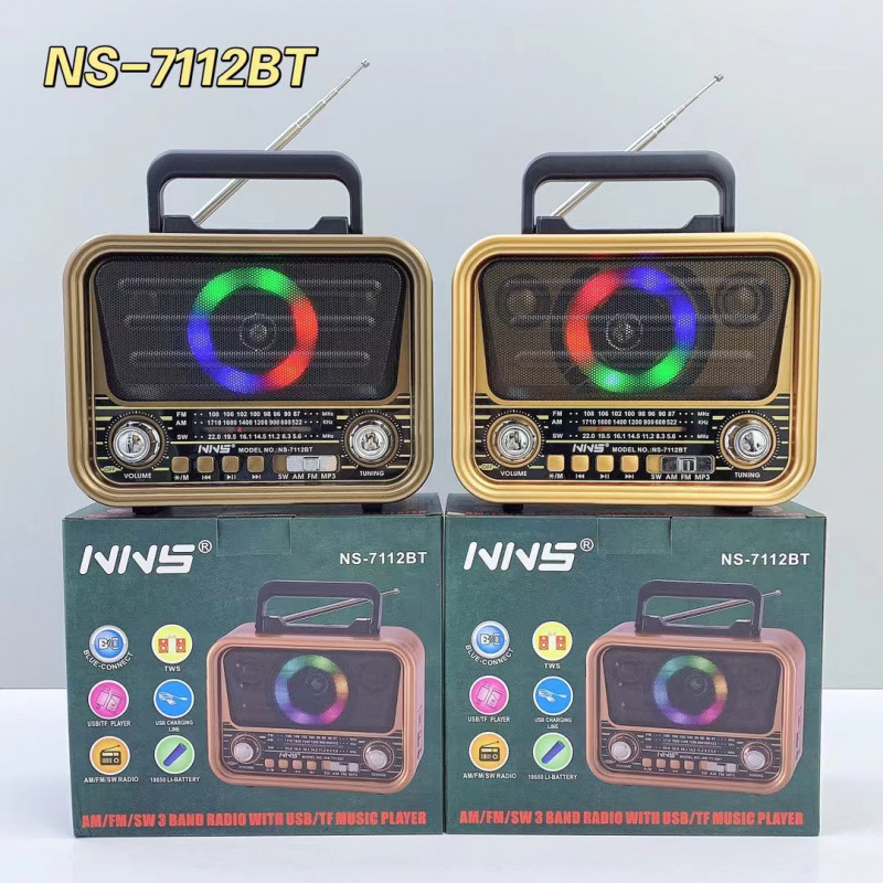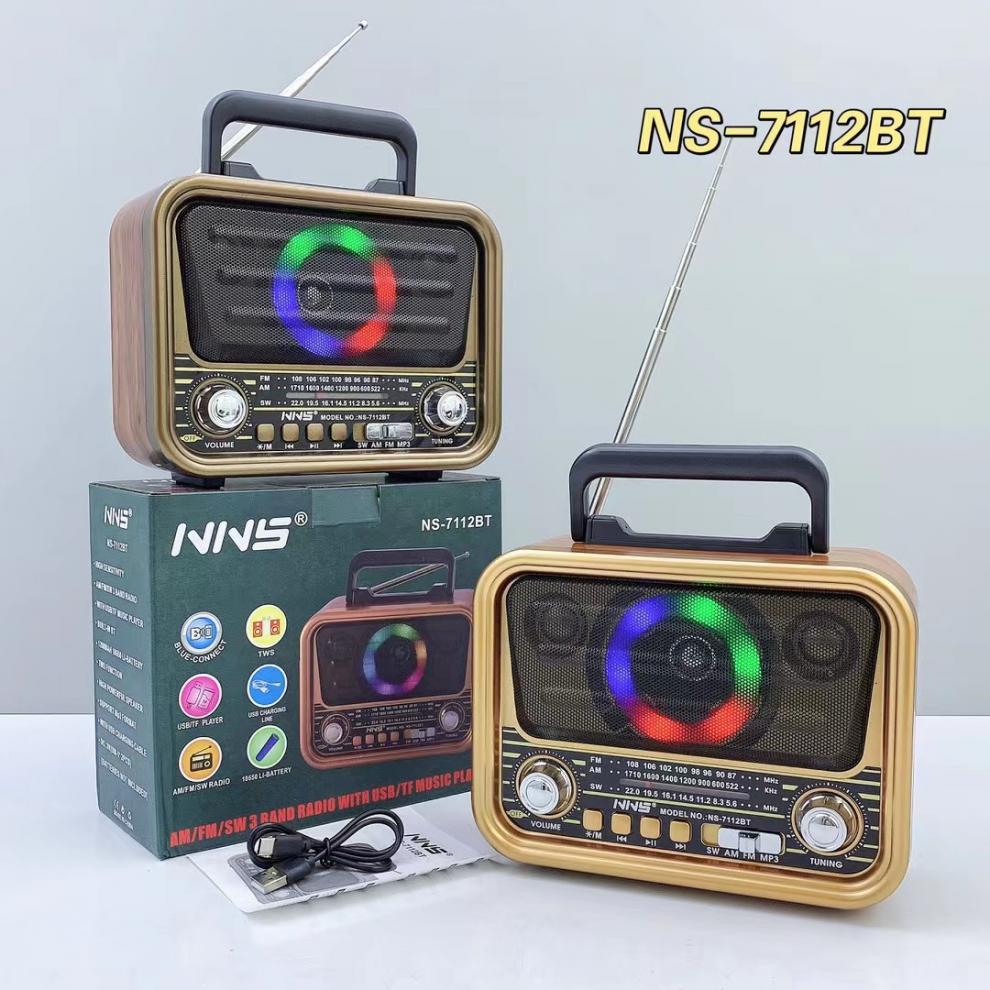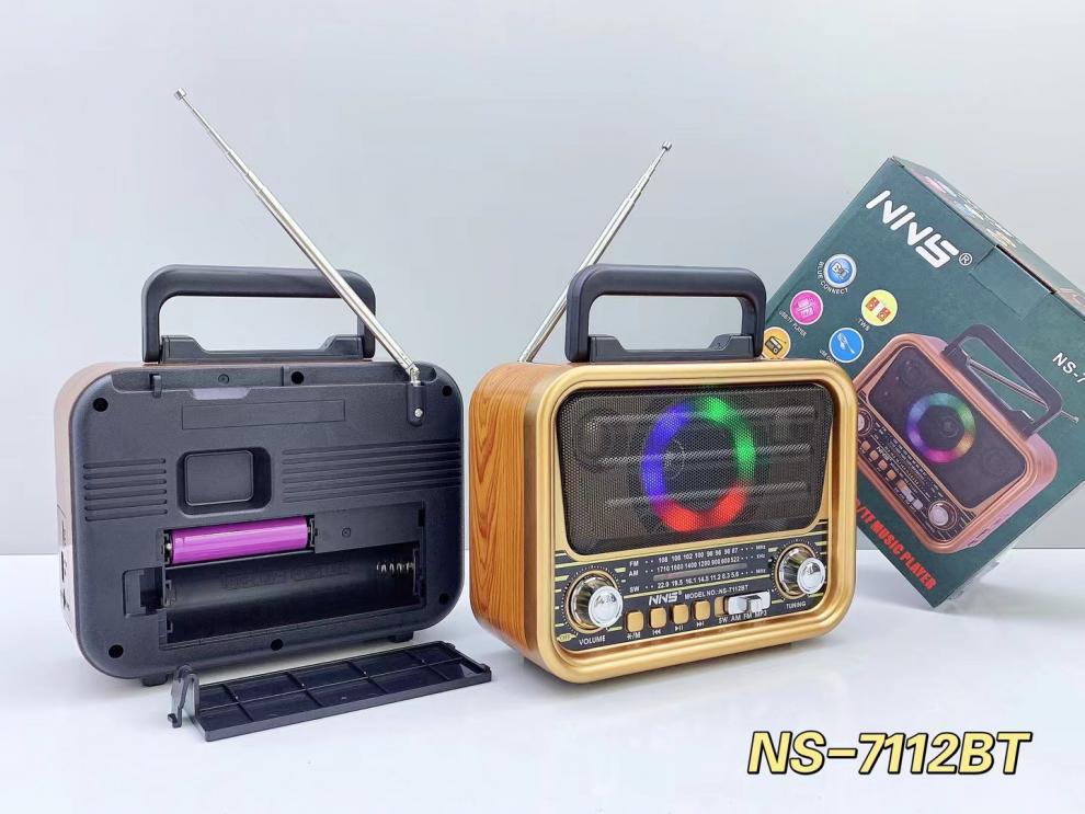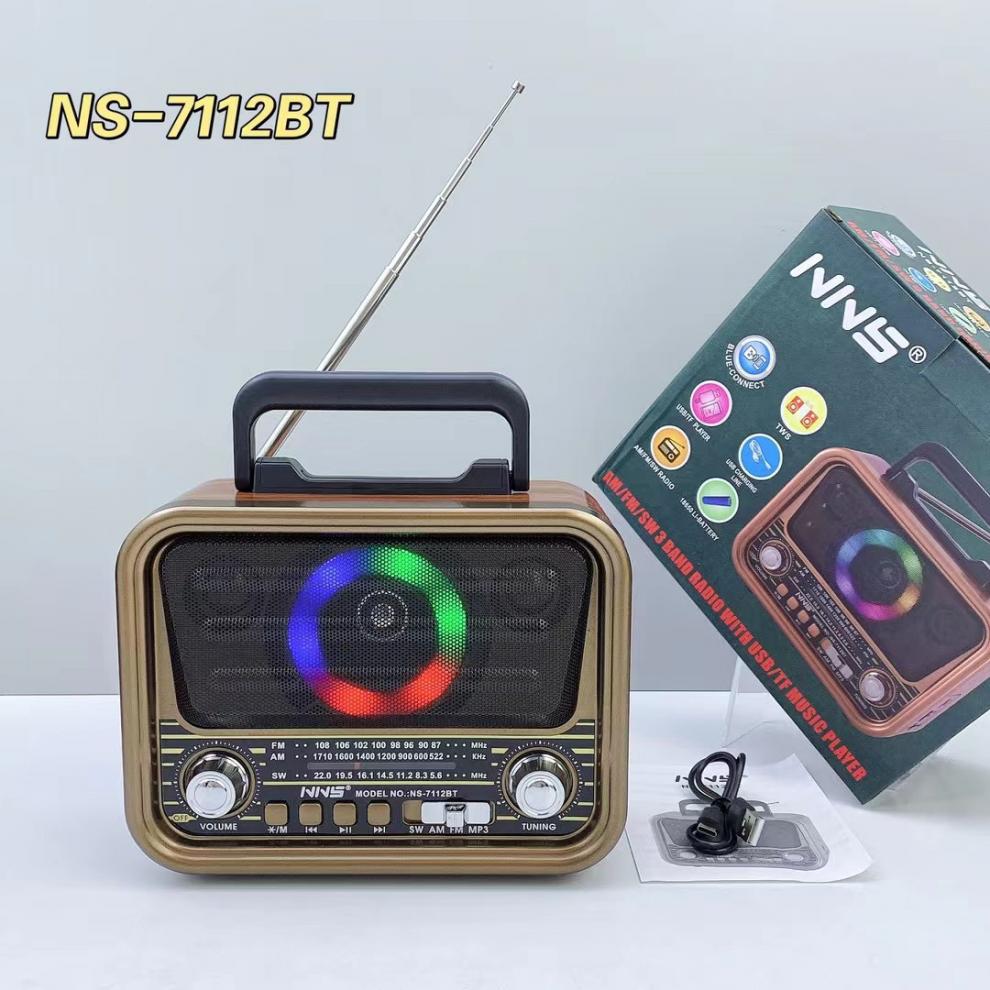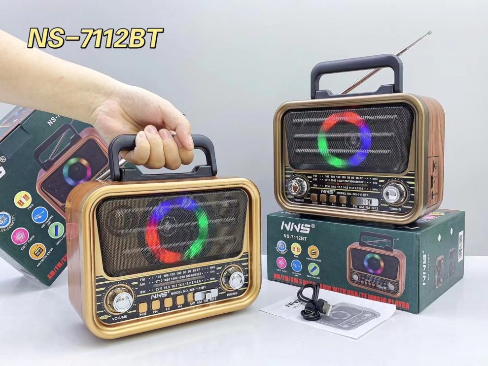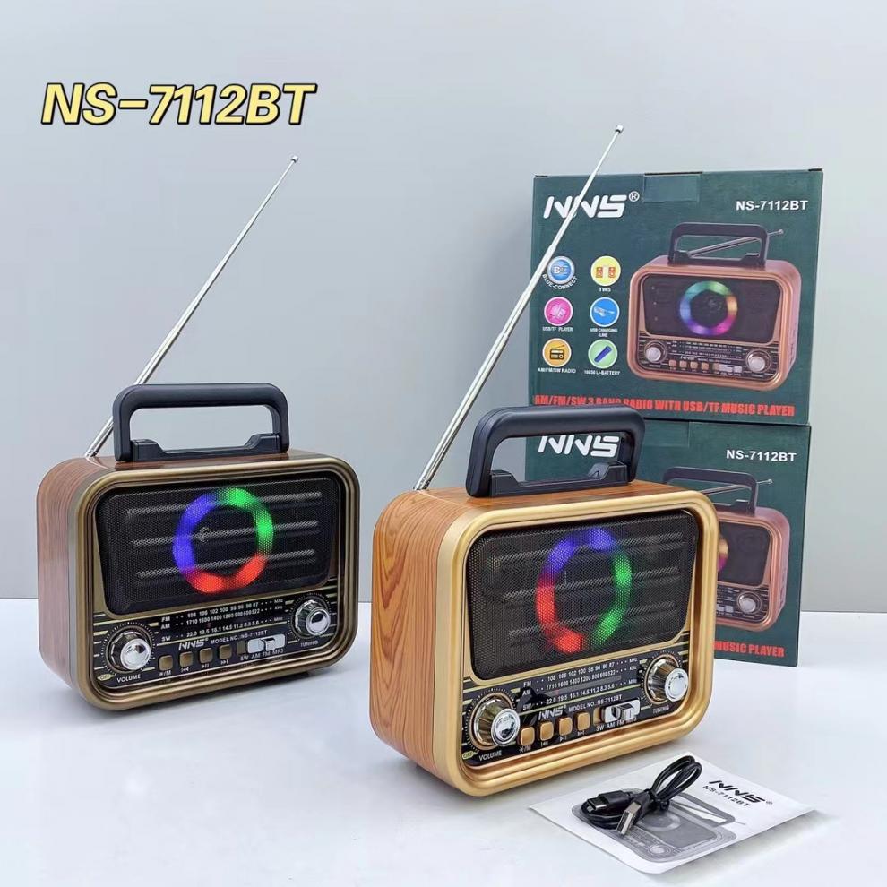 NS-7112BT 레트로 블루투스 스피커 목재 홈 서브우퍼 FM/AM/SW 3밴드 휴대용 라디오