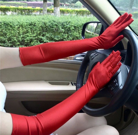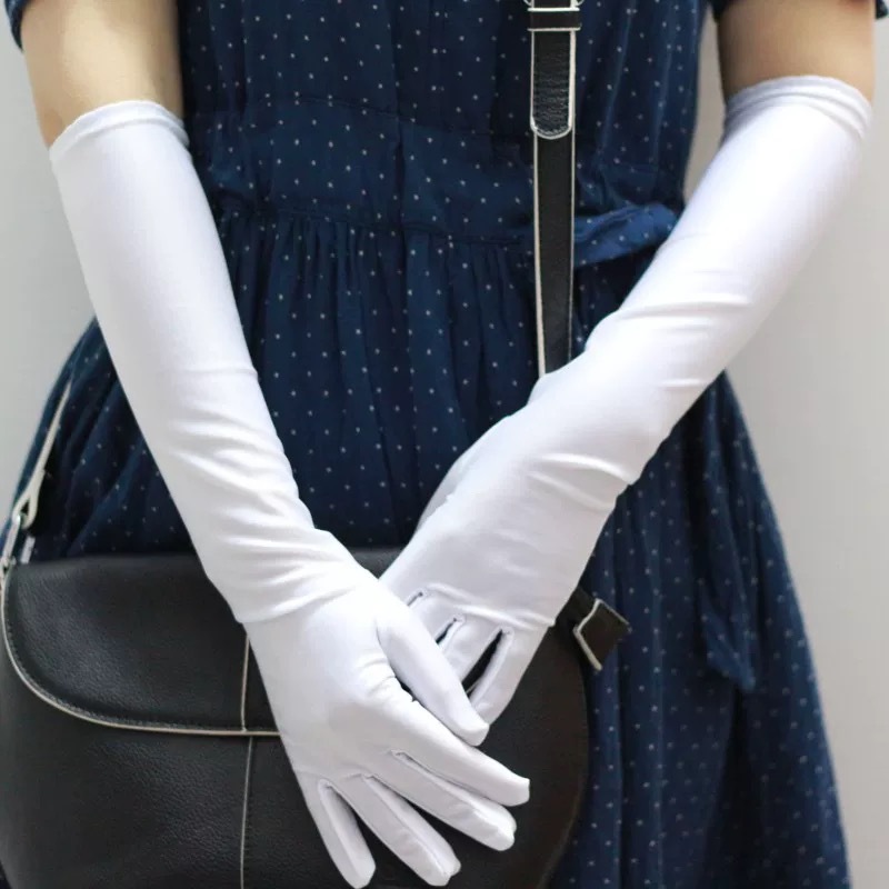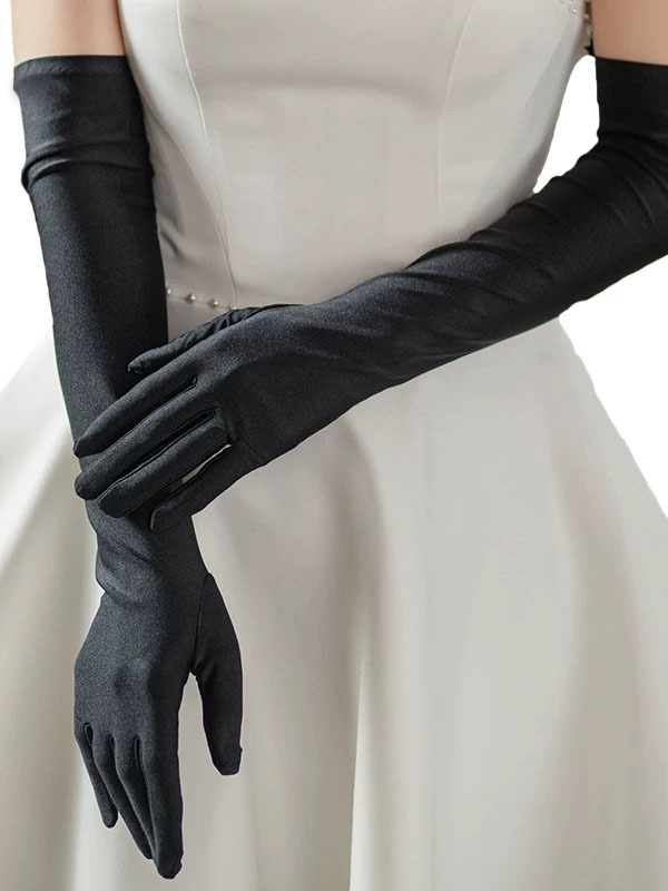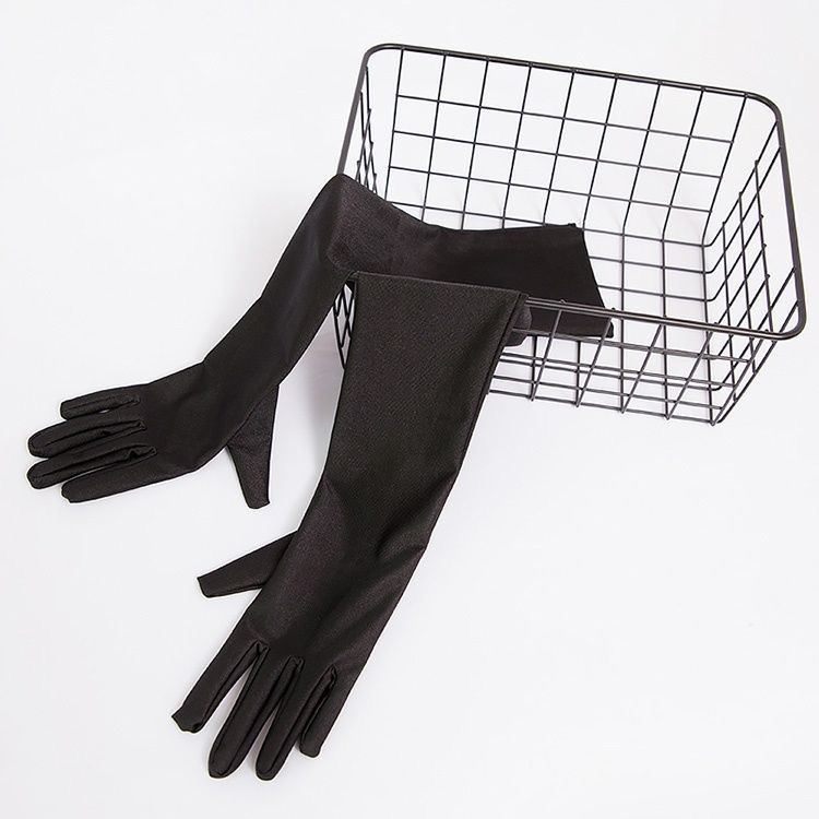 드레스 장갑 롱 레트로 블랙 헤본 스타일 폴리에스터 신축성 신부 웨딩드레스 새틴 이브닝 드레스 고급스러운 느낌스토어 가기